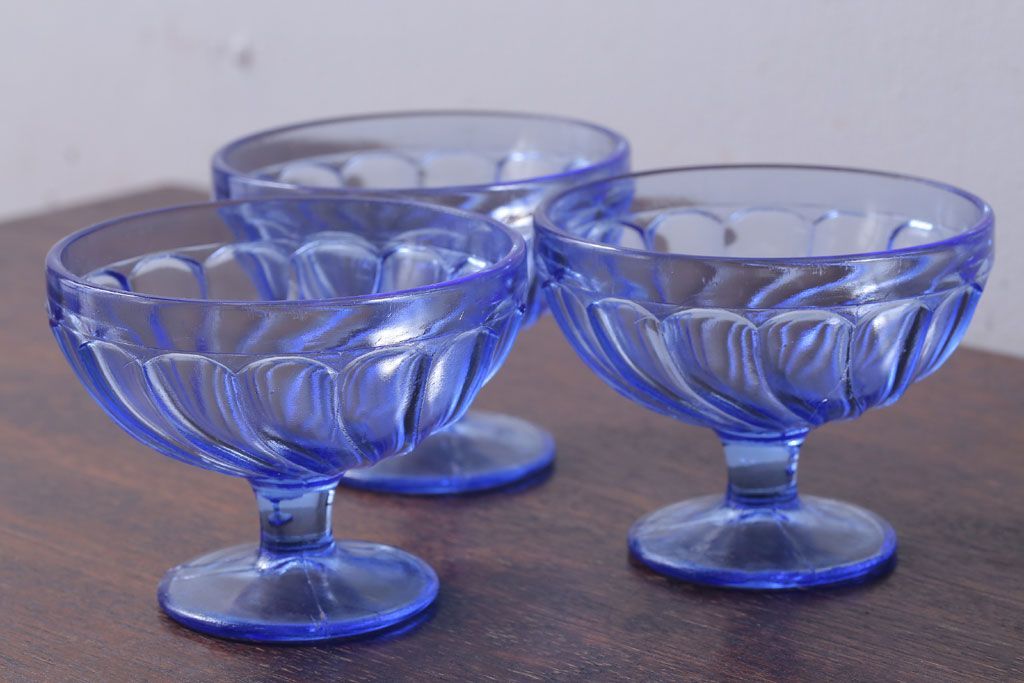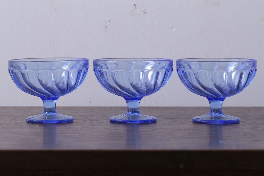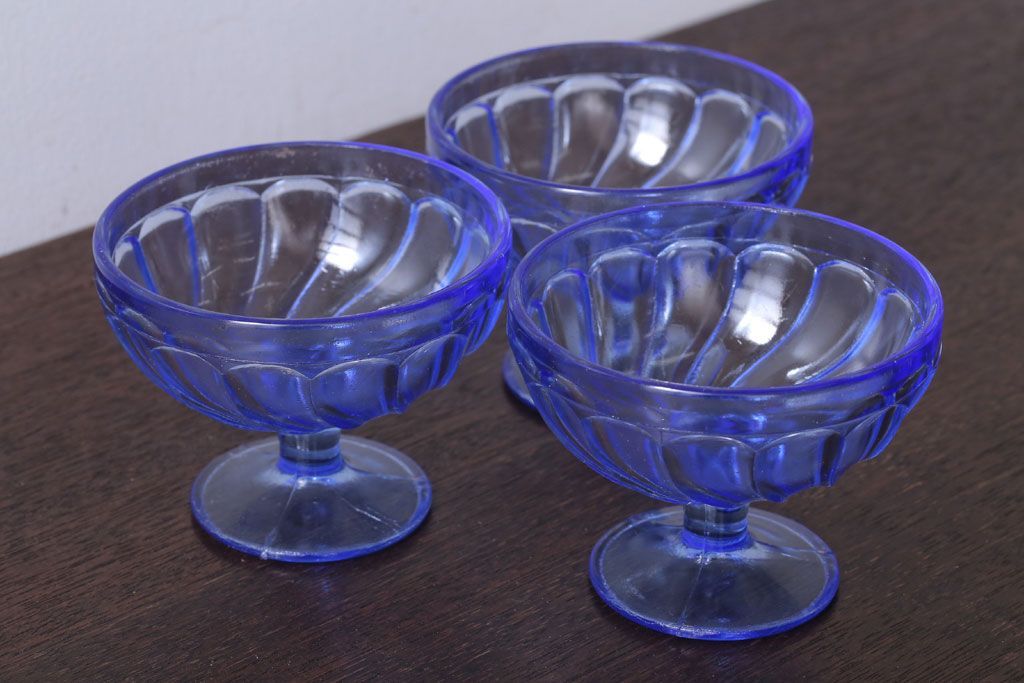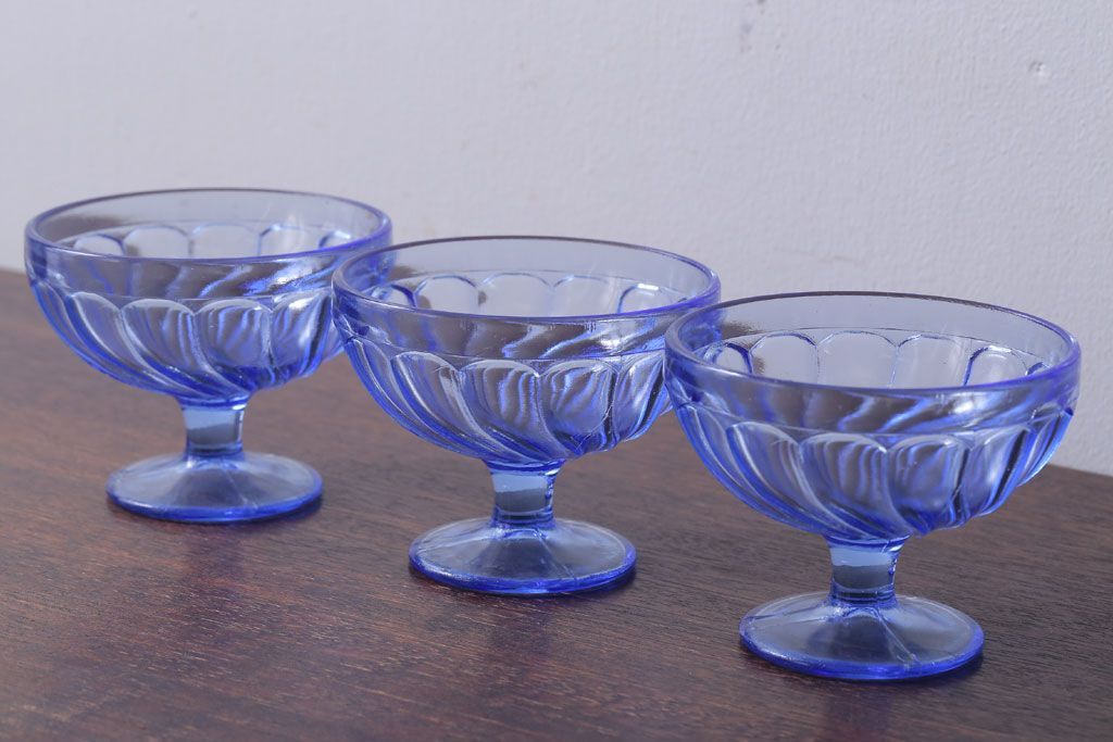アンティーク雑貨 和製アンティーク 昭和レトロな氷コップ3個セット(プレスガラス)(3)