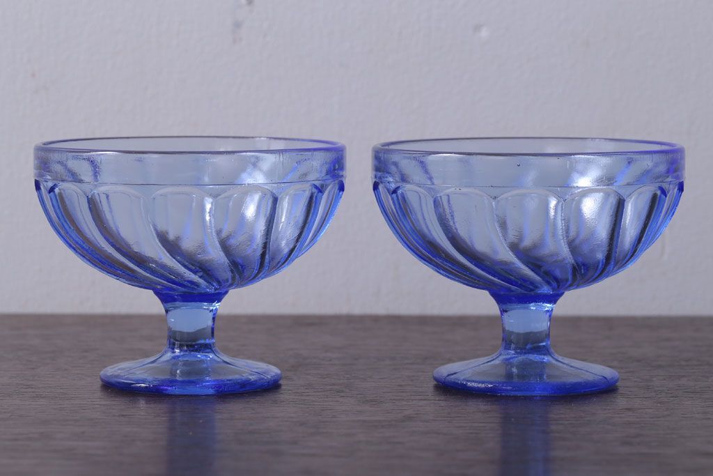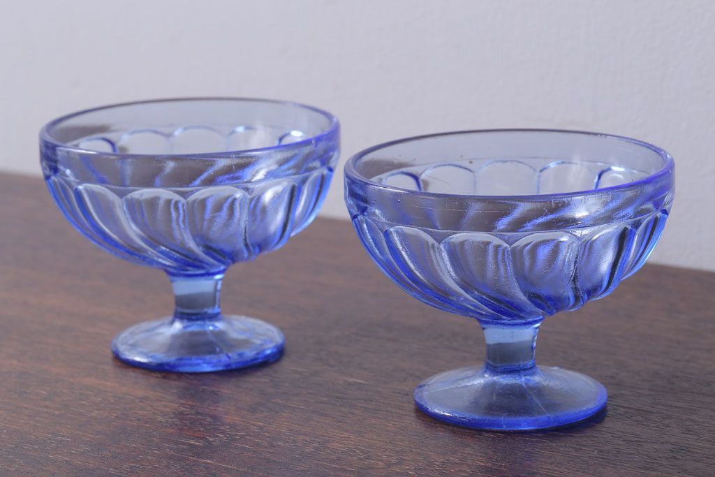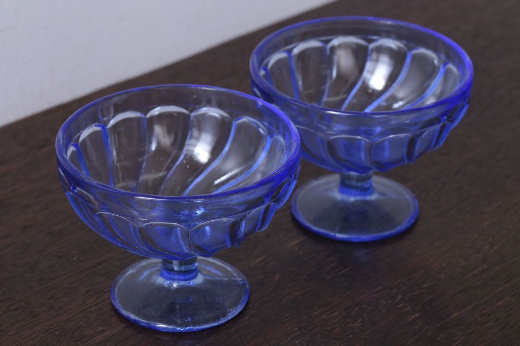 アンティーク雑貨 和製アンティーク 昭和レトロな氷コップ2個セット(プレスガラス)