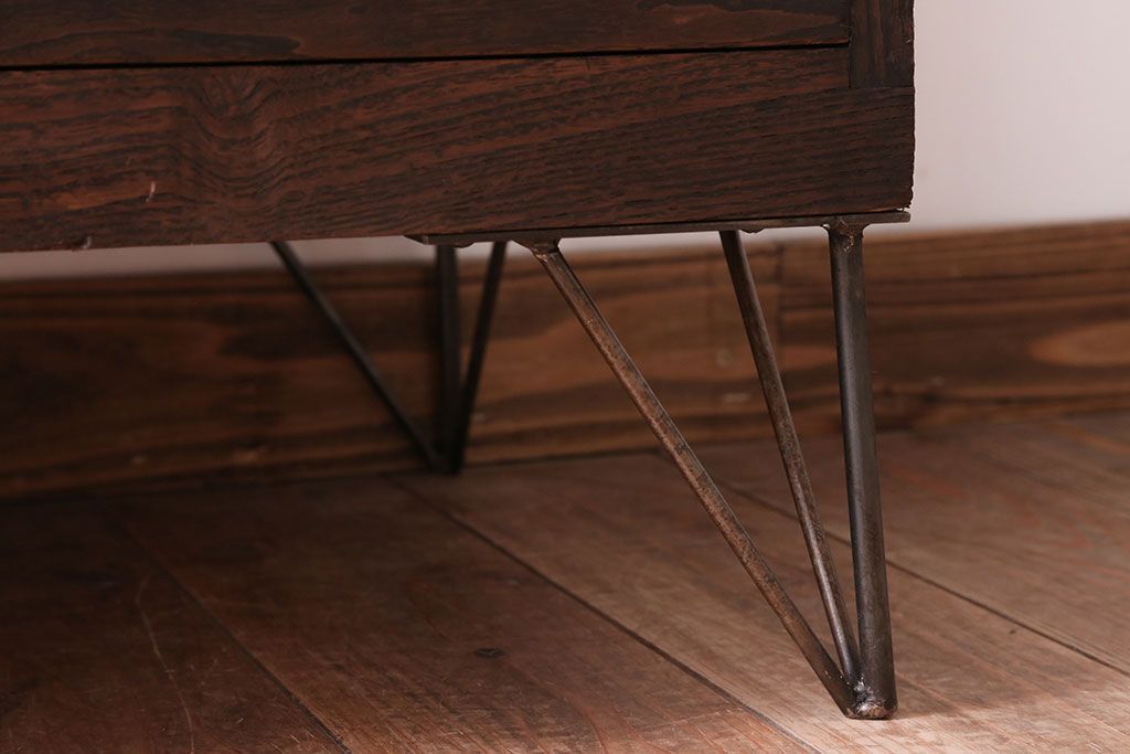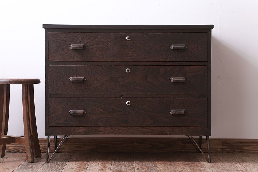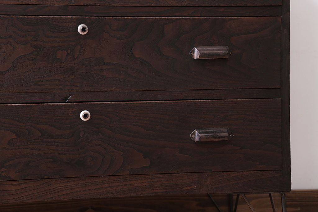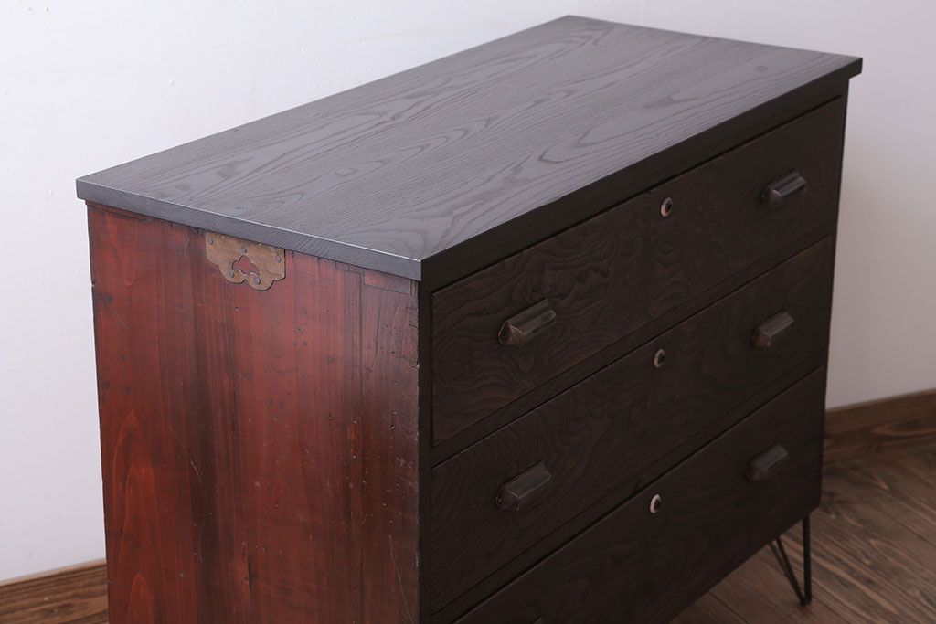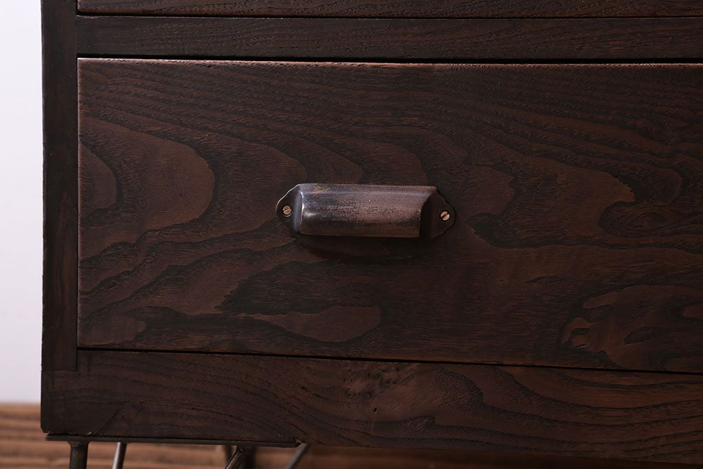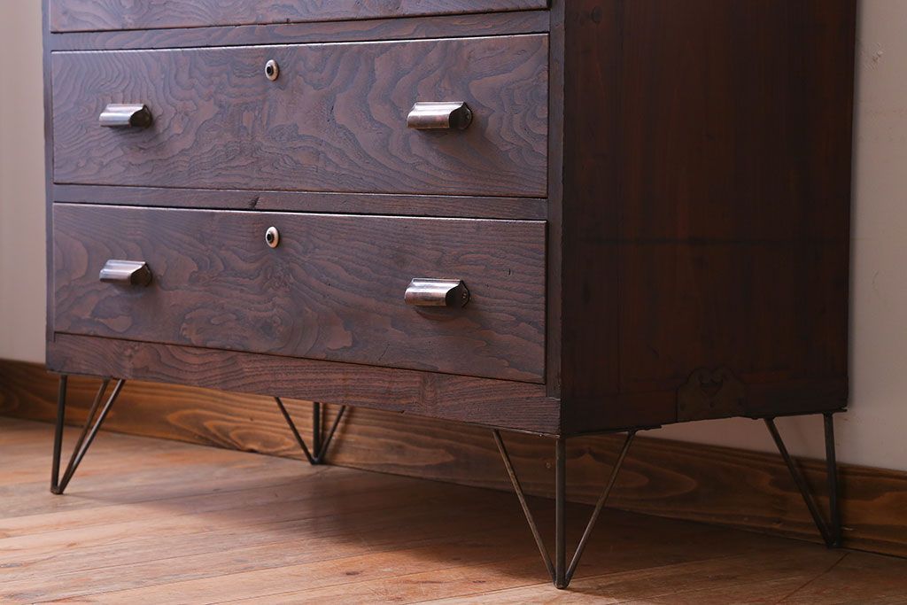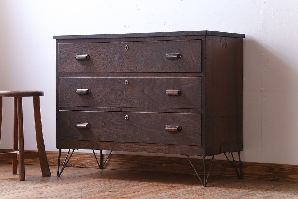 アンティーク家具 和製アンティーク 前面栗材!鉄脚付きローチェスト(1)