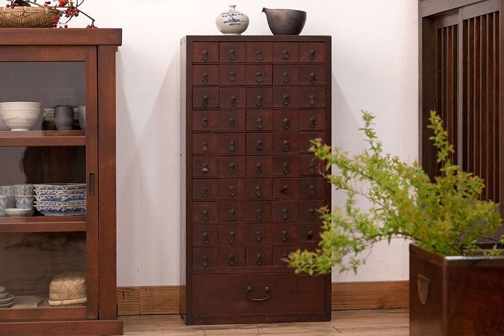 アンティーク家具 古民具・骨董 前面欅材!小ぶりなアンティーク薬箪笥