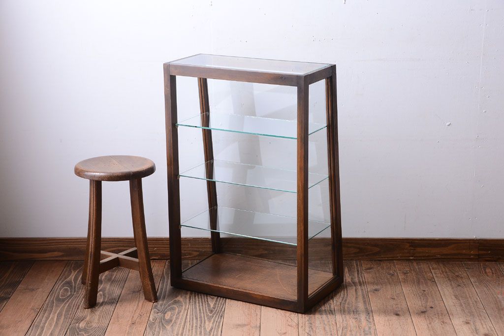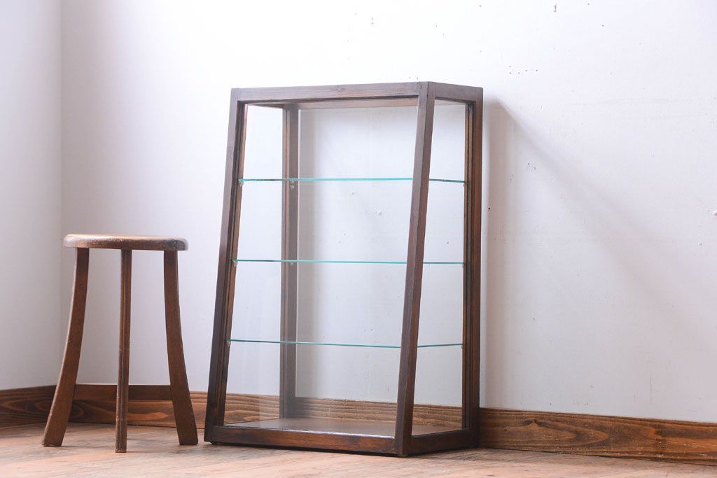 中古 木製の台形型ガラスケース(ショーケース)です。