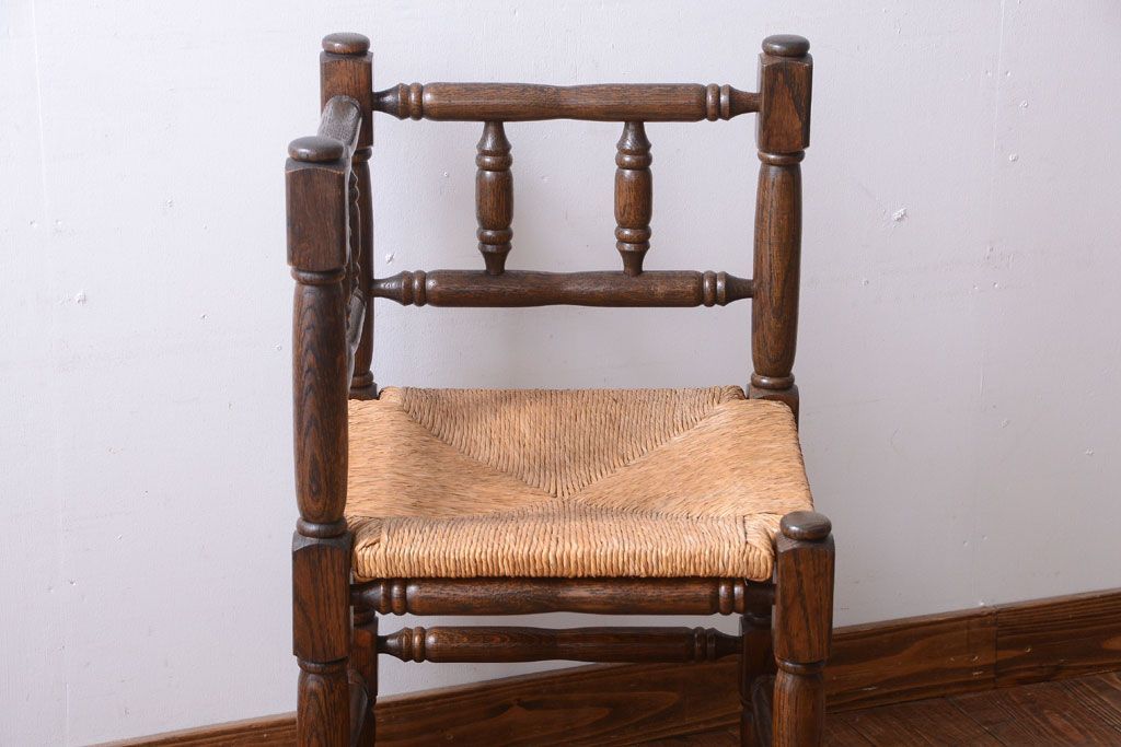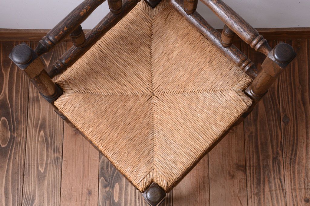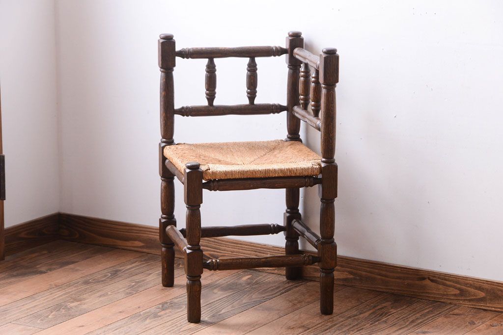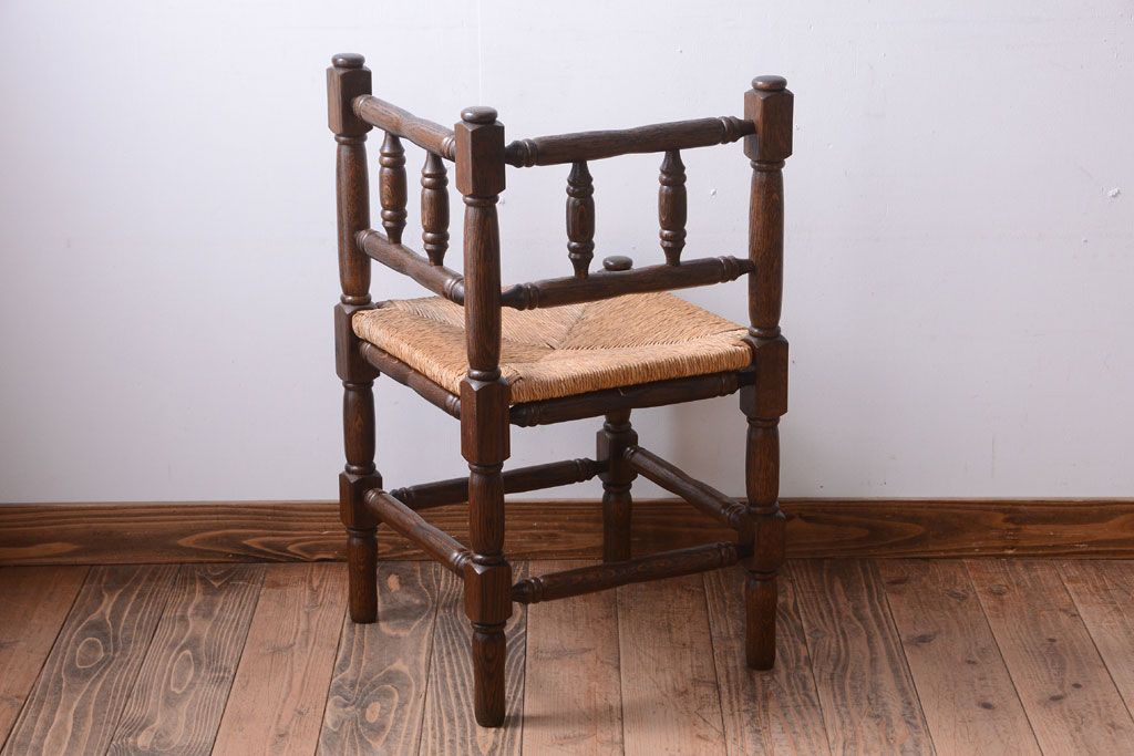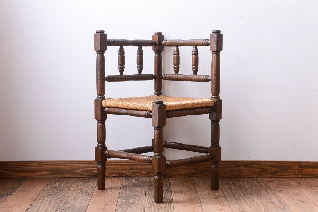 アンティーク家具 イギリスアンティーク オーク材!ラッシ座面のコーナーチェア(1)