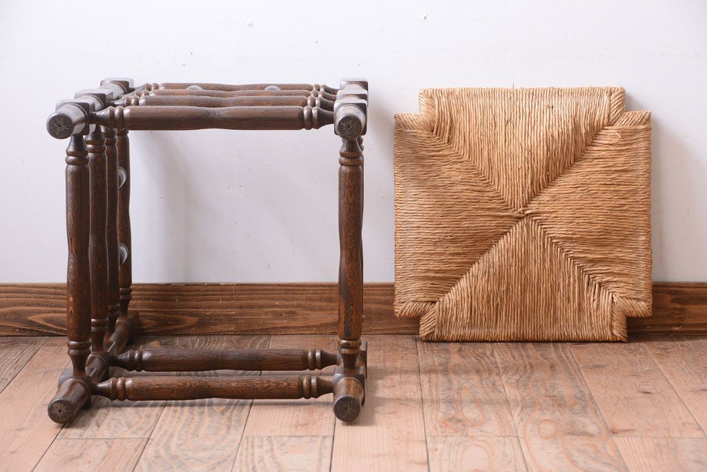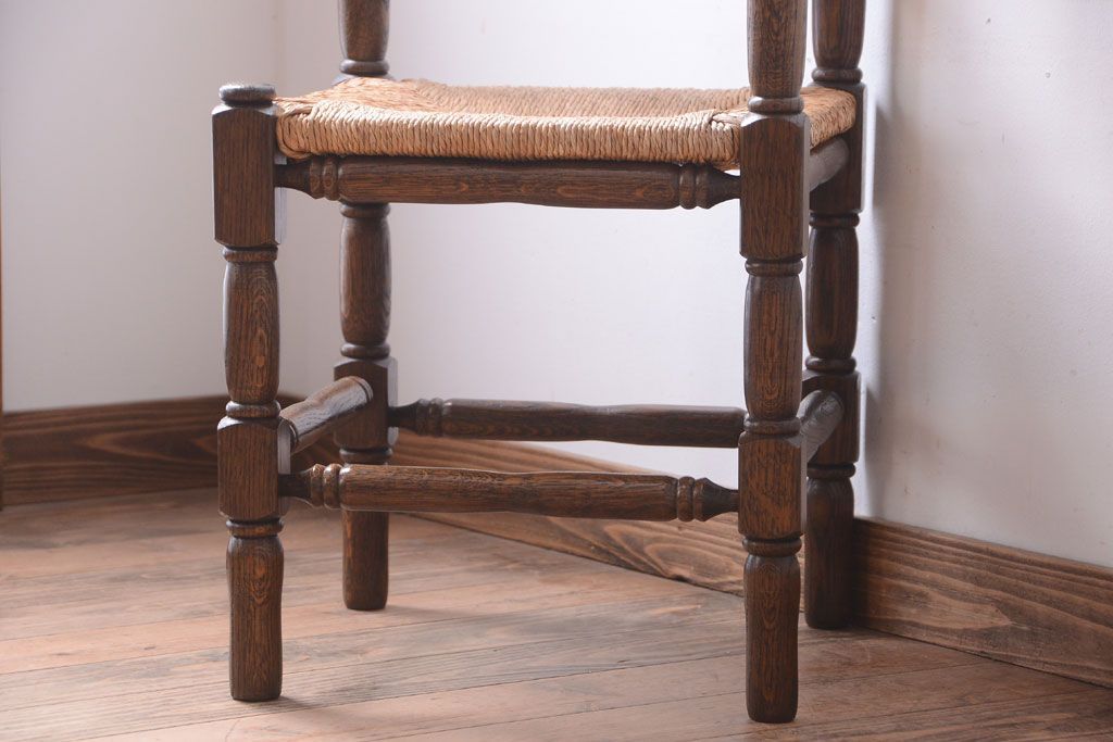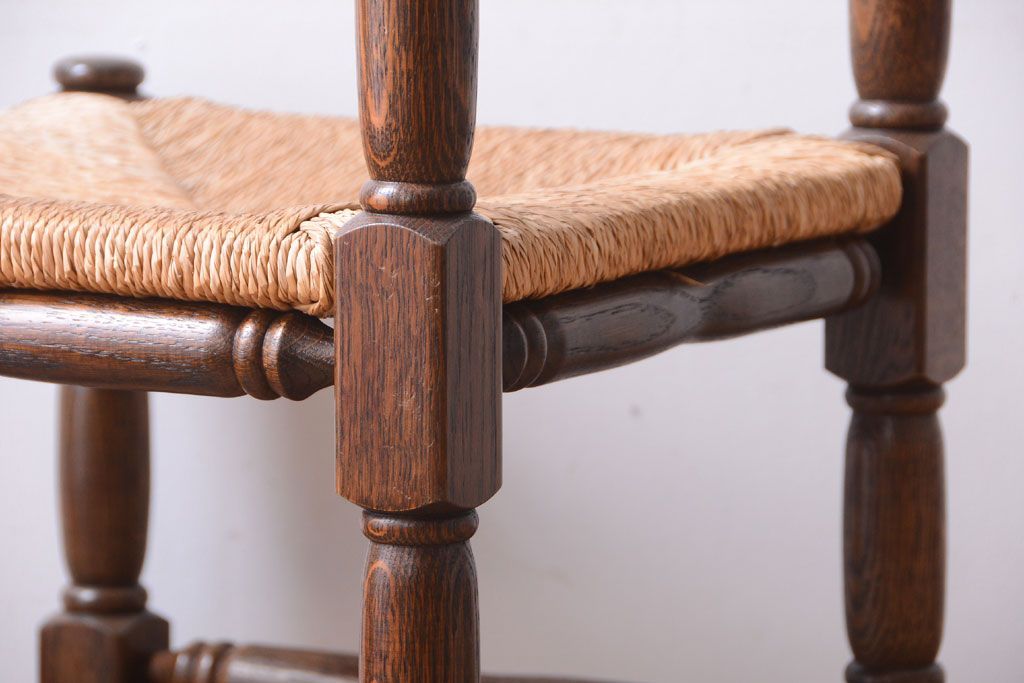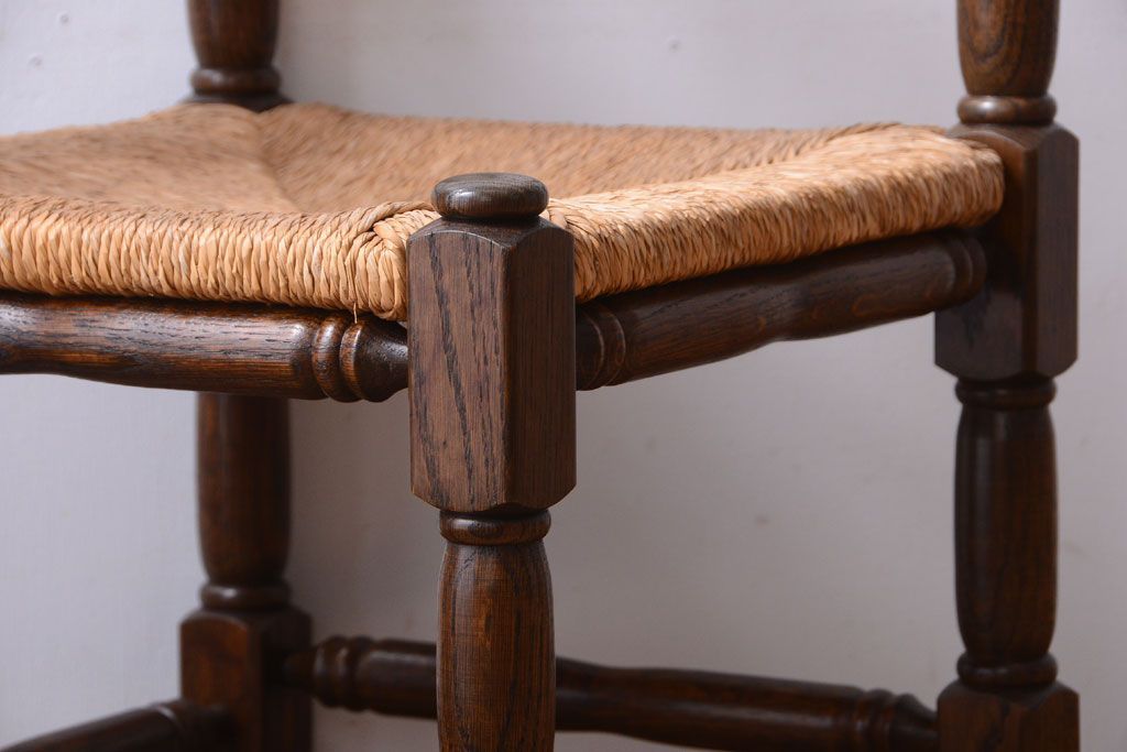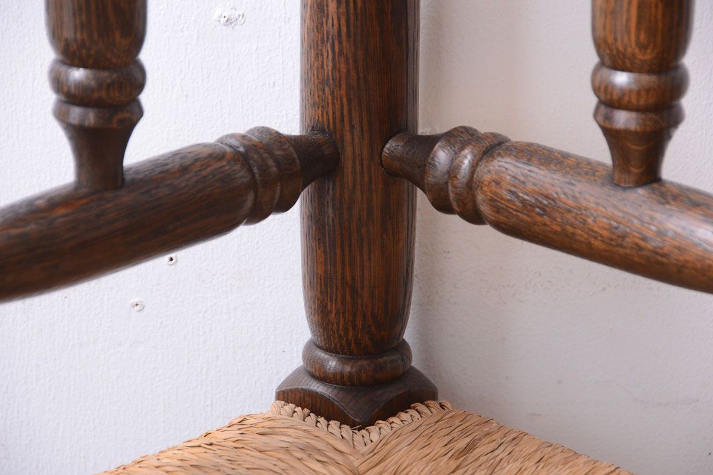 アンティーク家具 イギリスアンティーク オーク材!ラッシ座面のコーナーチェア(1)