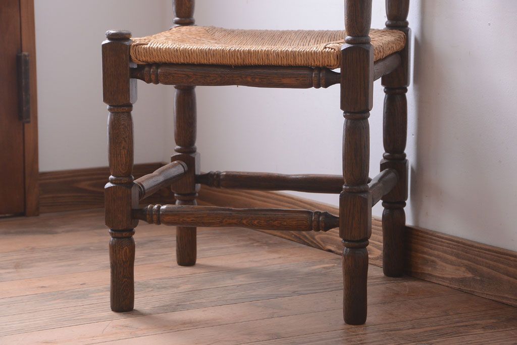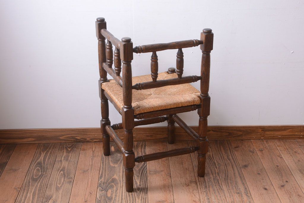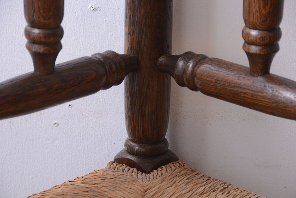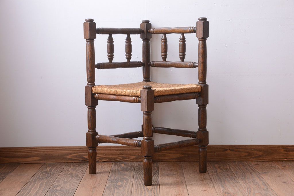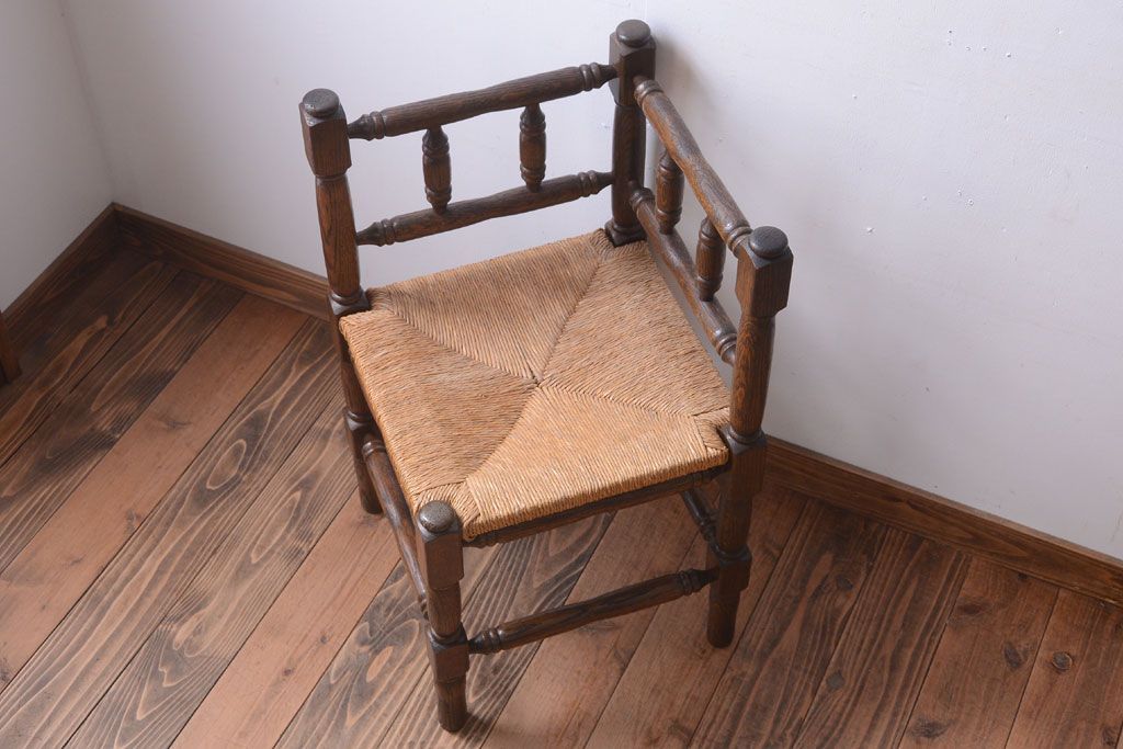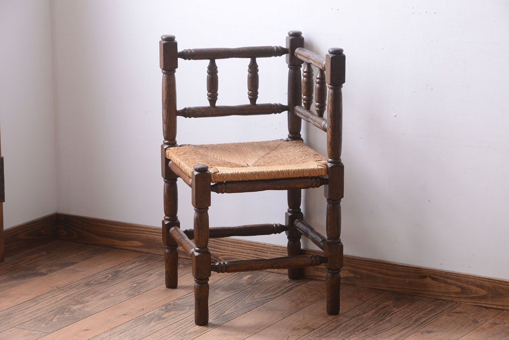 アンティーク家具 イギリスアンティーク オーク材!ラッシ座面のコーナーチェア(2)