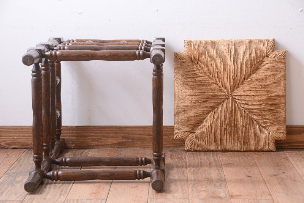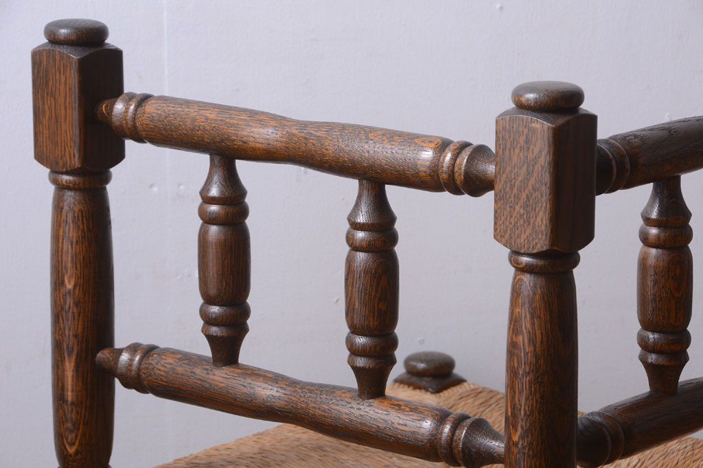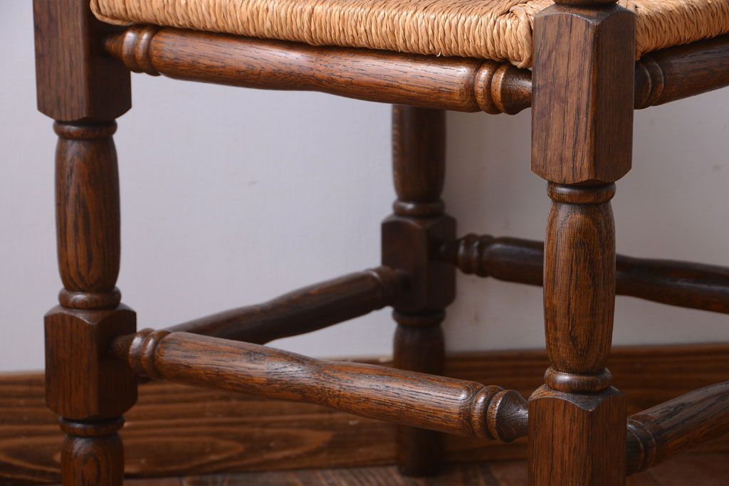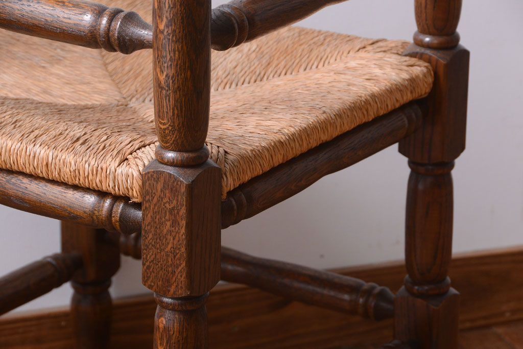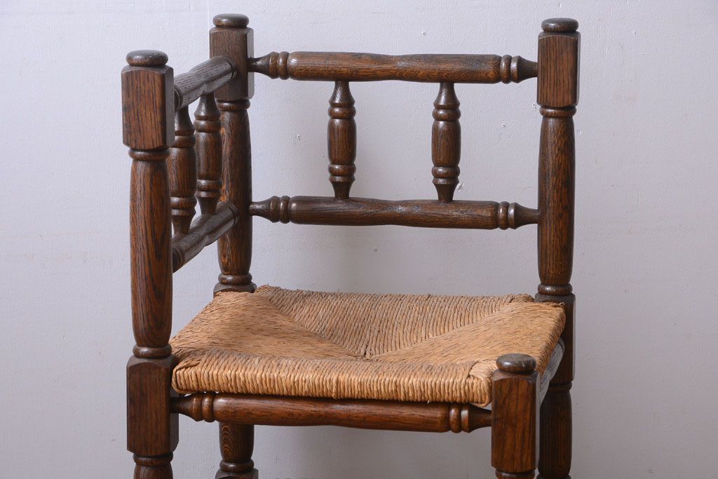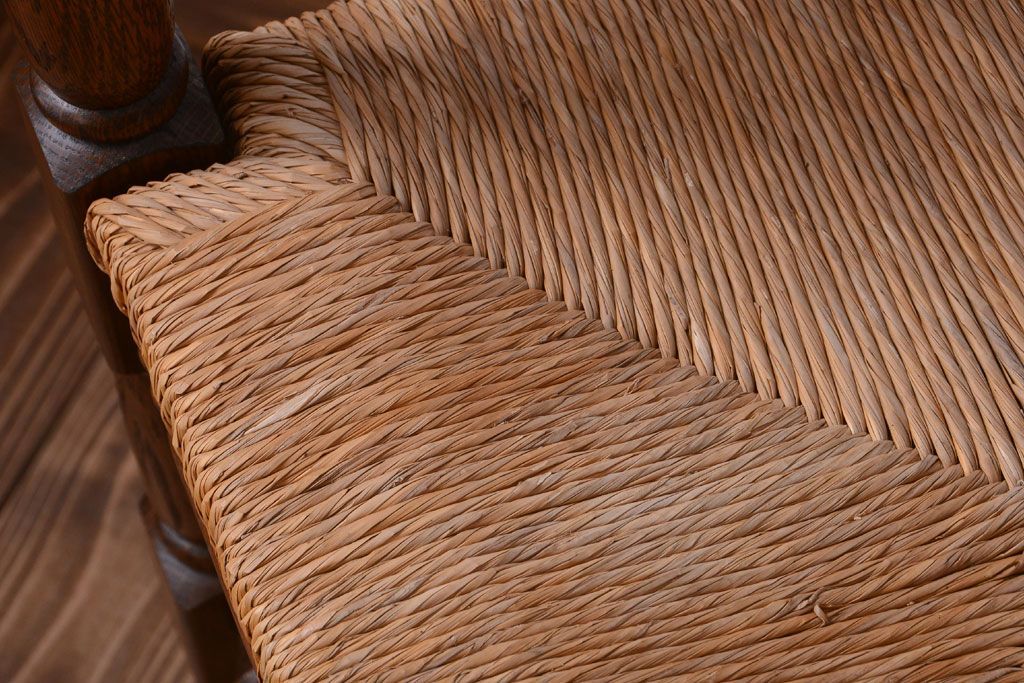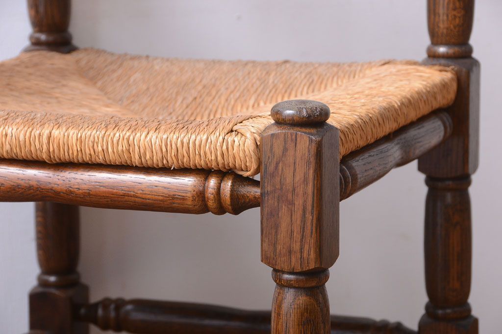 アンティーク家具 イギリスアンティーク オーク材!ラッシ座面のコーナーチェア(2)