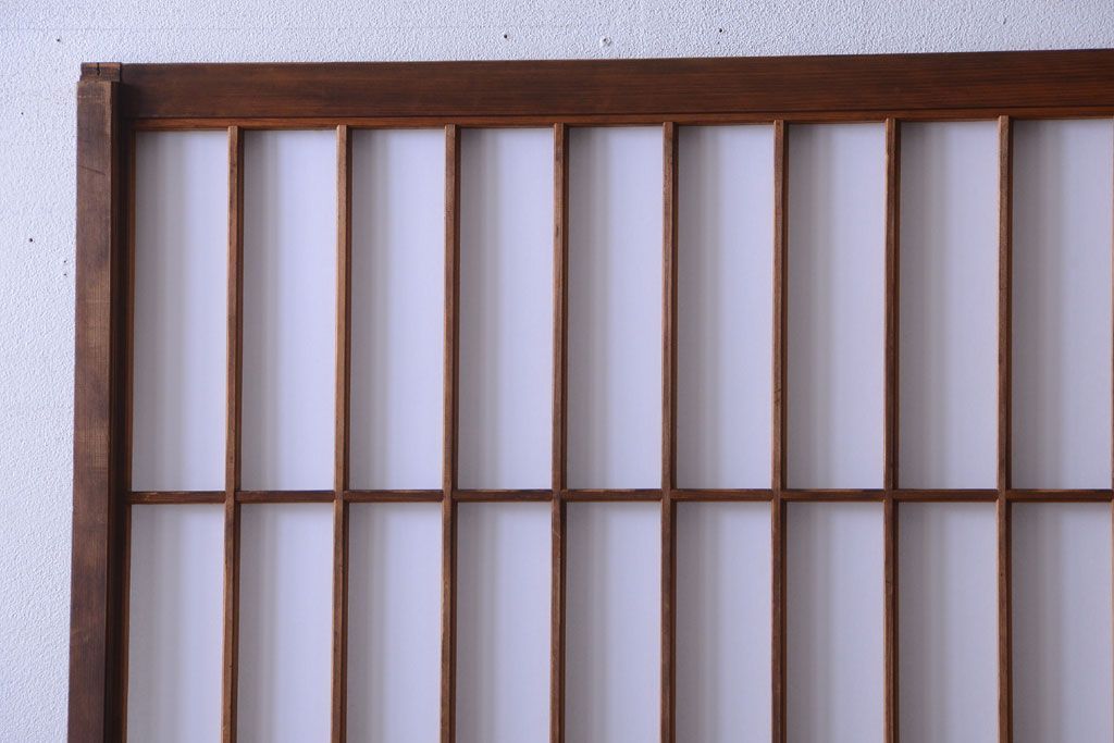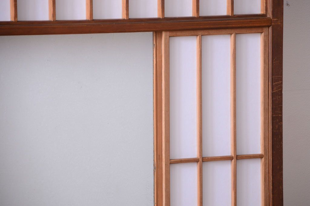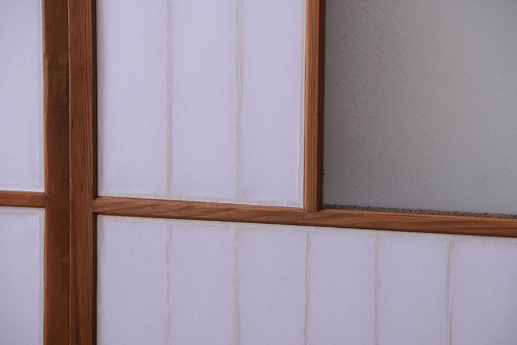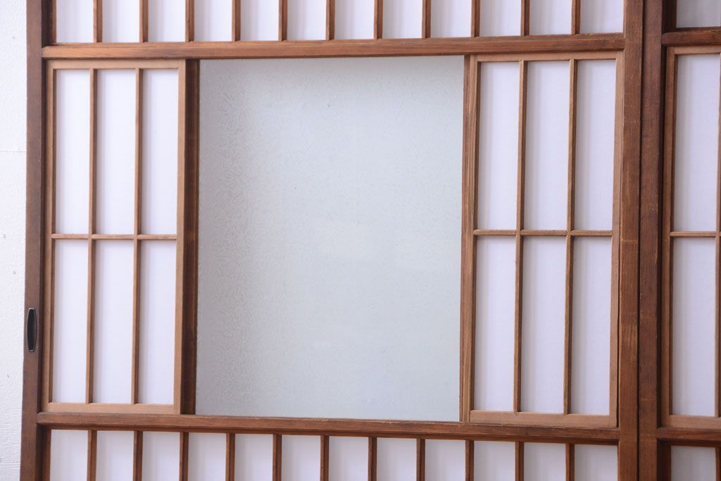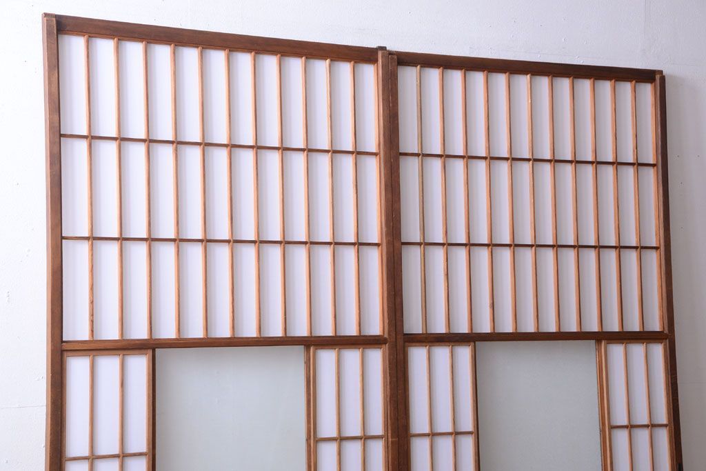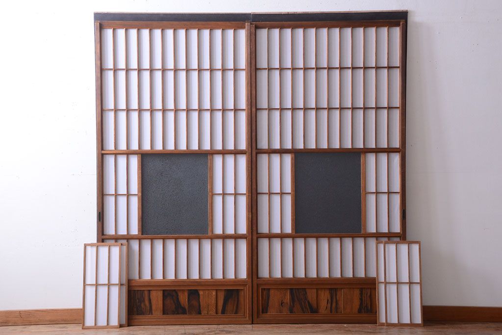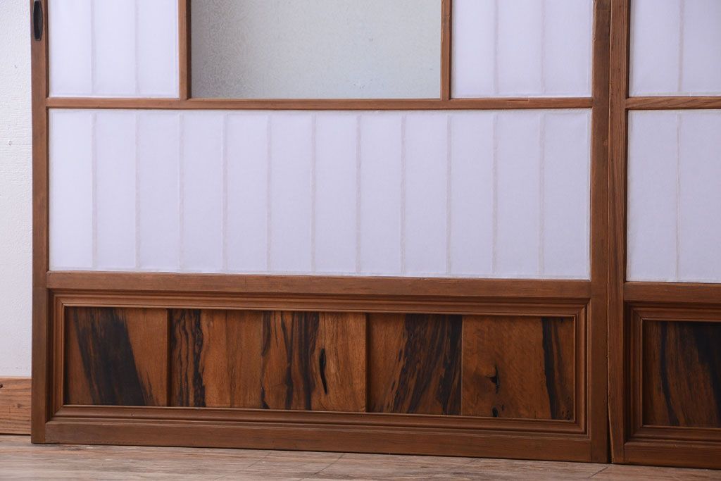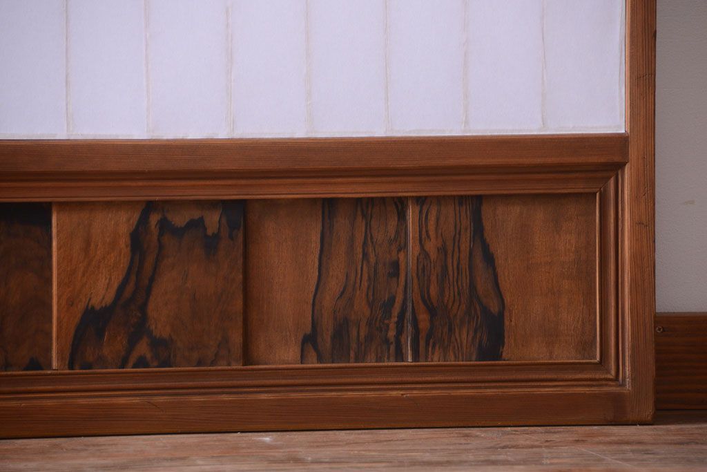 和製アンティーク 腰板黒柿材!古い雪見障子戸2枚セット(1)(引き戸、擦り上げ障子戸、擦上障子戸)