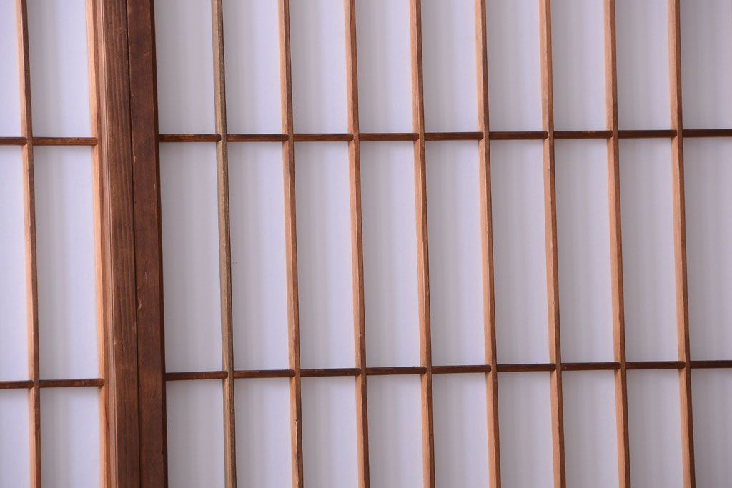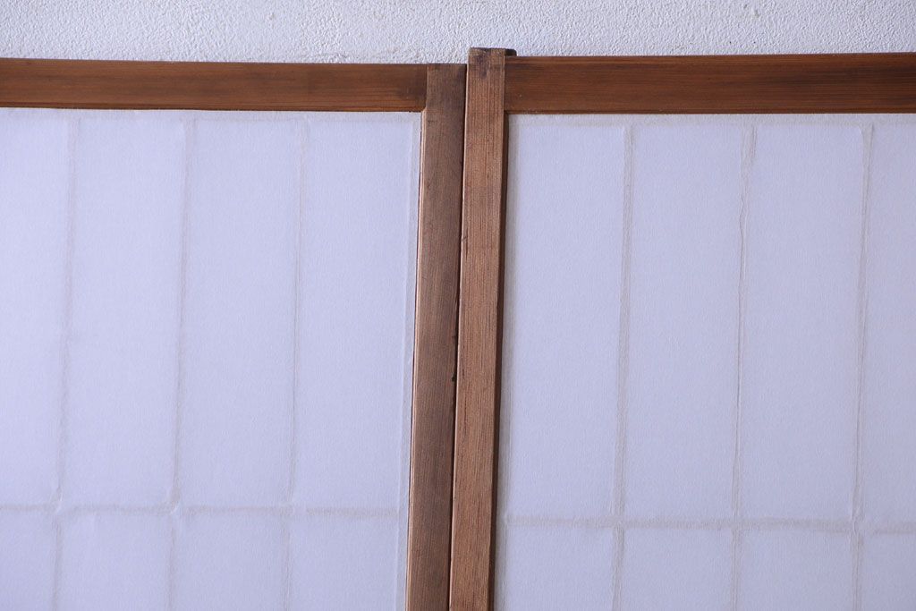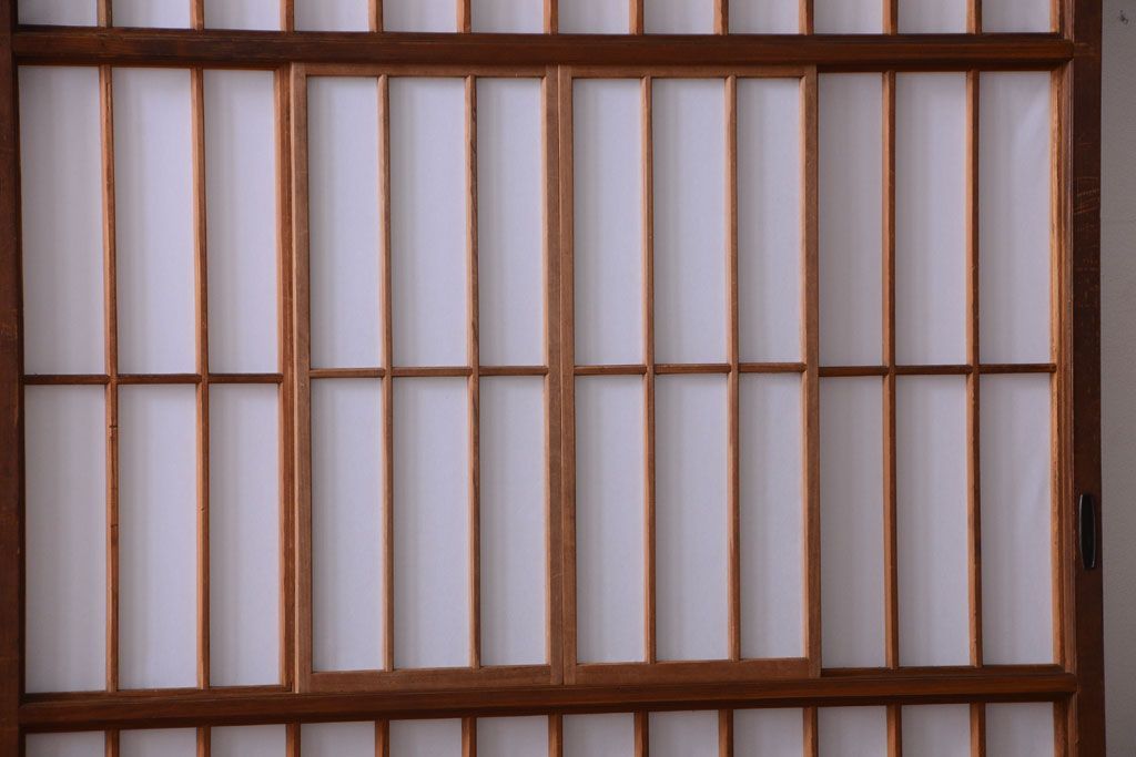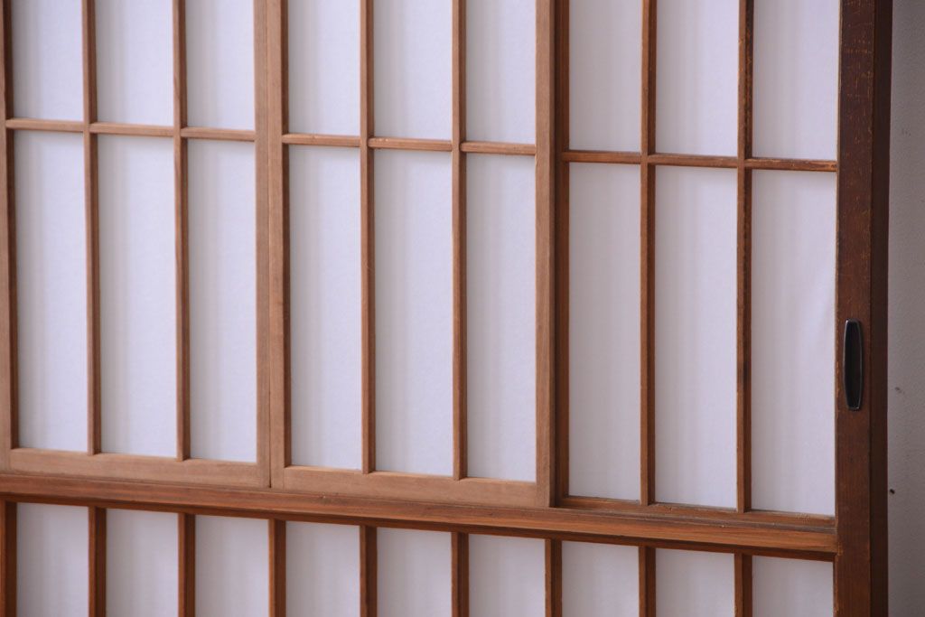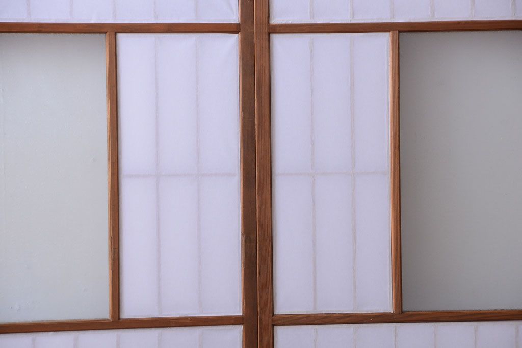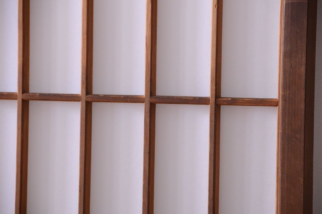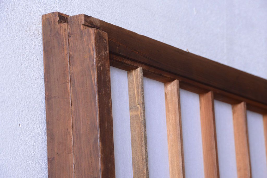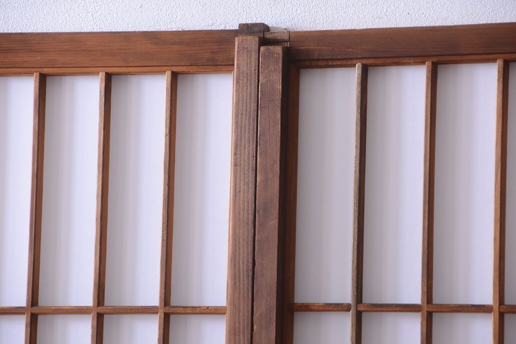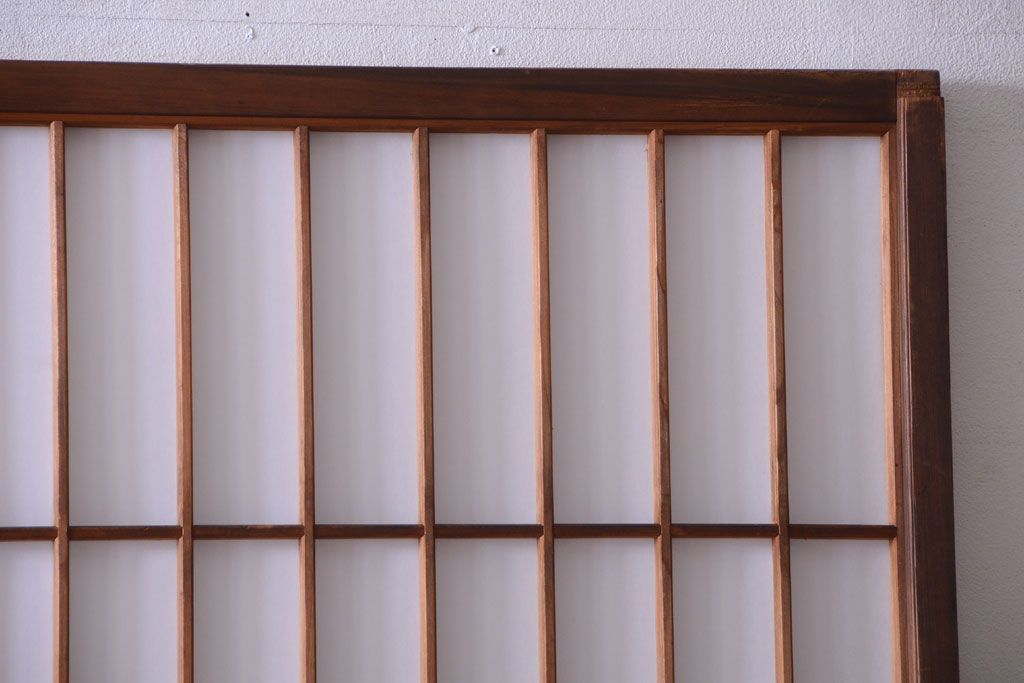 和製アンティーク 腰板黒柿材!古い雪見障子戸2枚セット(1)(引き戸、擦り上げ障子戸、擦上障子戸)