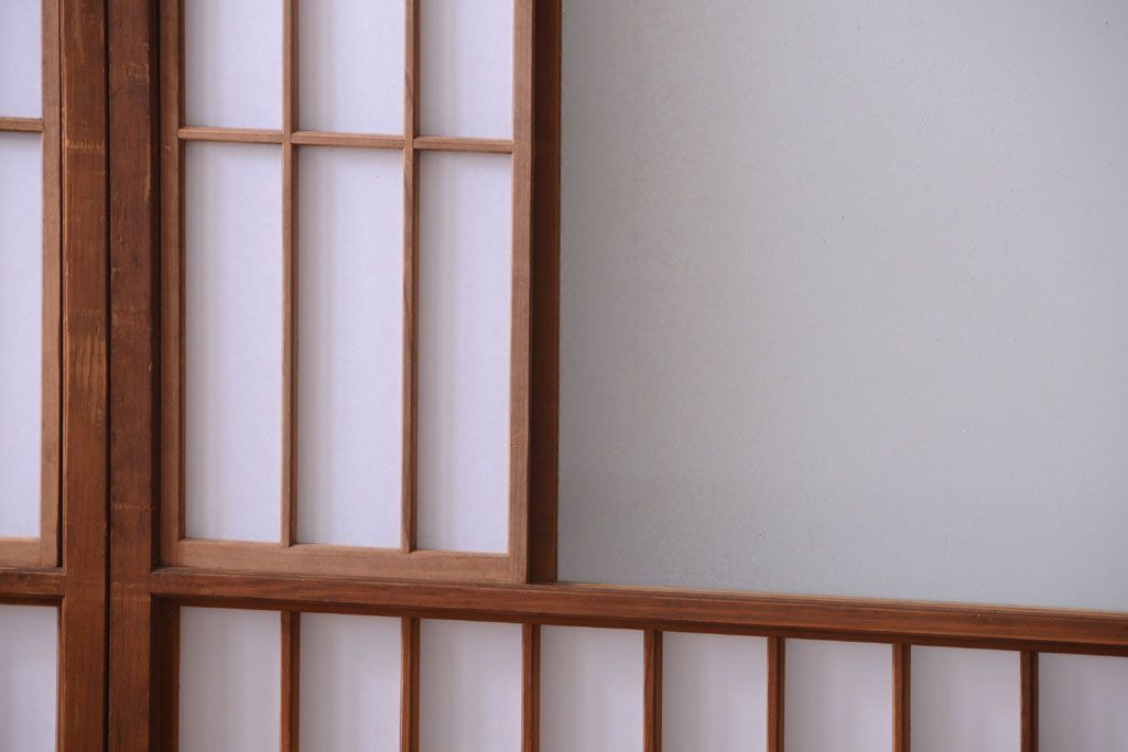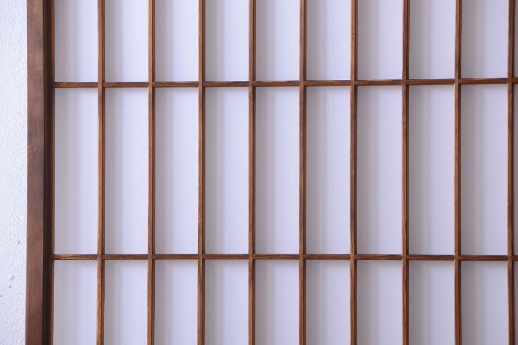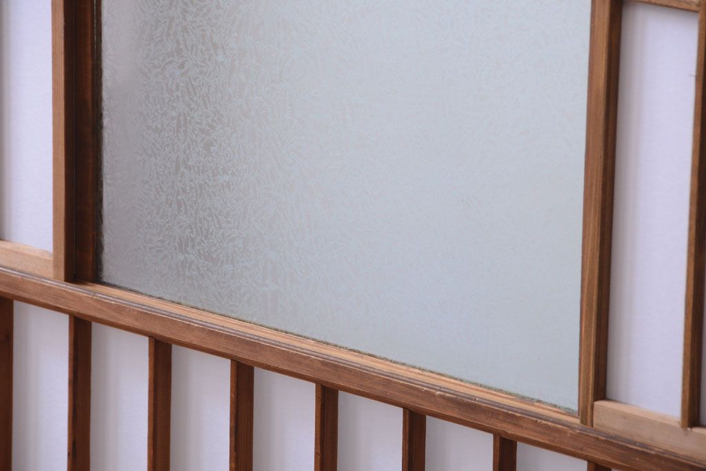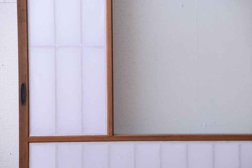 ラフジュ工房> ドア・建具> 障子戸 > 和製アンティーク 腰板黒柿材!古い雪見障子戸2枚セット(1)(引き戸、擦り上げ障子戸、擦上障子戸)