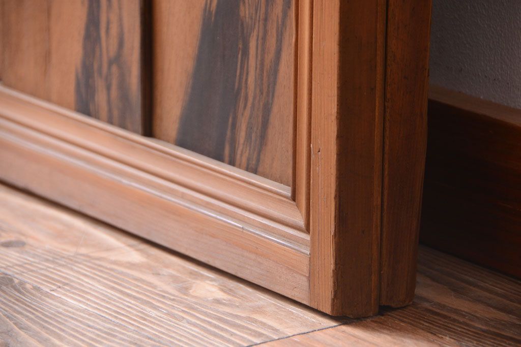 ラフジュ工房> ドア・建具> 2枚・3枚セット > 和製アンティーク 腰板黒柿材!古い雪見障子戸2枚セット(1)(引き戸、擦り上げ障子戸、擦上障子戸)
