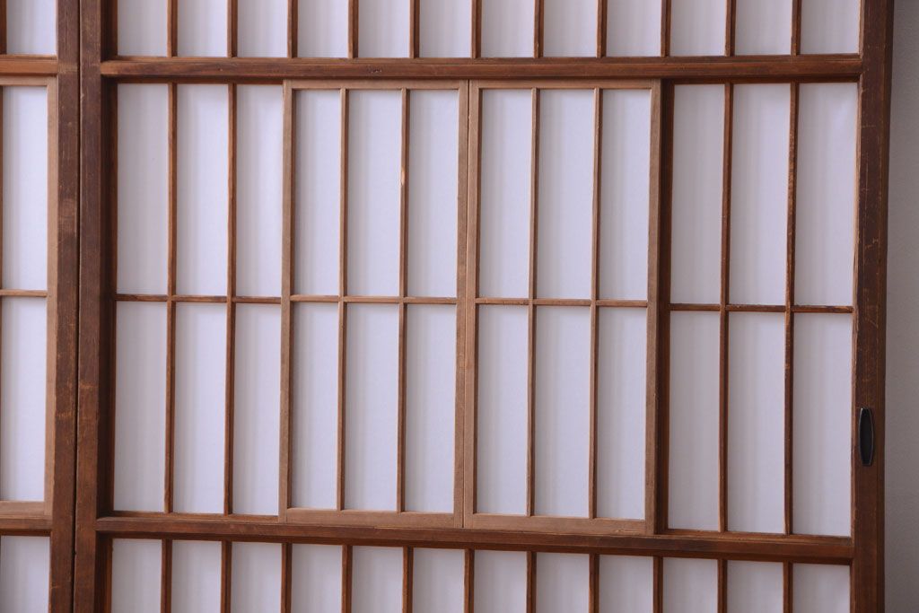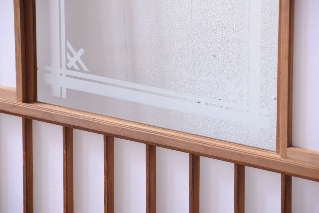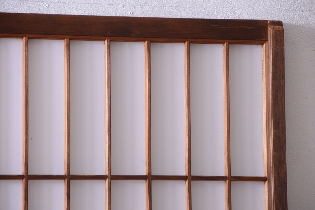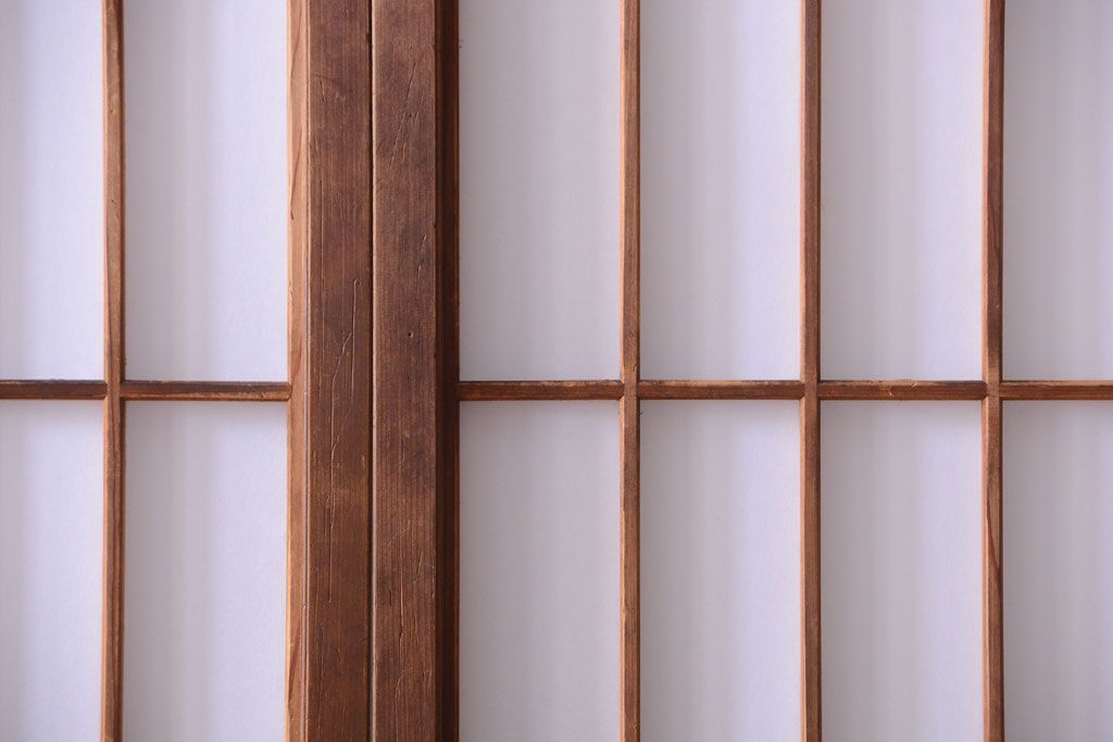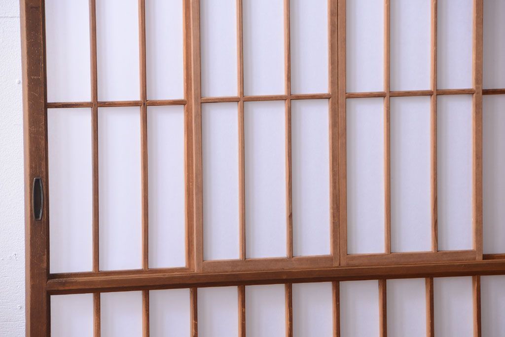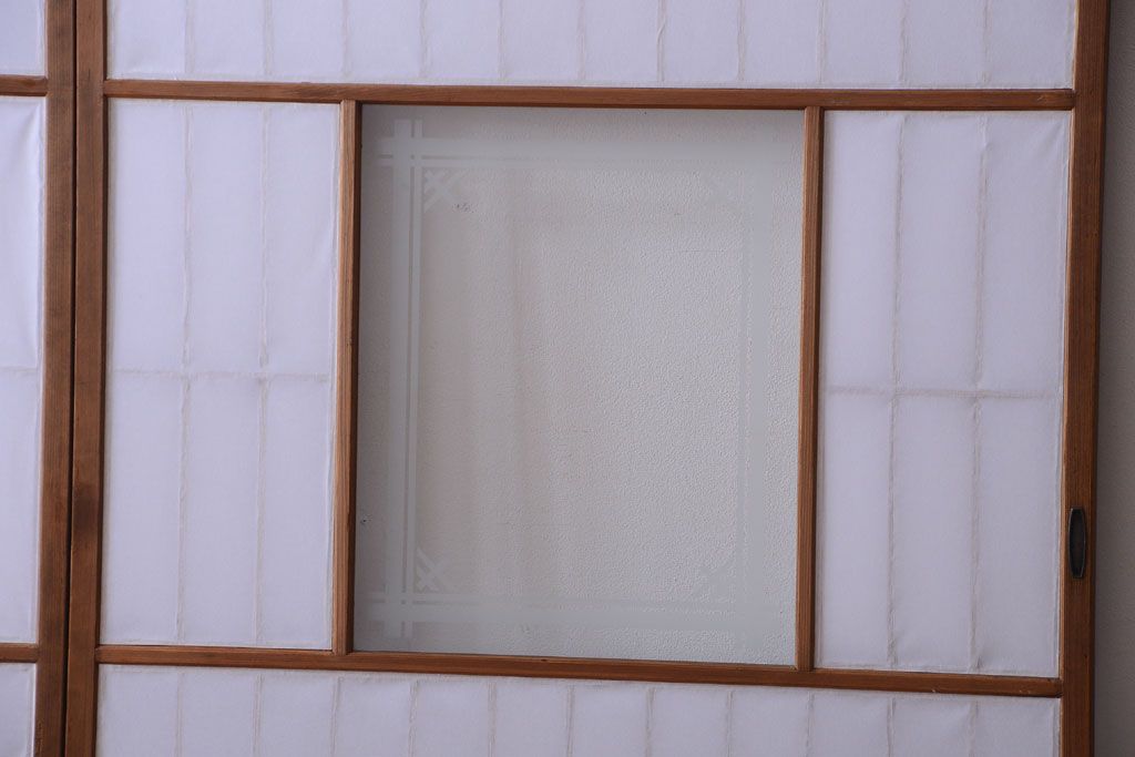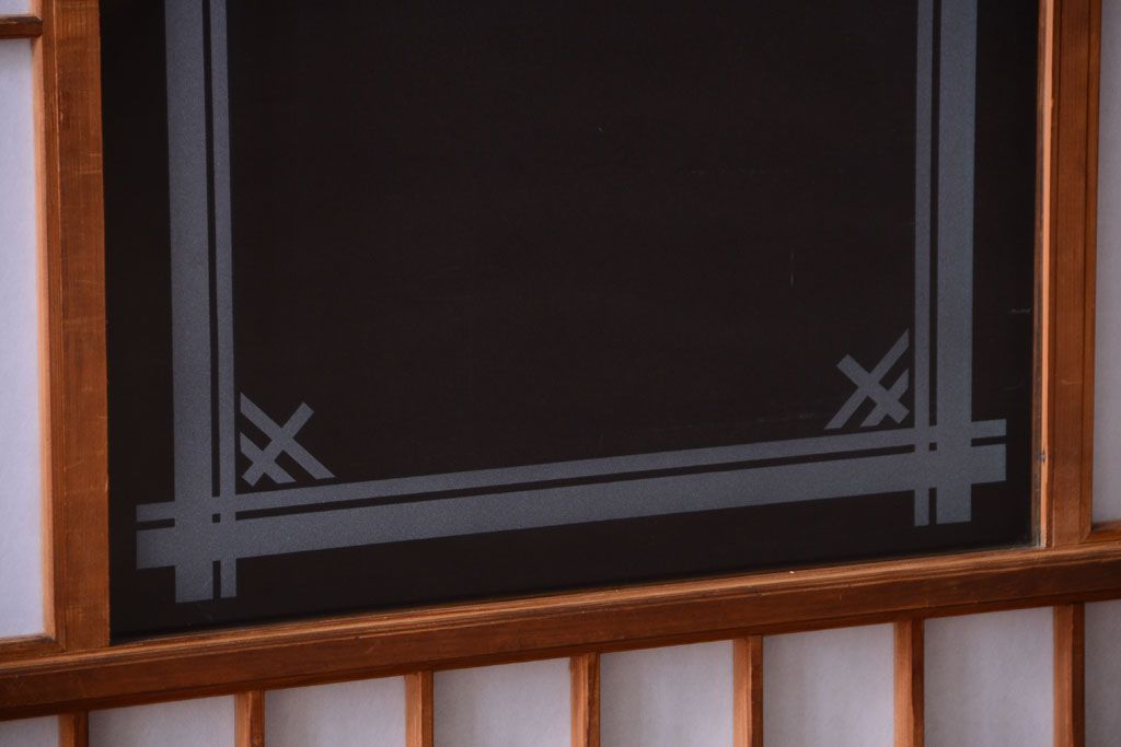 ラフジュ工房> ドア・建具> 障子戸 > 和製アンティーク 腰板黒柿材!古い雪見障子戸2枚セット(2)(引き戸、擦り上げ障子戸、擦上障子戸)