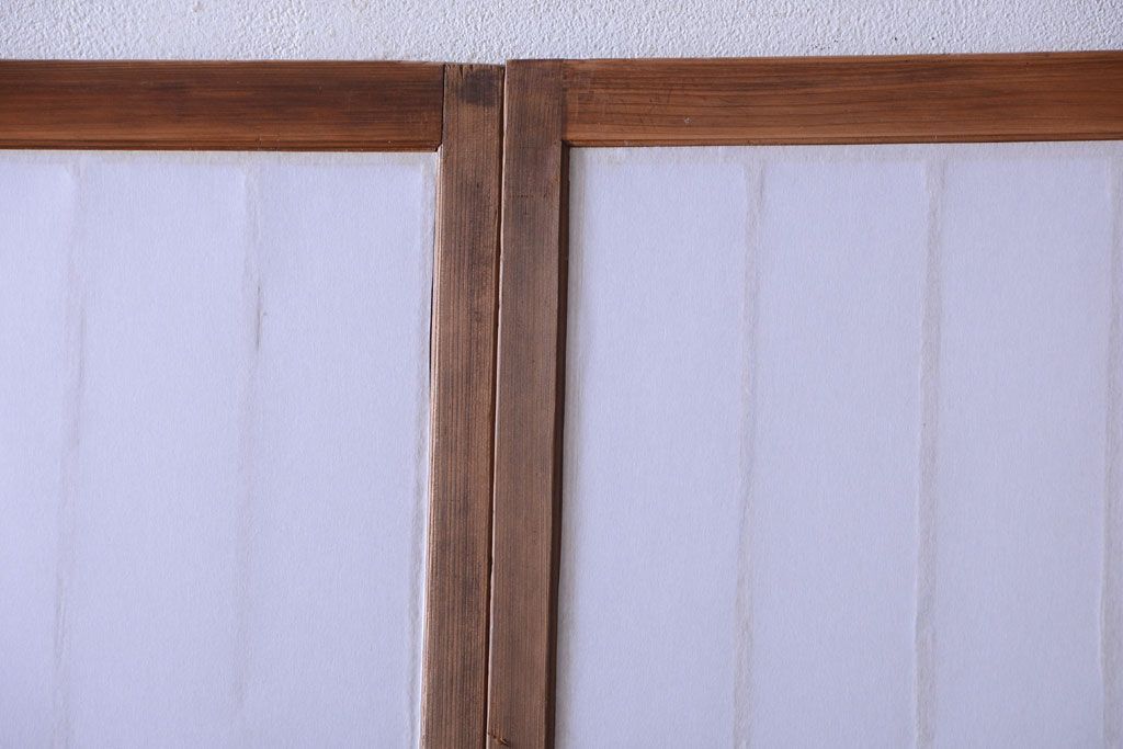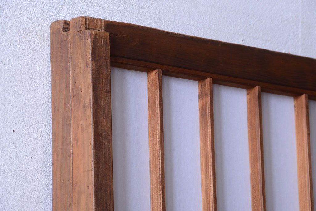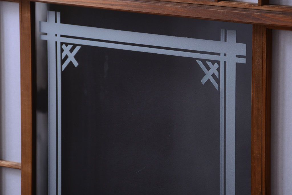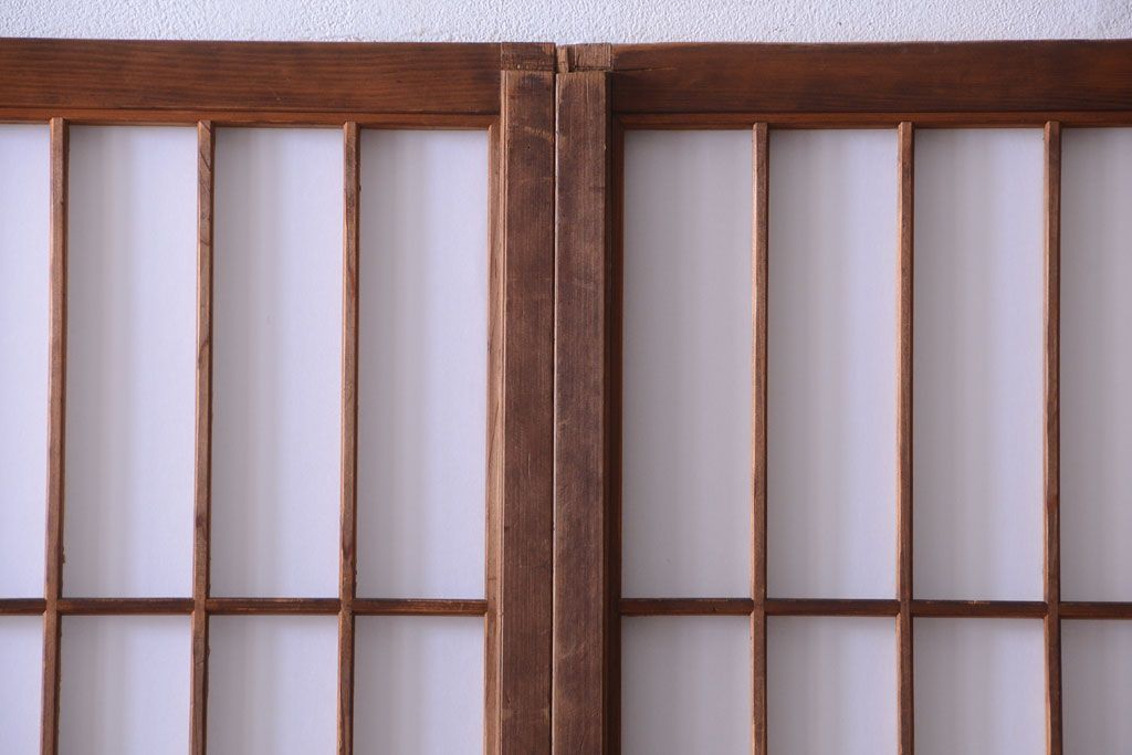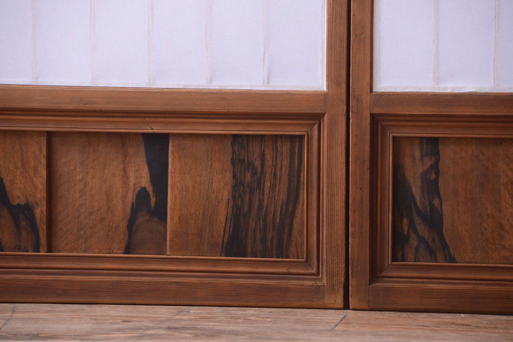 和製アンティーク 腰板黒柿材!古い雪見障子戸2枚セット(2)(引き戸、擦り上げ障子戸、擦上障子戸)