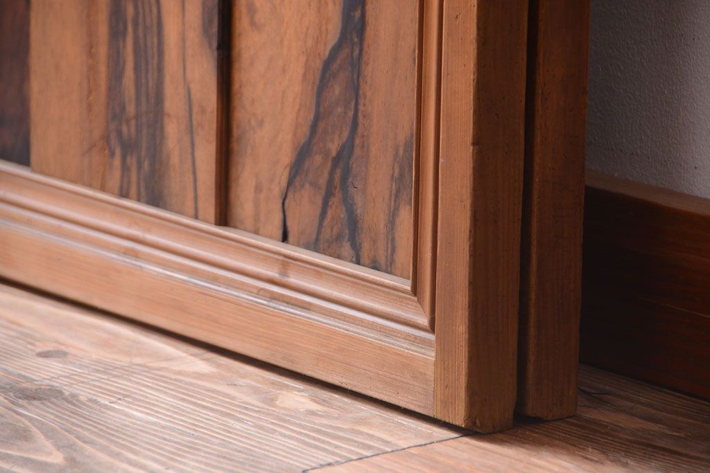 ラフジュ工房> ドア・建具> 2枚・3枚セット > 和製アンティーク 腰板黒柿材!古い雪見障子戸2枚セット(2)(引き戸、擦り上げ障子戸、擦上障子戸)