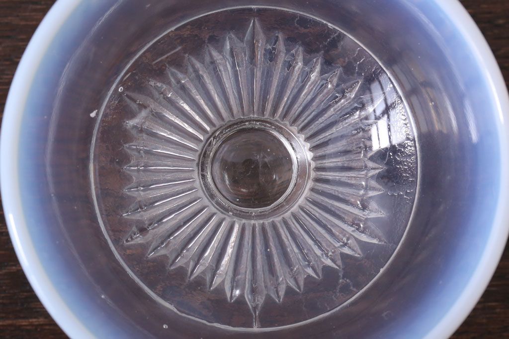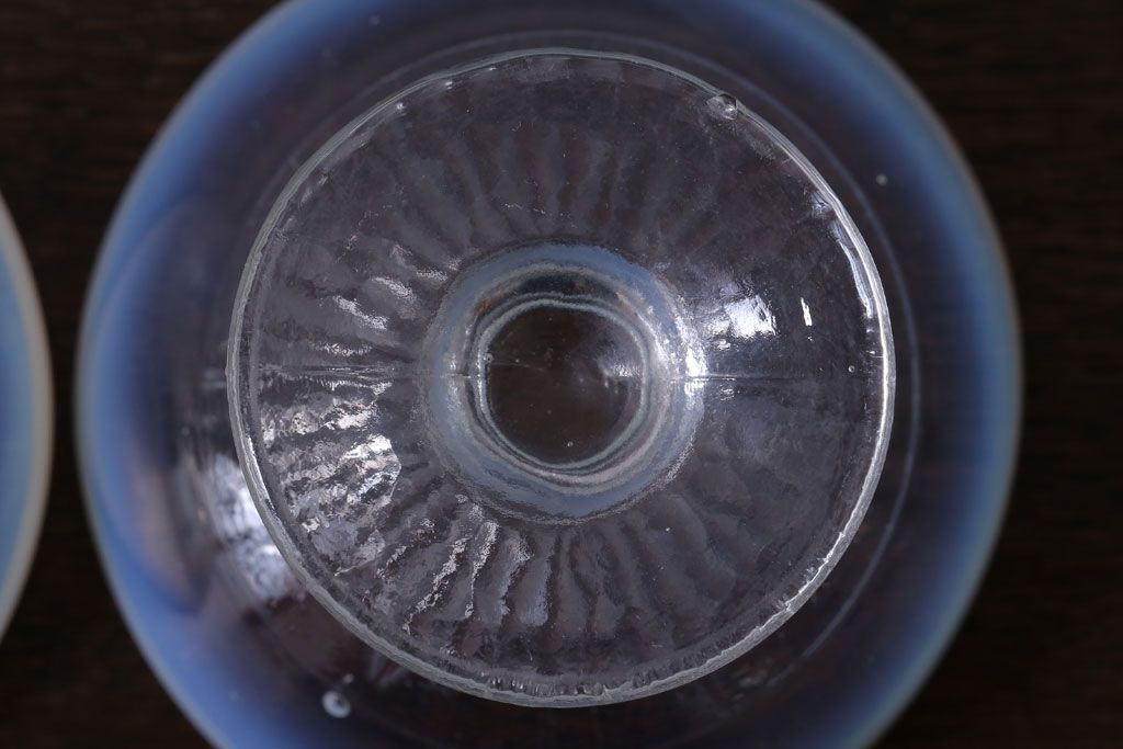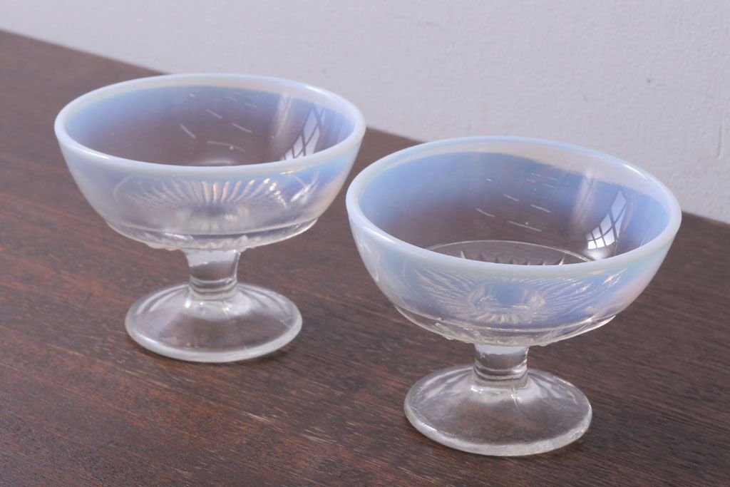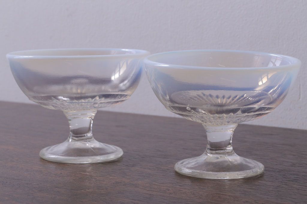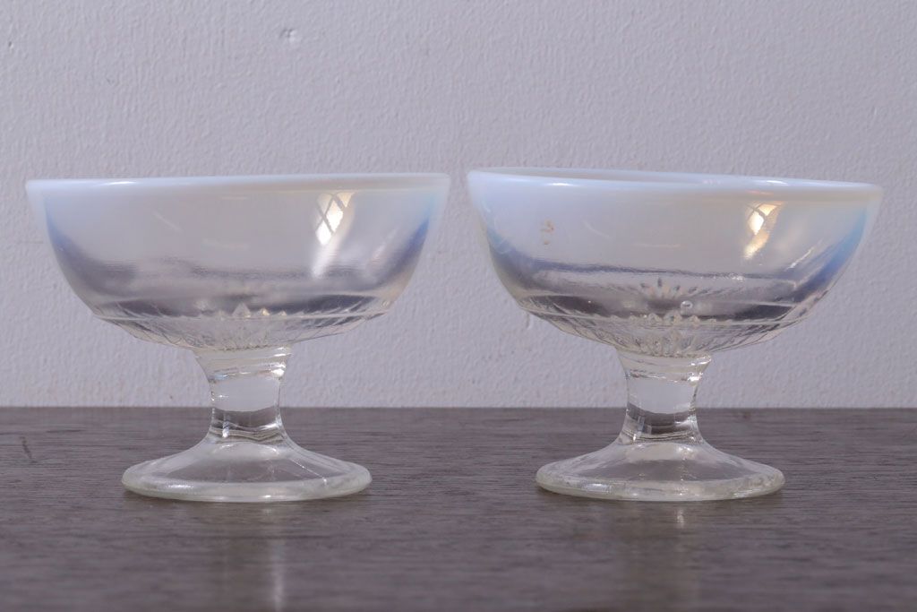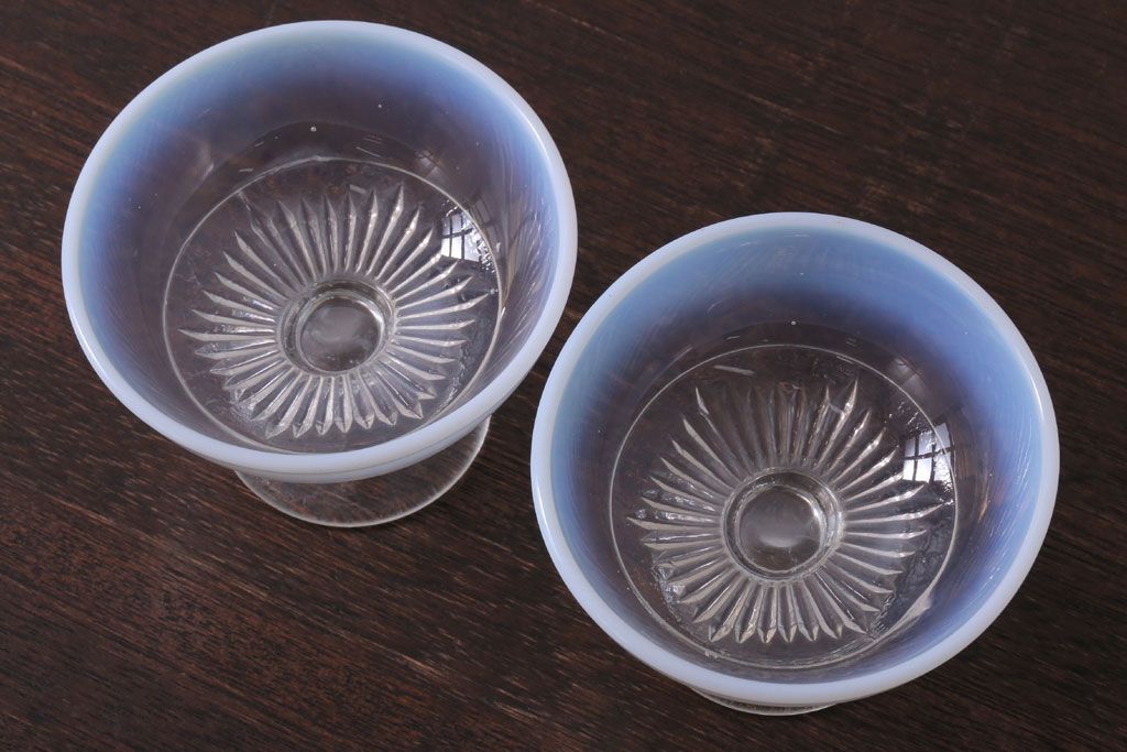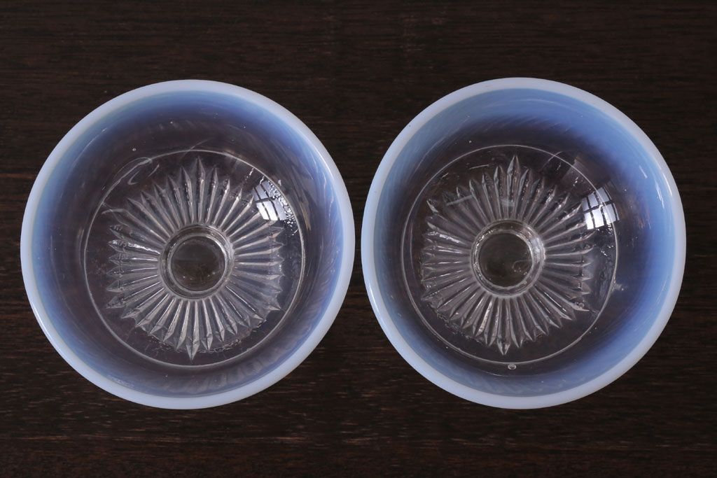 ラフジュ工房> 骨董・美術品> 骨董-ガラス食器 > アンティーク雑貨 昭和レトロ 乳白色縁の氷コップ2個セット(プレスガラス)(1)