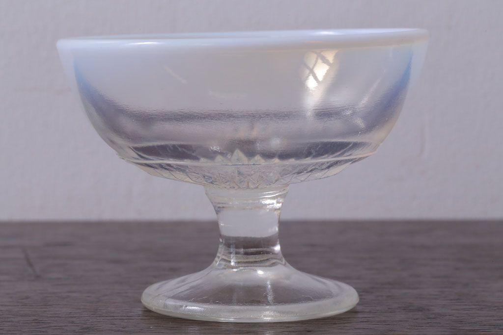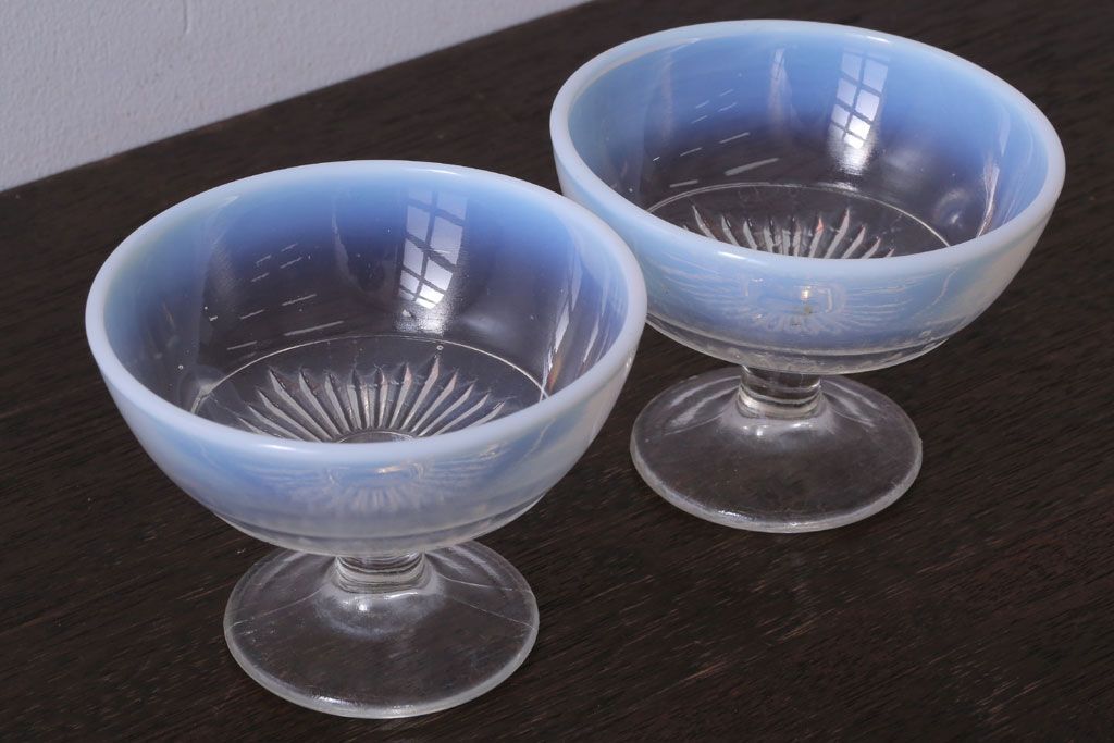 ラフジュ工房> 和食器・茶道具> 氷コップ > アンティーク雑貨 昭和レトロ 乳白色縁の氷コップ2個セット(プレスガラス)(1)