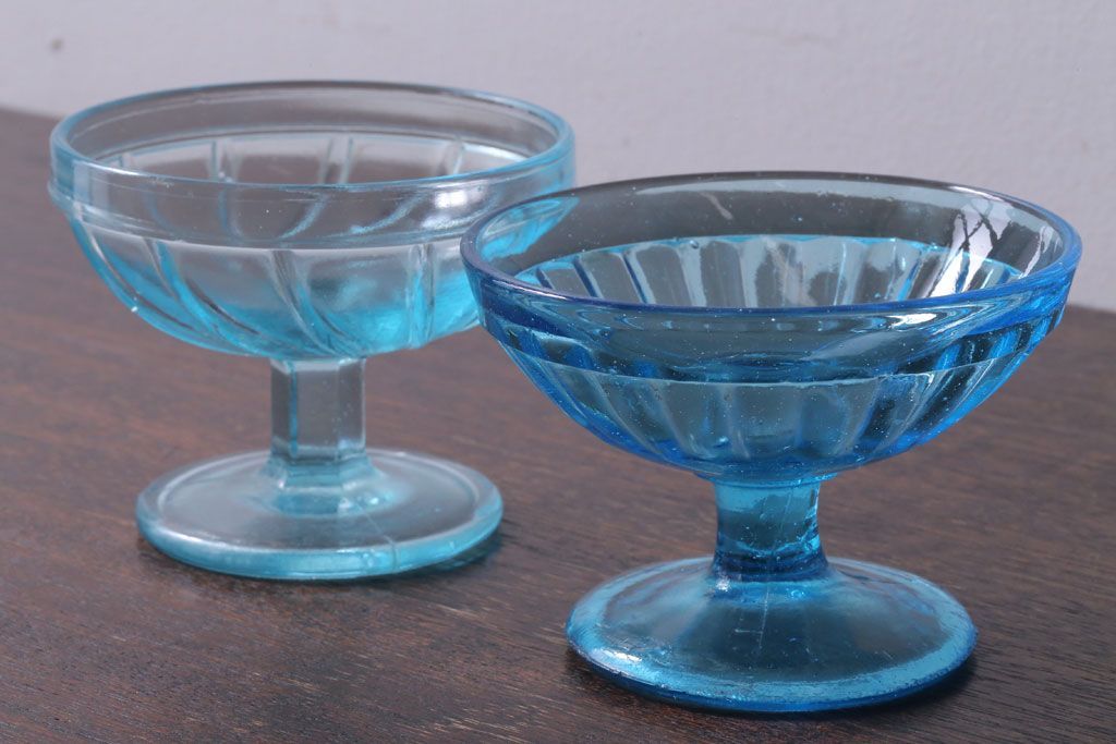 アンティーク雑貨 昭和レトロ 氷コップ2個セット(プレスガラス)(2)