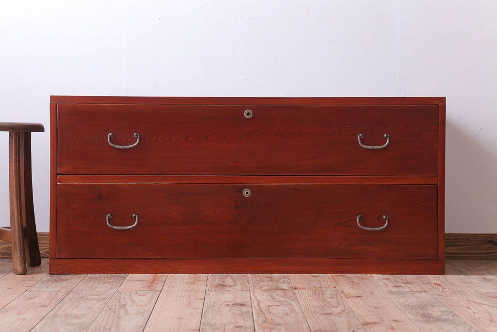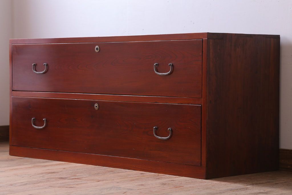 和製アンティーク 前面欅材のシンプルな衣装箪笥ローボード(2)です。
