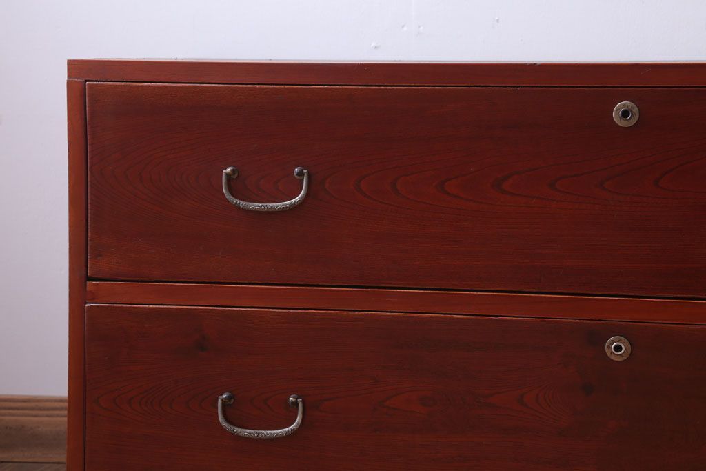 アンティーク家具 和製アンティーク 前面欅材のシンプルな衣装箪笥ローボード(2)