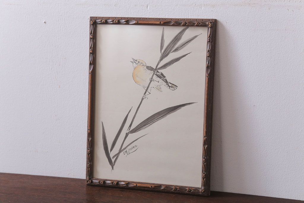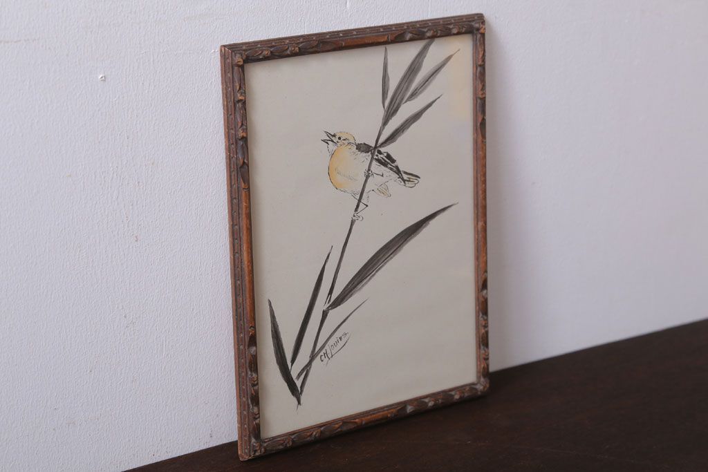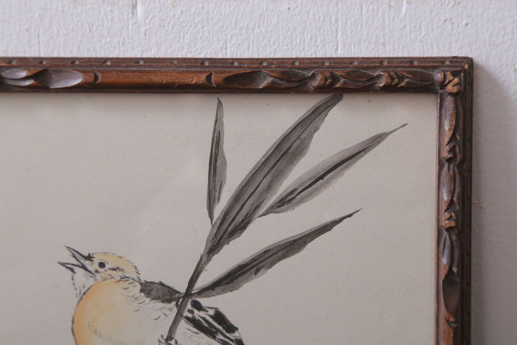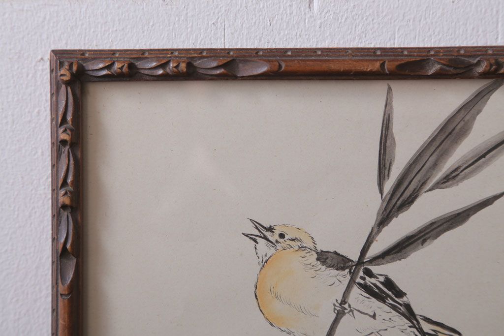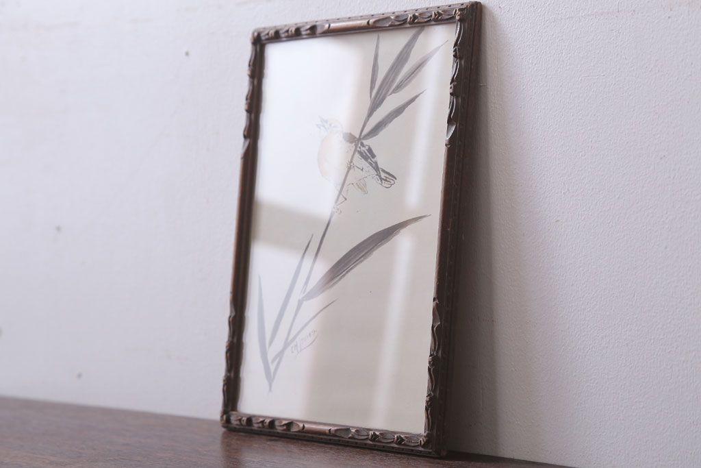 アンティーク雑貨 イギリスビンテージ 壁掛け絵画 フレーム(鳥)