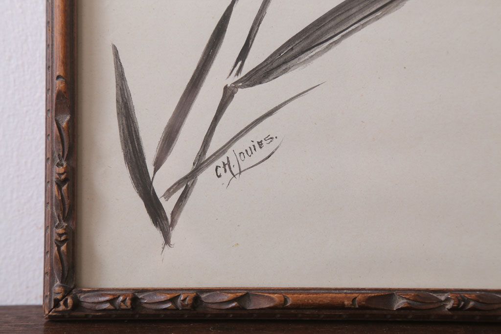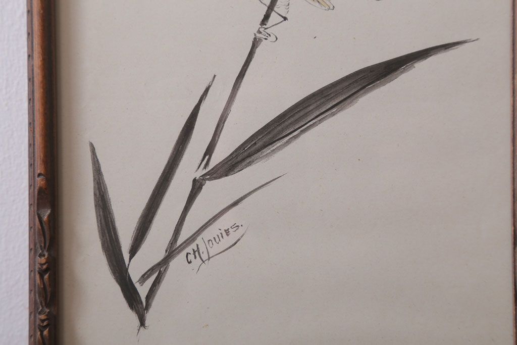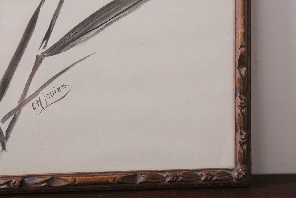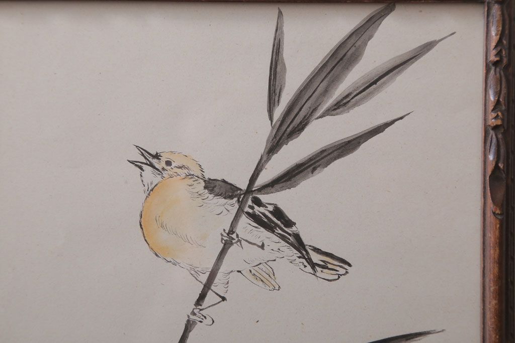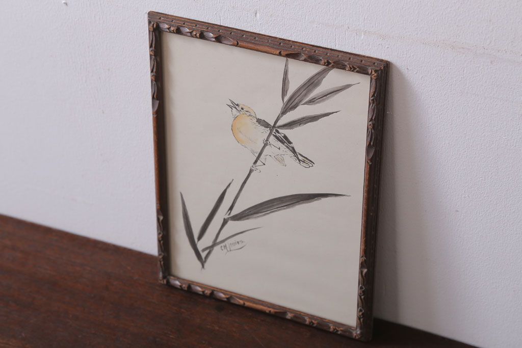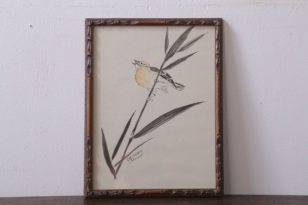 アンティーク雑貨 イギリスビンテージ 壁掛け絵画 フレーム(鳥)