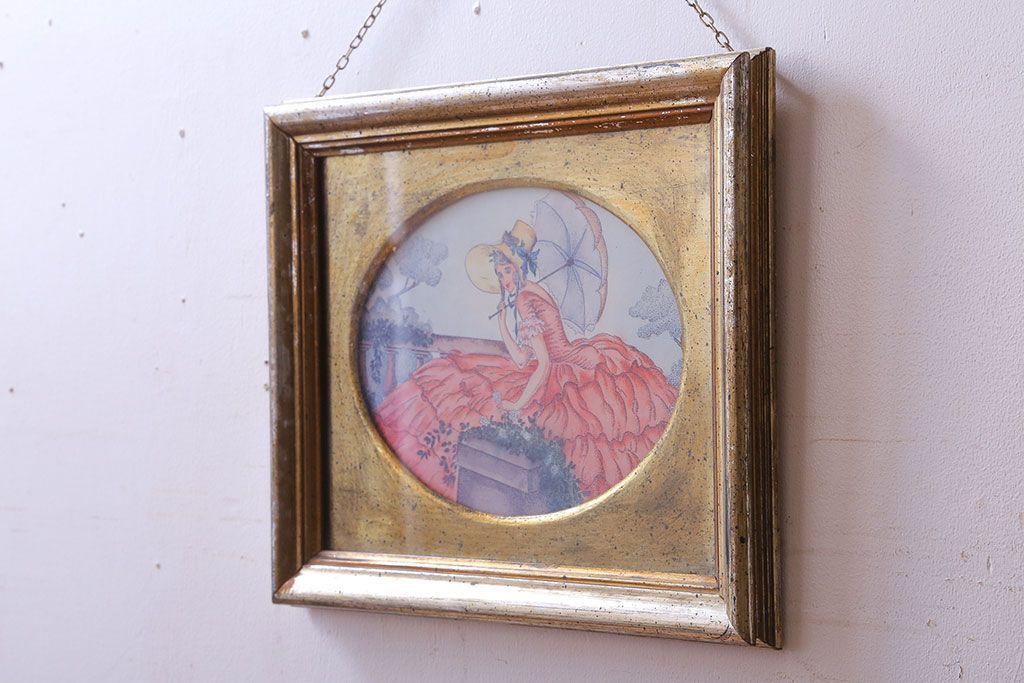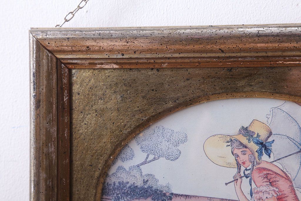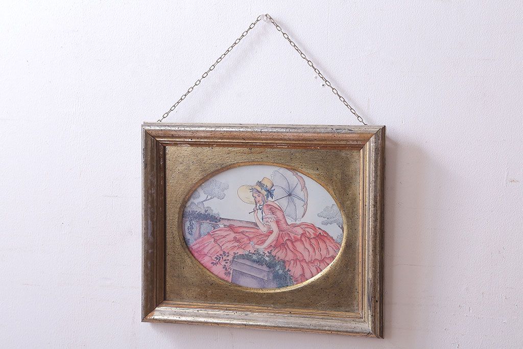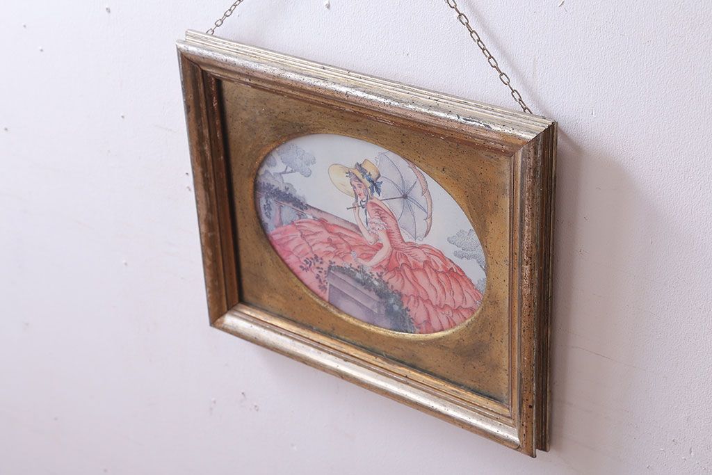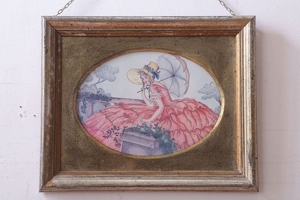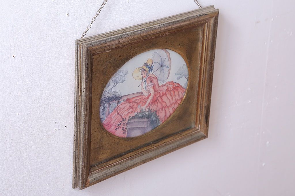 アンティーク雑貨 イギリスビンテージ 壁掛け絵画 フレーム(赤いドレスの女性)