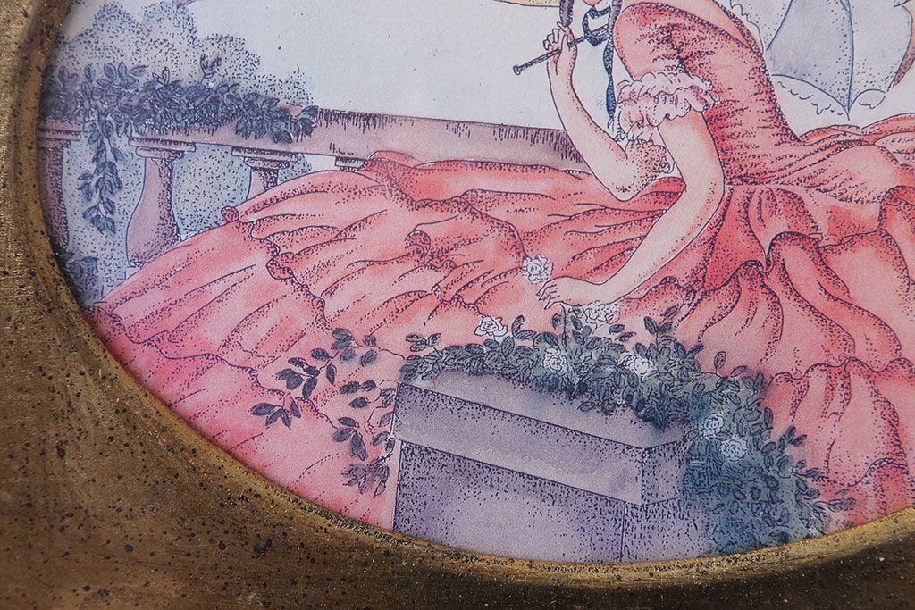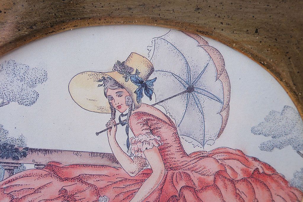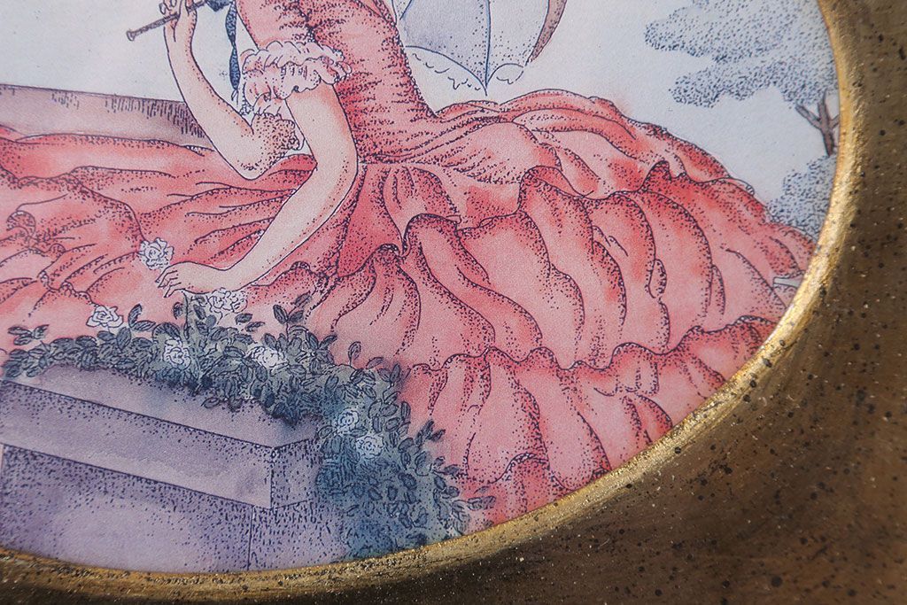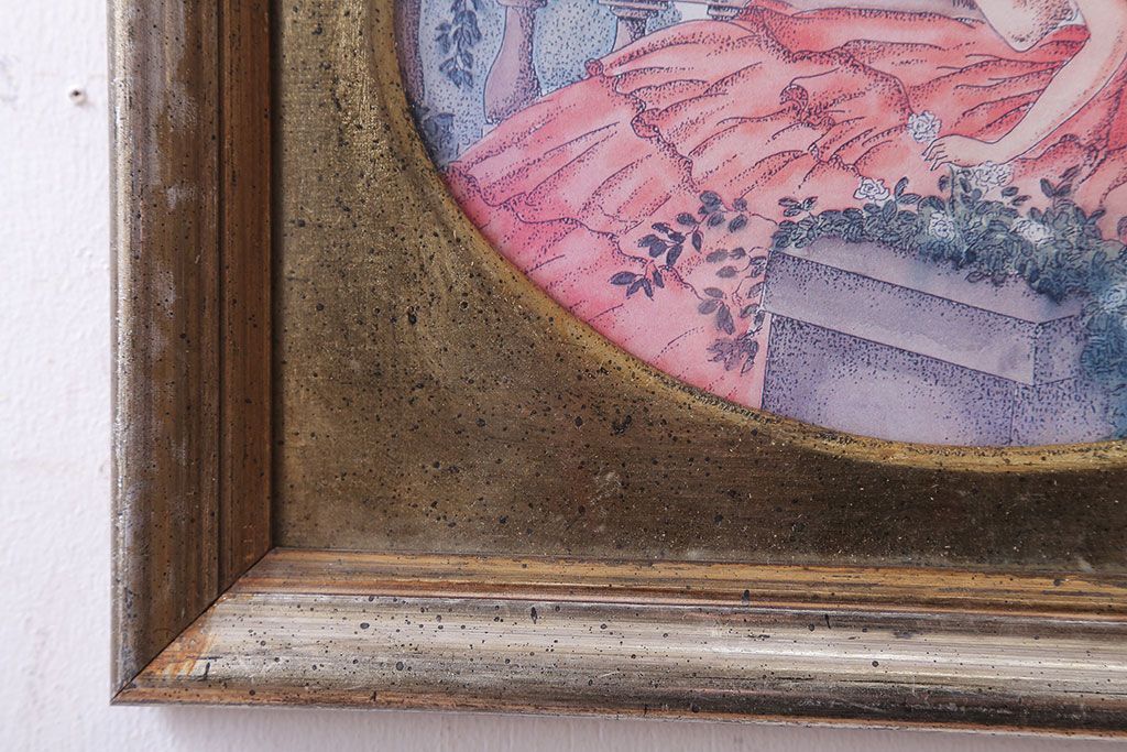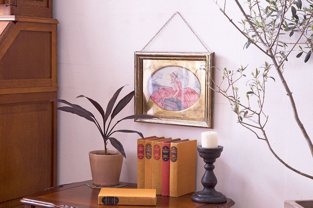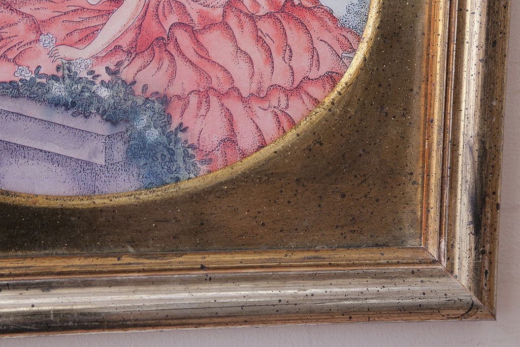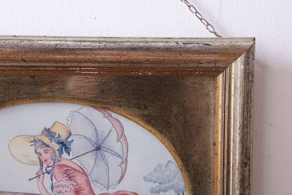 アンティーク雑貨 イギリスビンテージ 壁掛け絵画 フレーム(赤いドレスの女性)