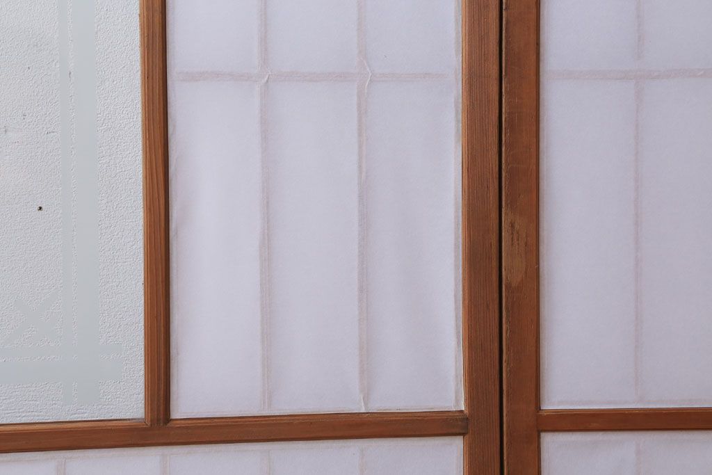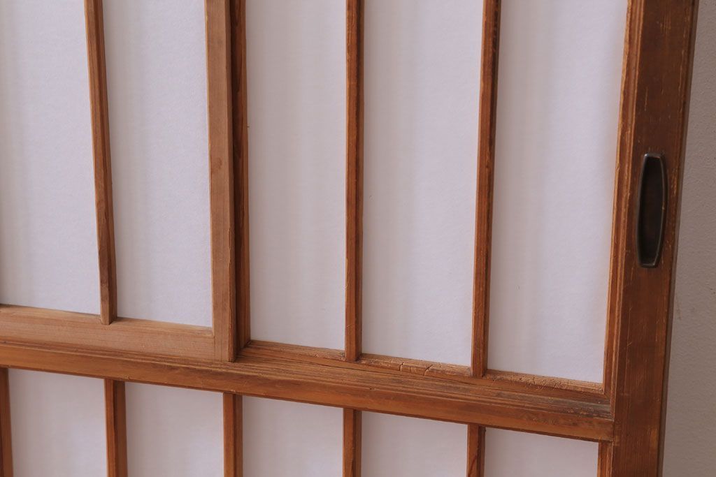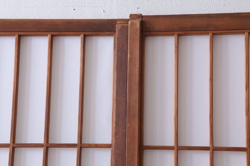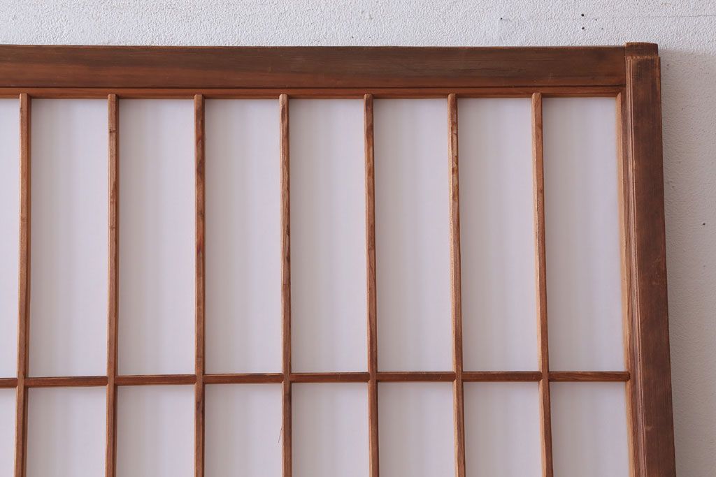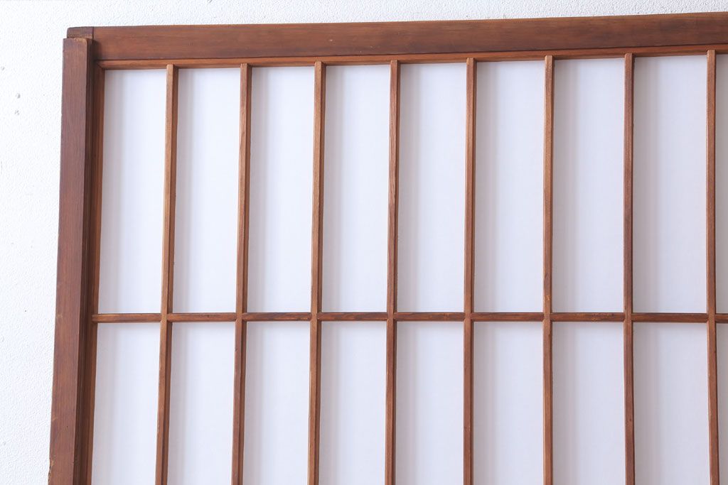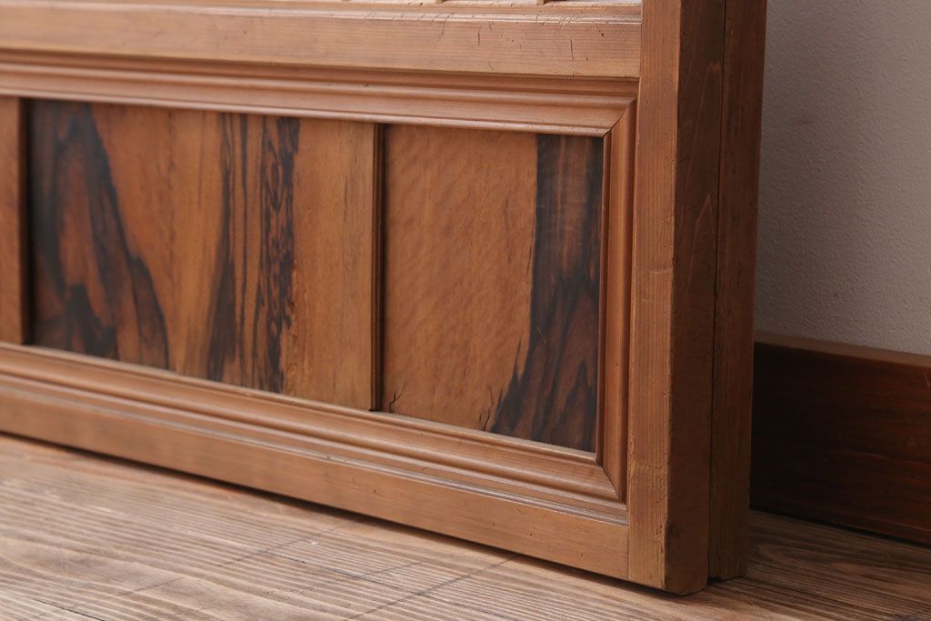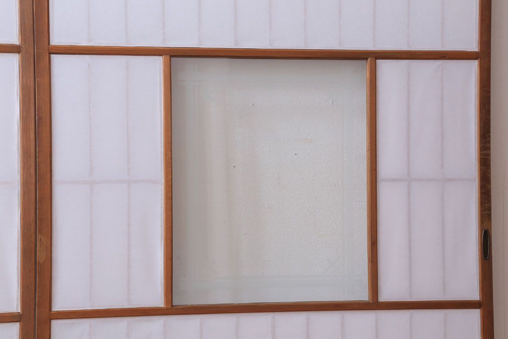 ラフジュ工房> ドア・建具> 障子戸 > 和製アンティーク 腰板黒柿材!デザインガラス入りの古い雪見障子戸2枚セット(2)(引き戸、擦り上げ障子戸、擦上障子戸)