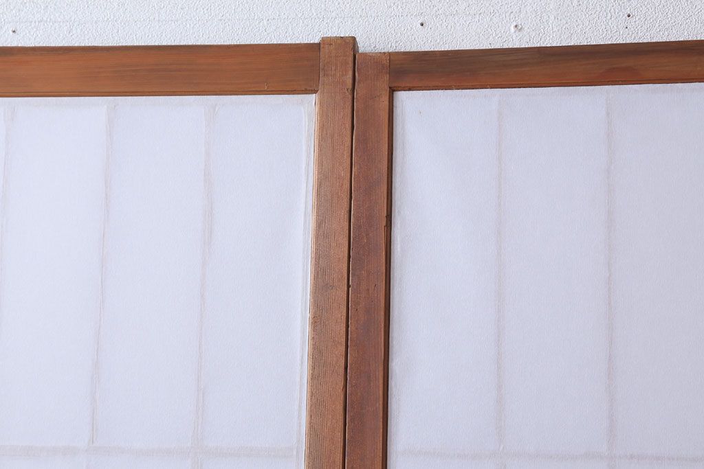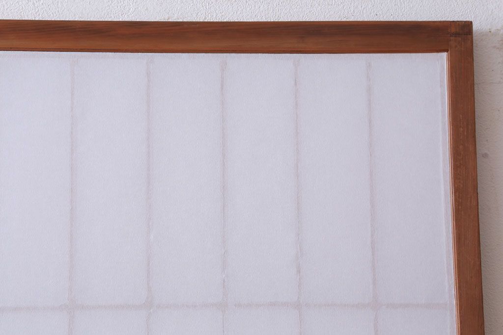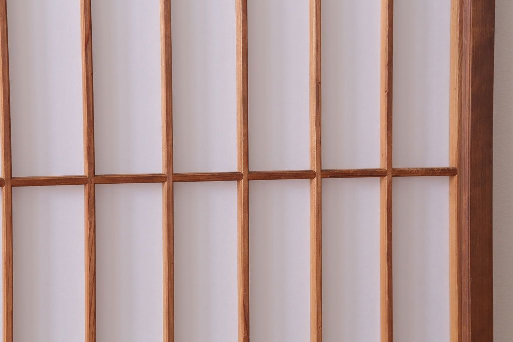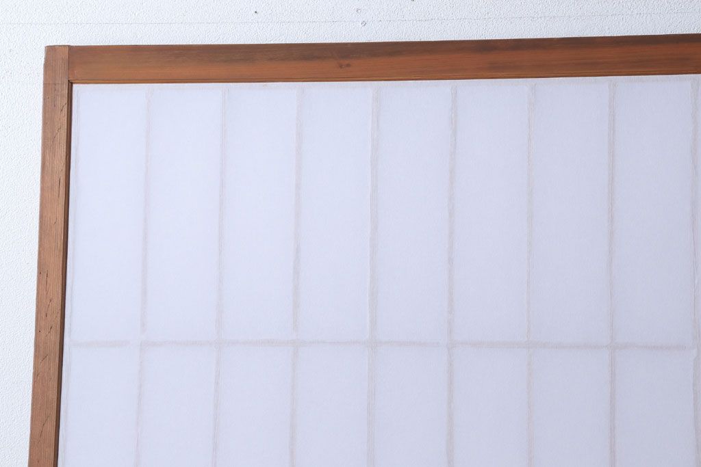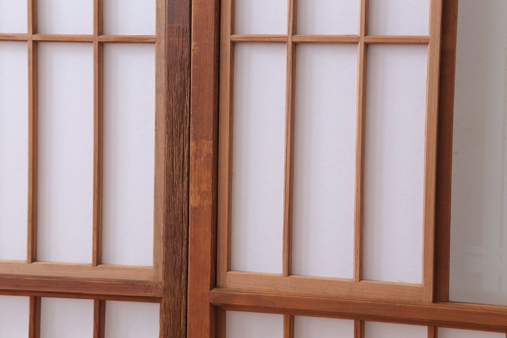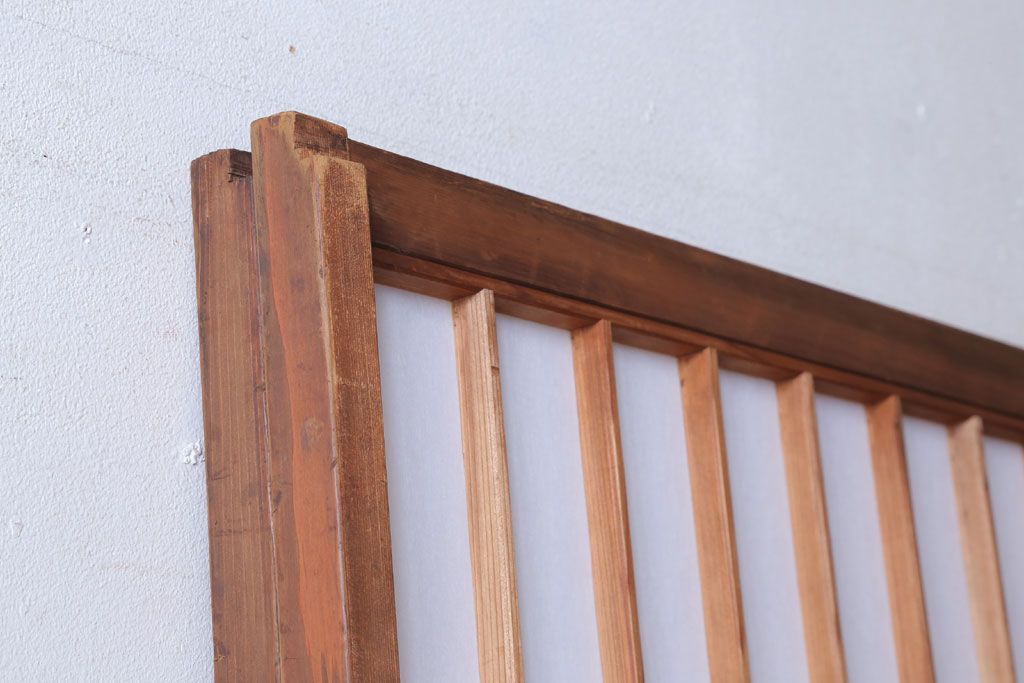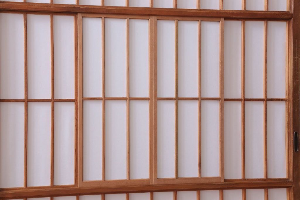 ラフジュ工房> ドア・建具> 障子戸 > 和製アンティーク 腰板黒柿材!デザインガラス入りの古い雪見障子戸2枚セット(2)(引き戸、擦り上げ障子戸、擦上障子戸)