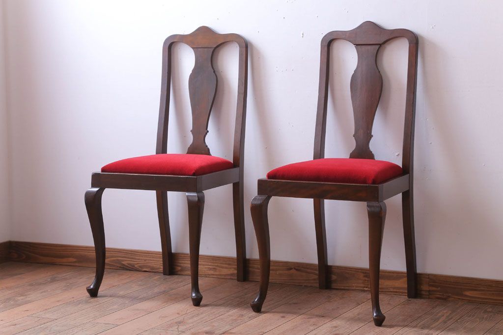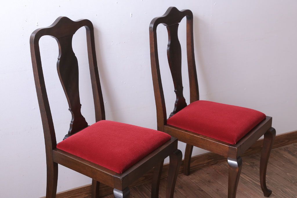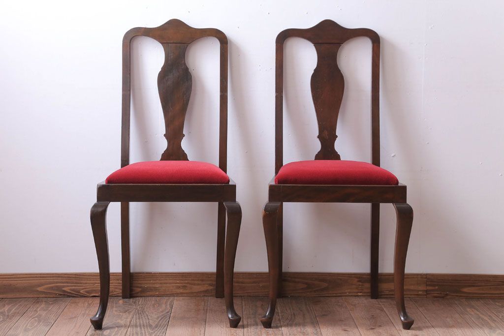アンティーク家具 イギリスアンティーク 古いバーチ材のチェア2脚セット(ダイニングチェア)(2)