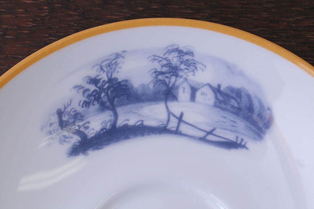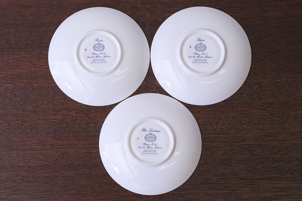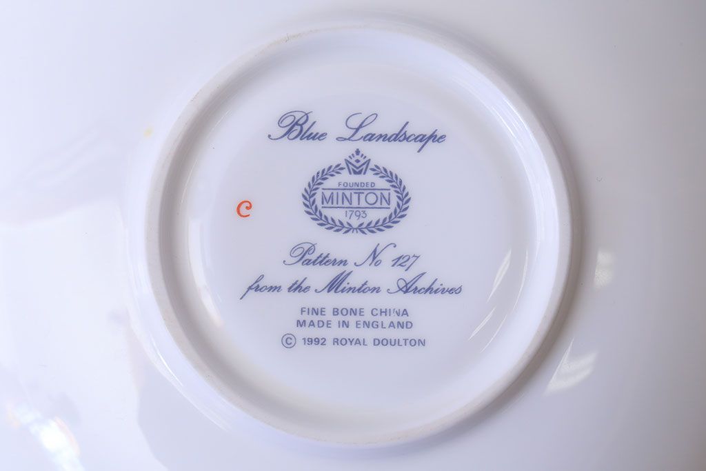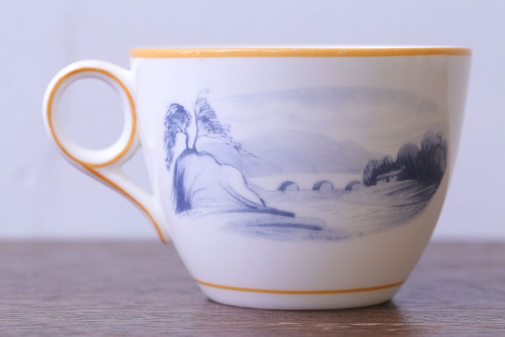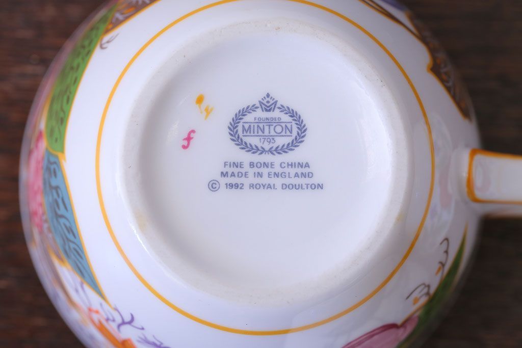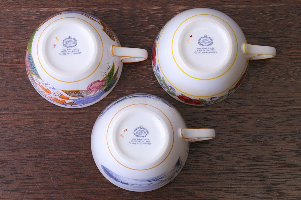 アンティーク雑貨 中古 イギリスMINTON(ミントン) Peonies・poppies・blue landscape カップ&ソーサー3客セット(洋食器)
