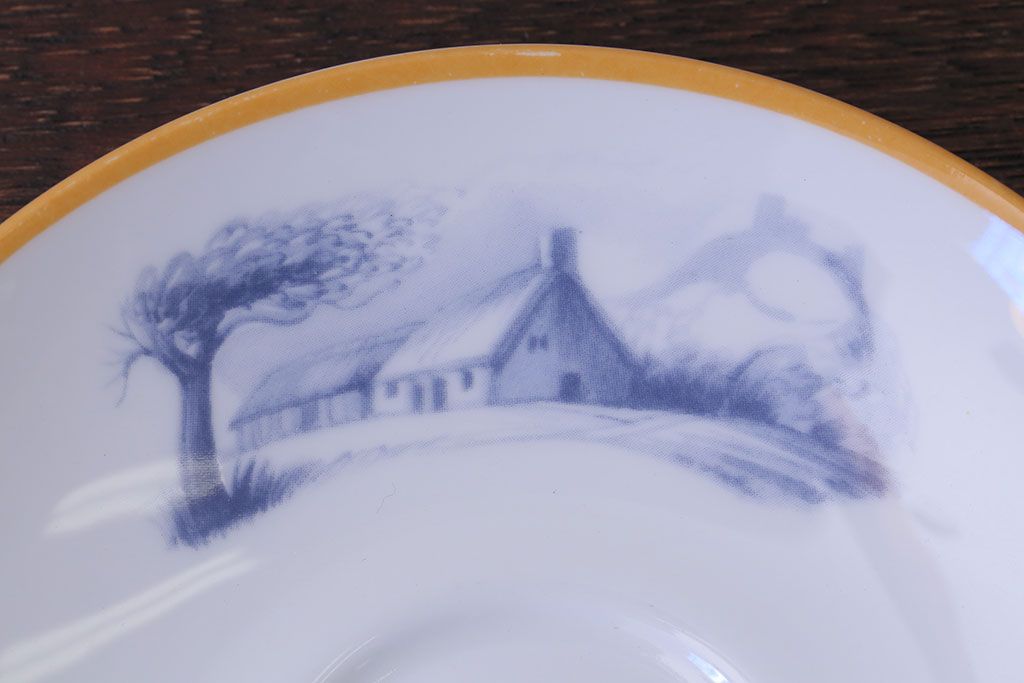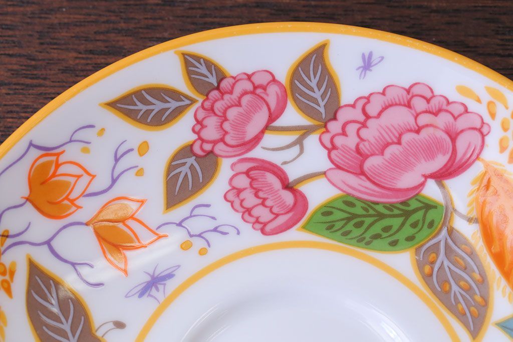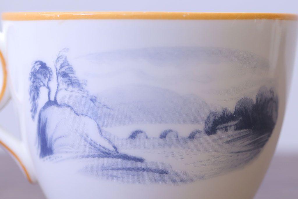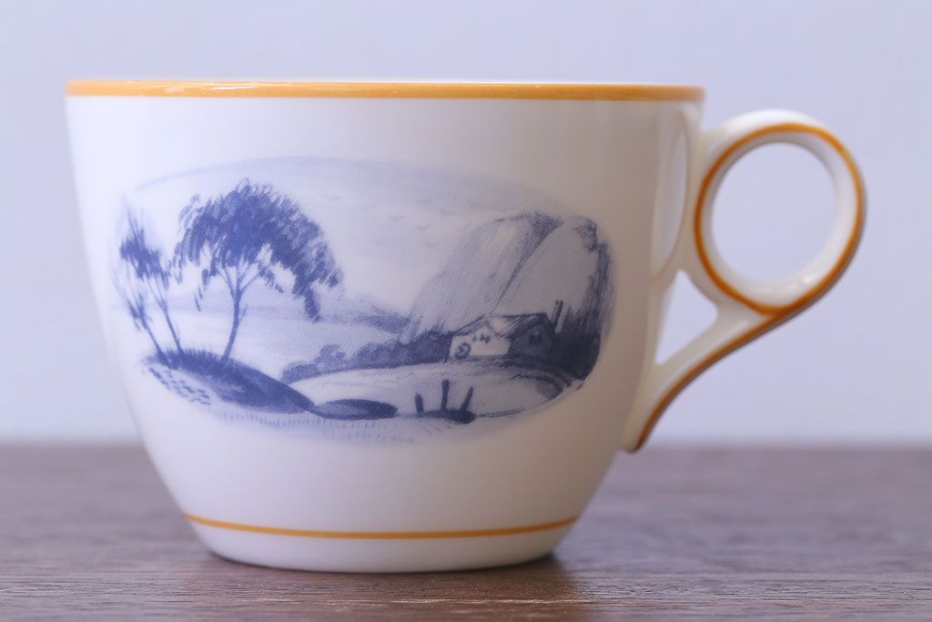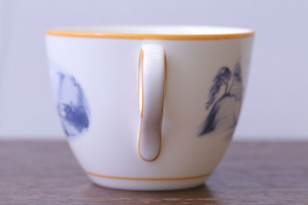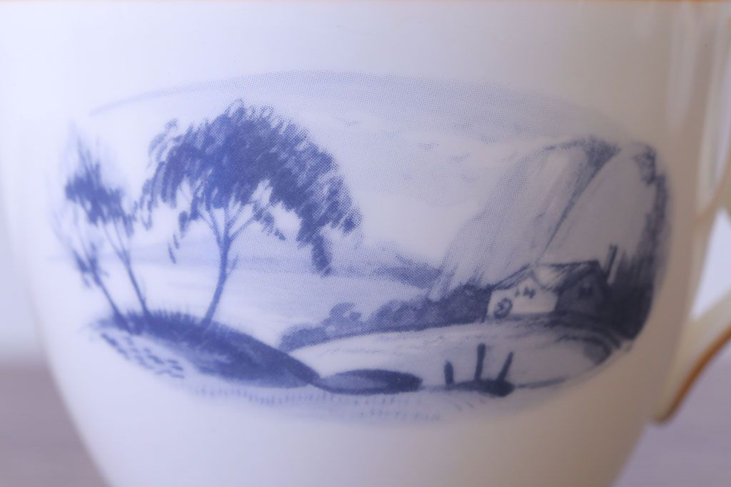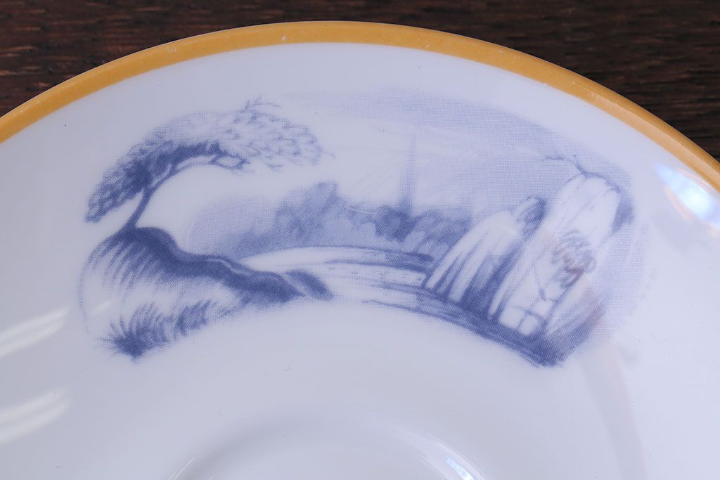 アンティーク雑貨 中古 イギリスMINTON(ミントン) Peonies・poppies・blue landscape カップ&ソーサー3客セット(洋食器)