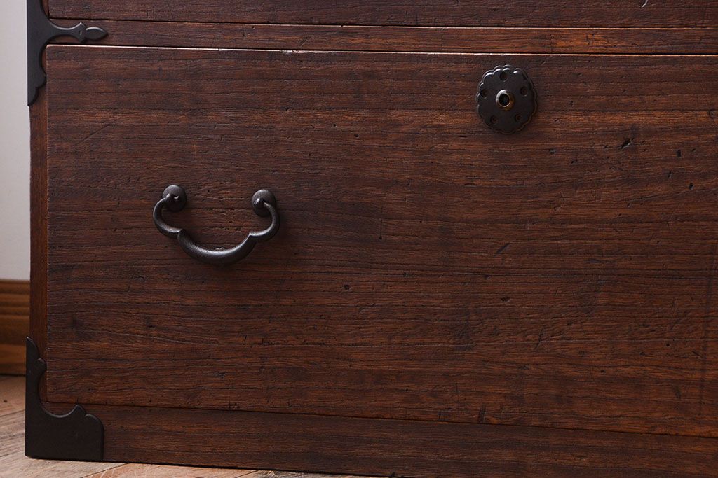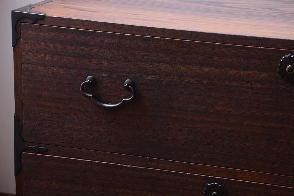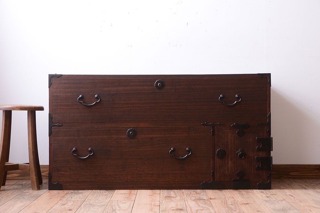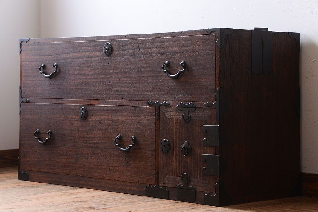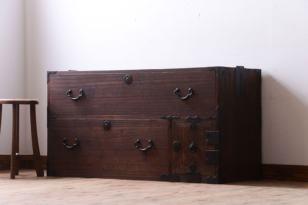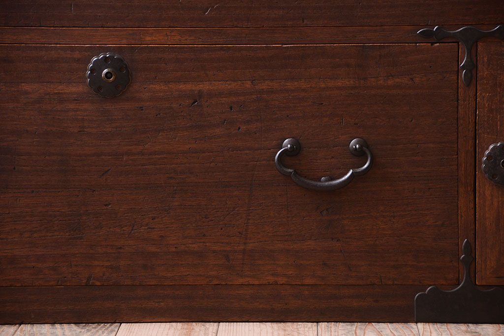 アンティーク家具 古民具・骨董 上品な金具のアンティーク衣装箪笥ローボード(時代箪笥)(2)