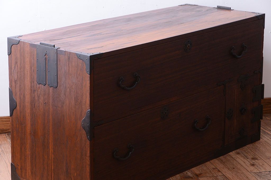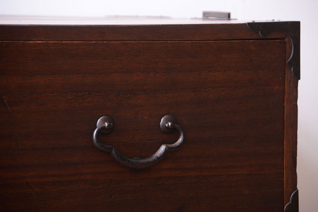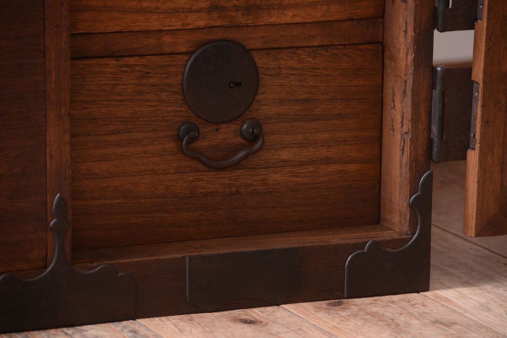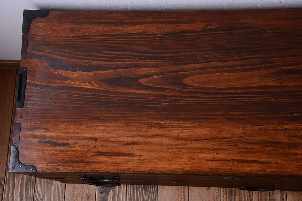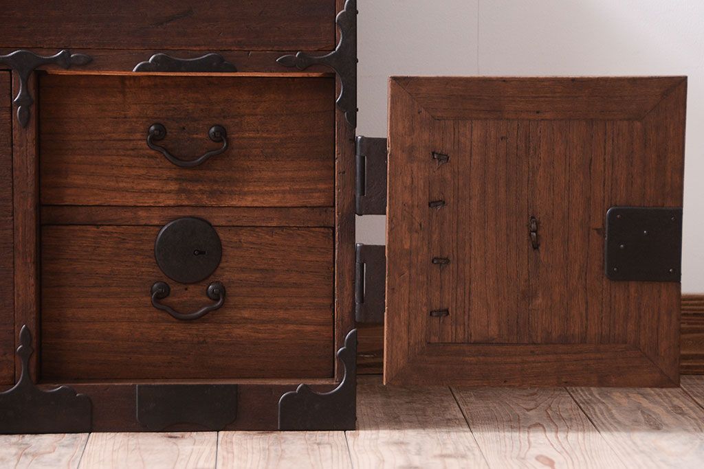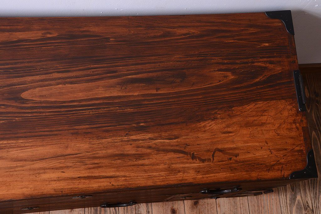 アンティーク家具 古民具・骨董 上品な金具のアンティーク衣装箪笥ローボード(時代箪笥)(2)