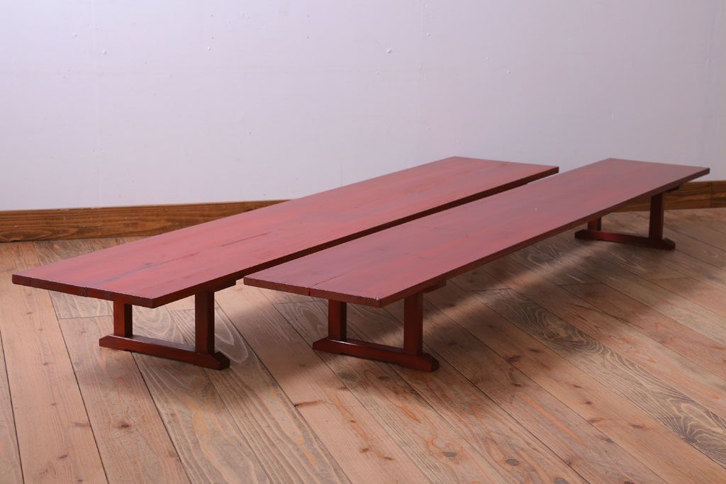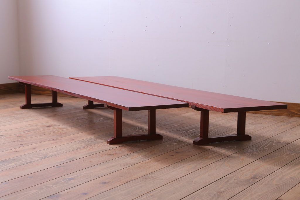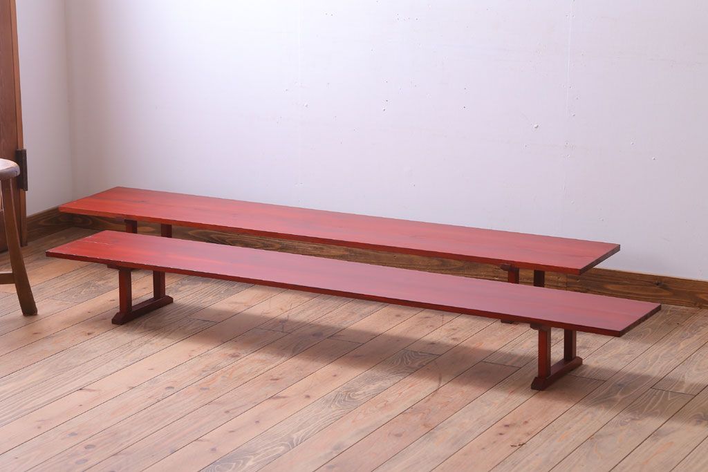 アンティーク家具 和製アンティーク 古い木の朱色裁ち板2台セット(1)