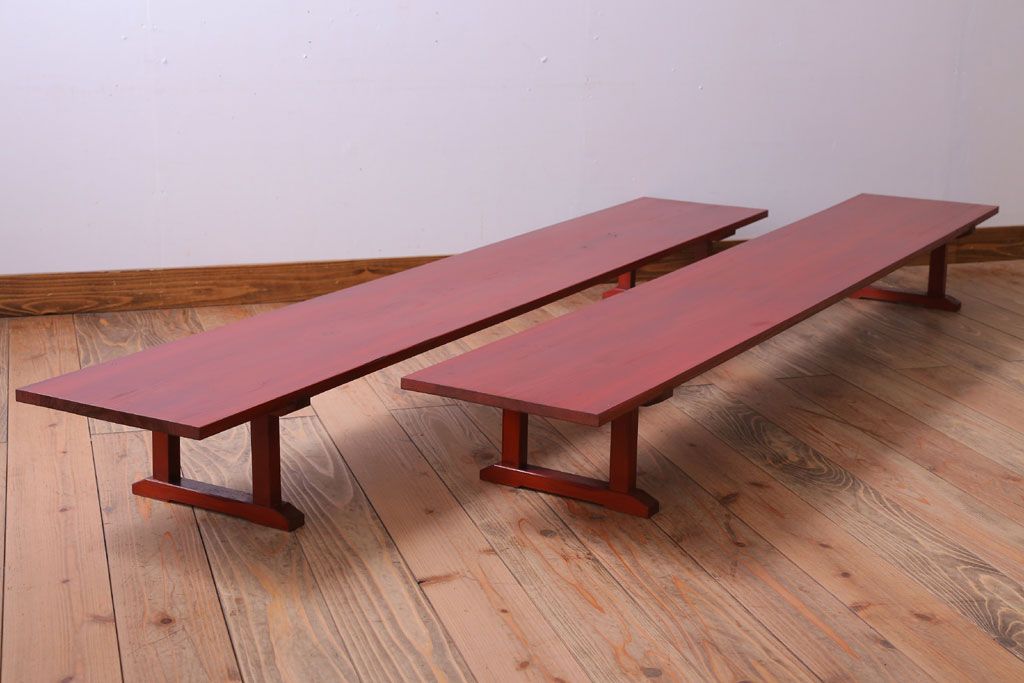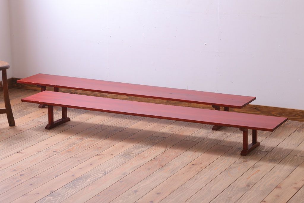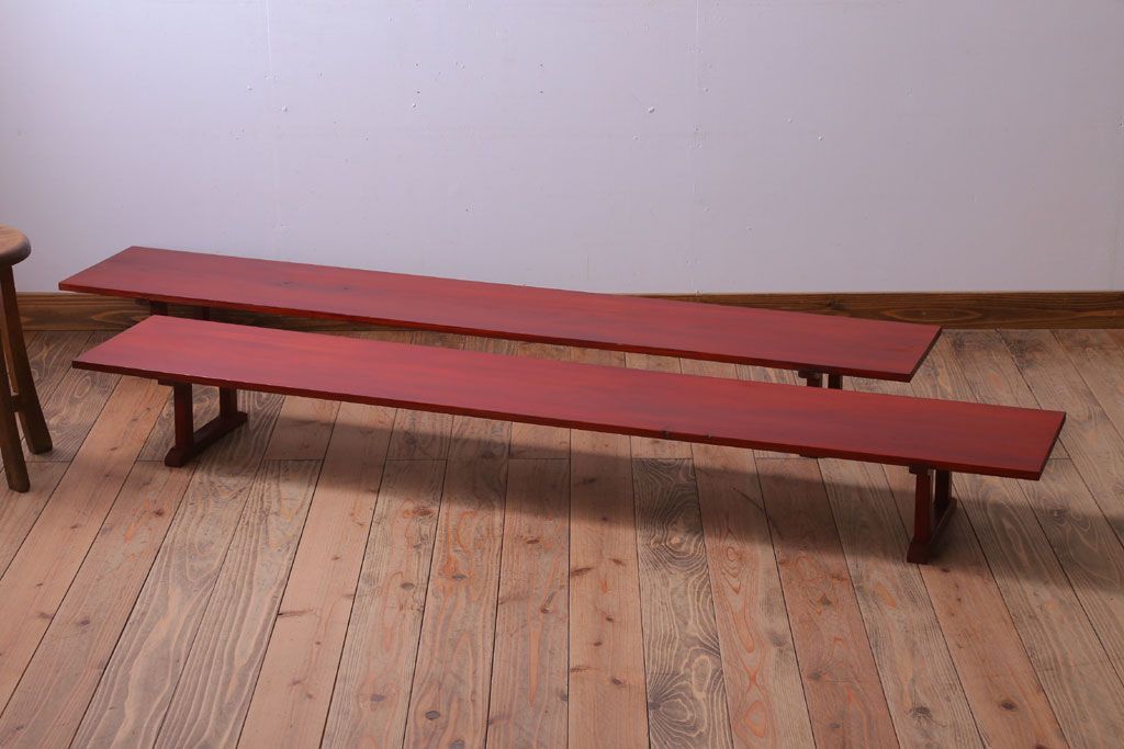 アンティーク家具 和製アンティーク 朱塗り!古い木の裁ち板2台セット(1)