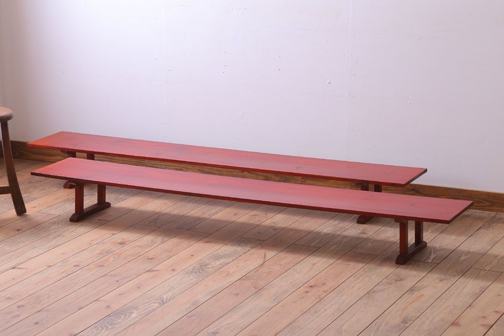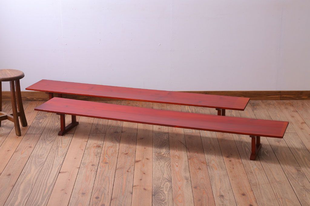 アンティーク家具 和製アンティーク 朱塗り!古い木の裁ち板2台セット(2)