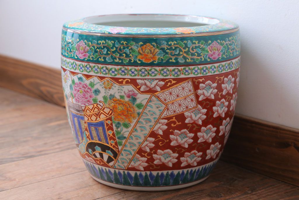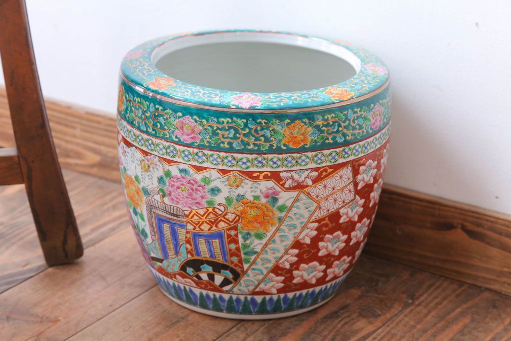 大正〜昭和初期に作られた、十錦手火鉢です。