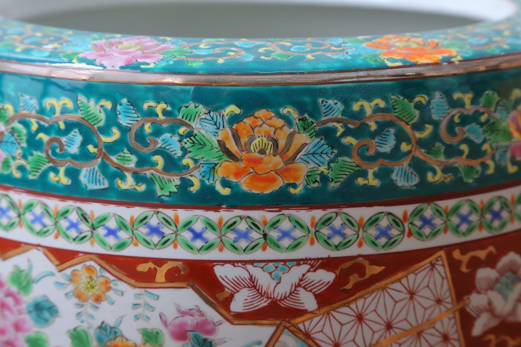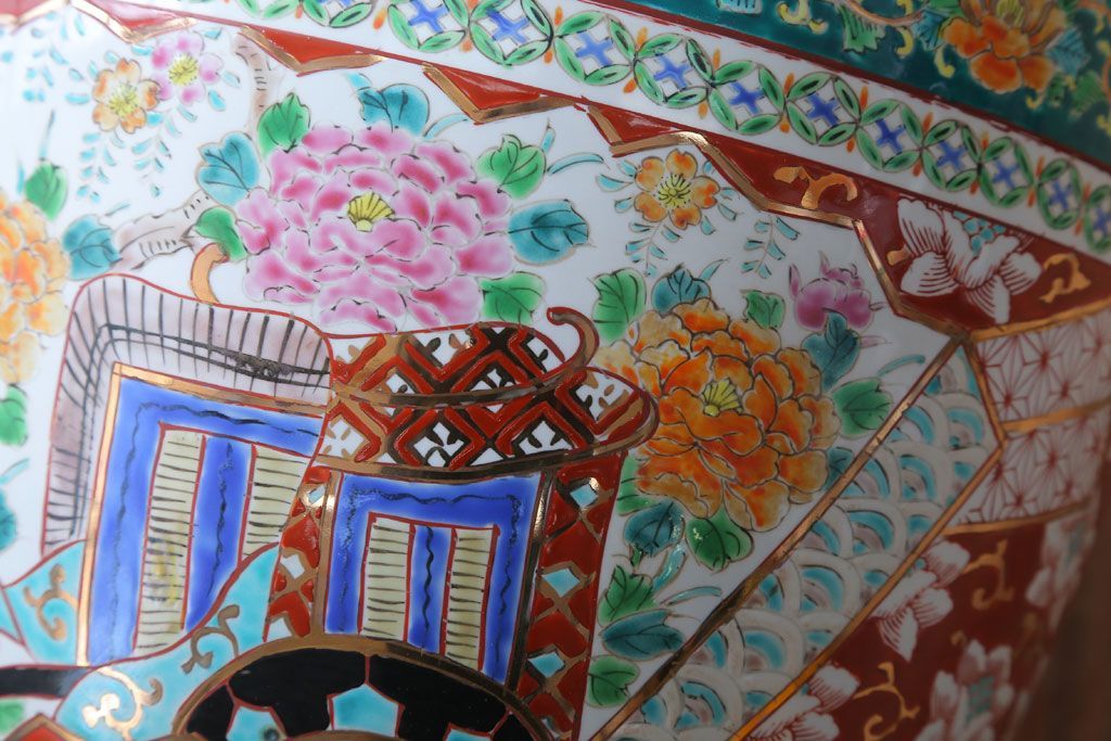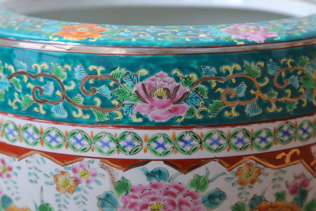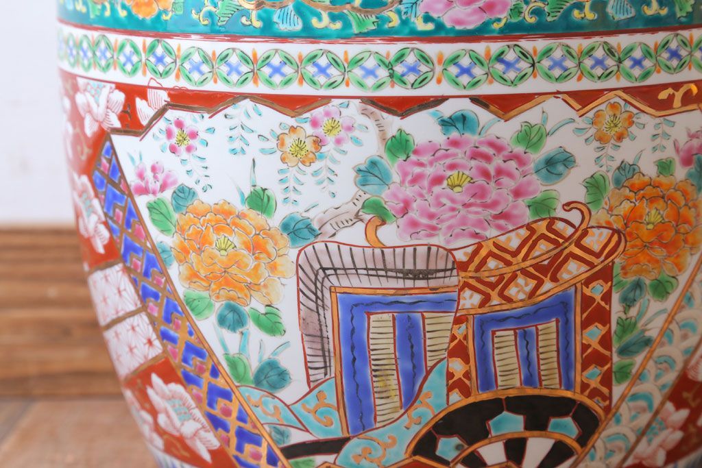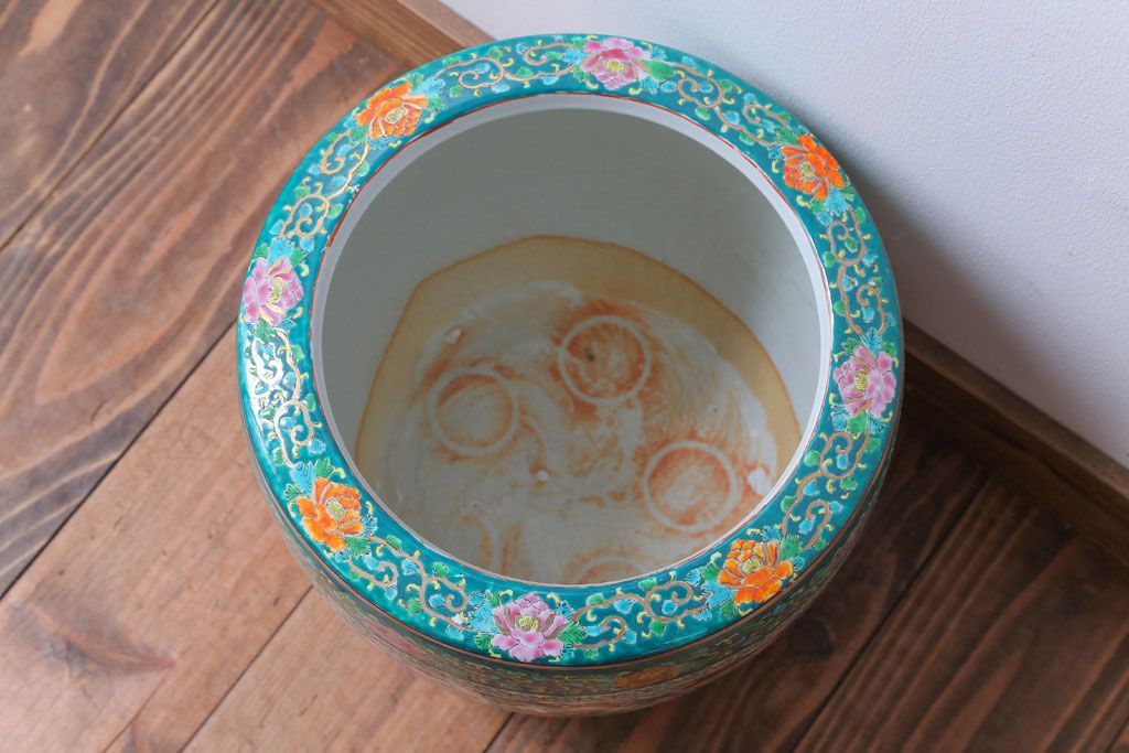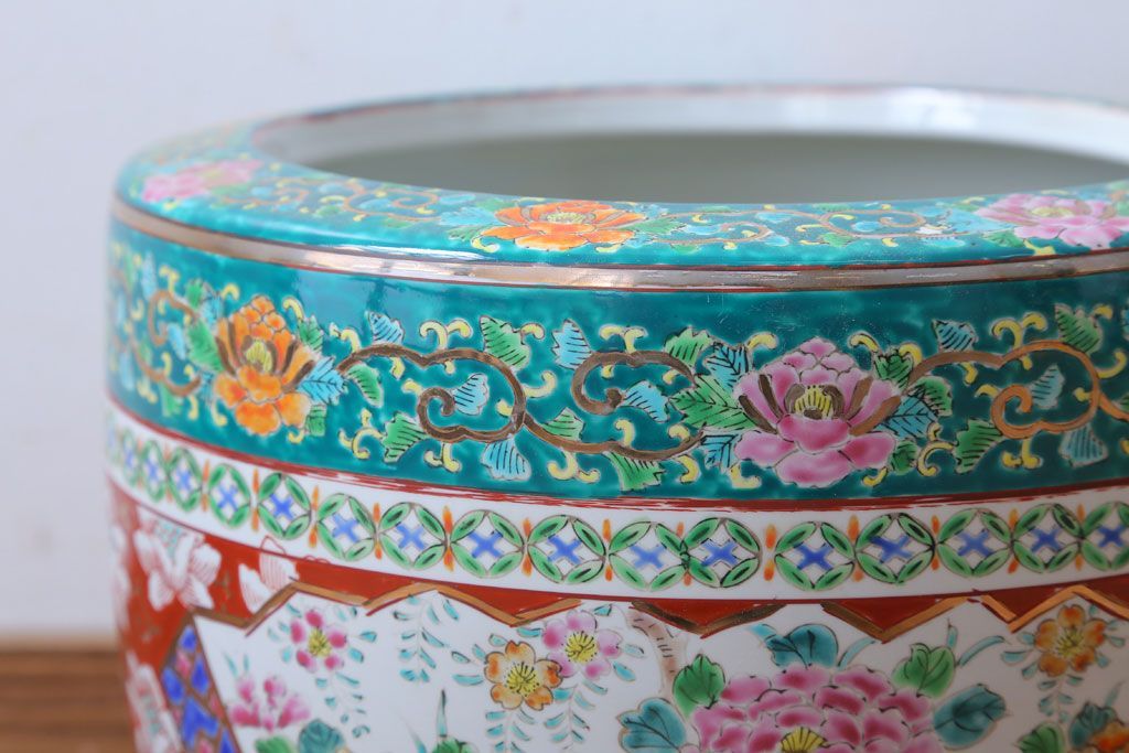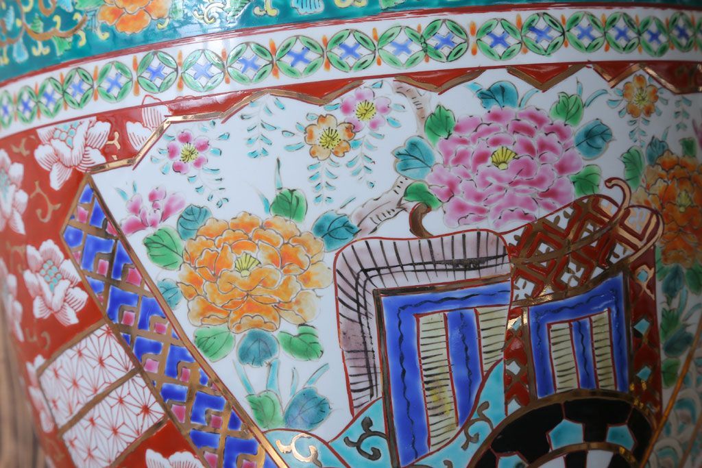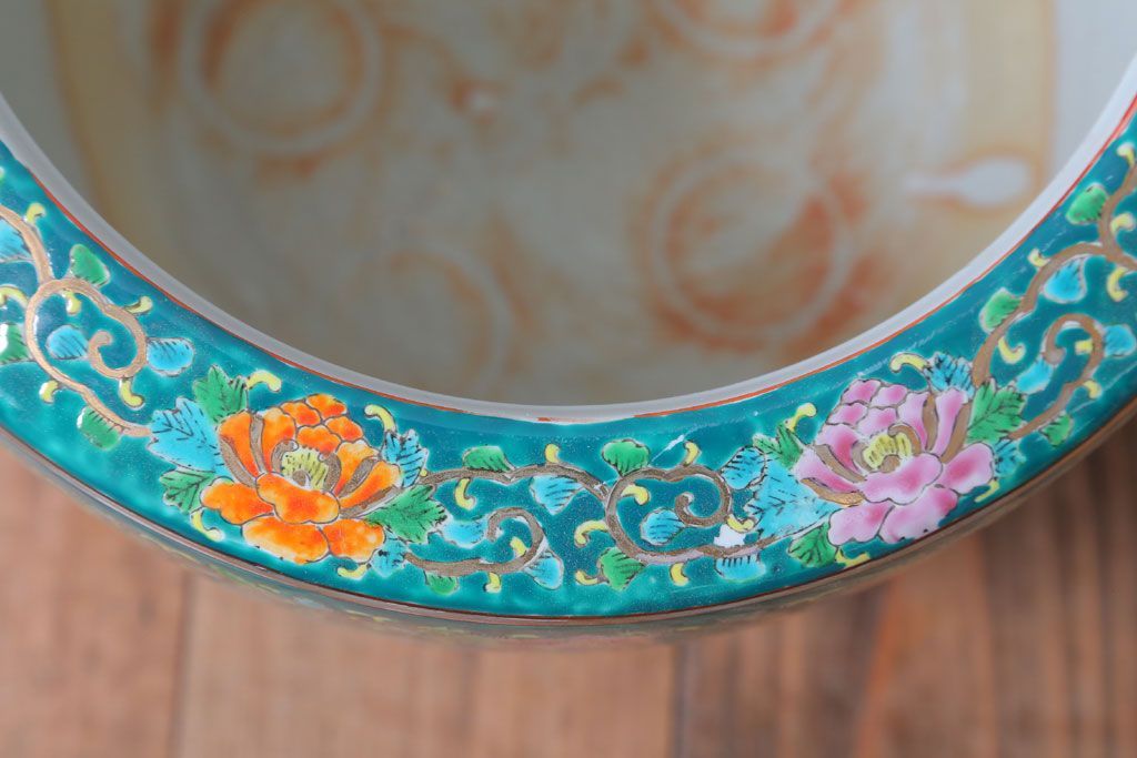 アンティーク雑貨 古民具・骨董 大正〜昭和初期 十錦手火鉢 牡丹(2)