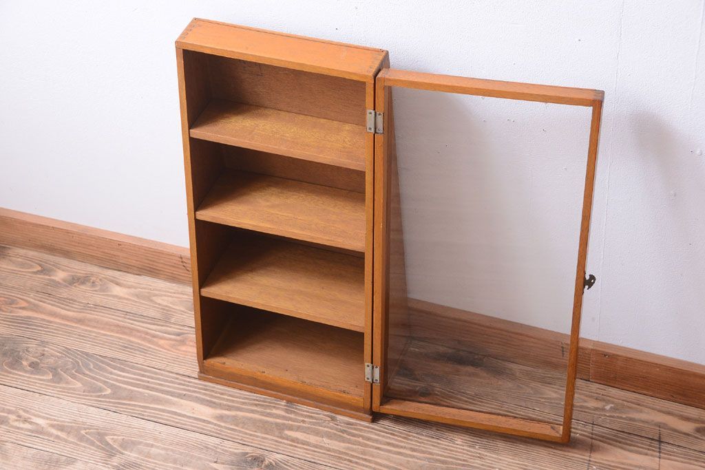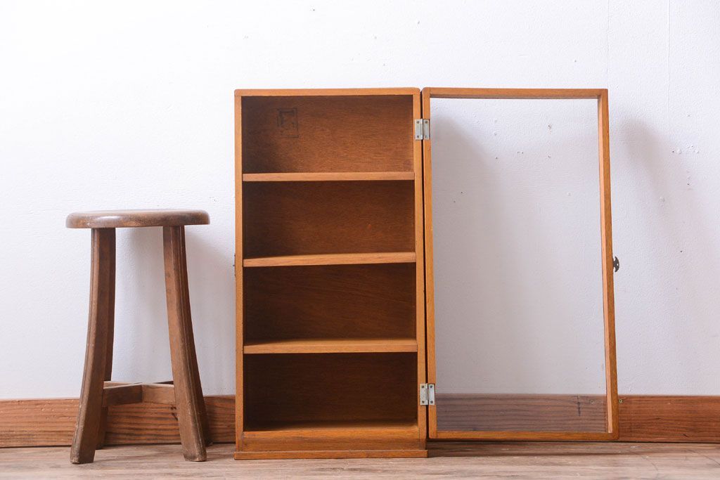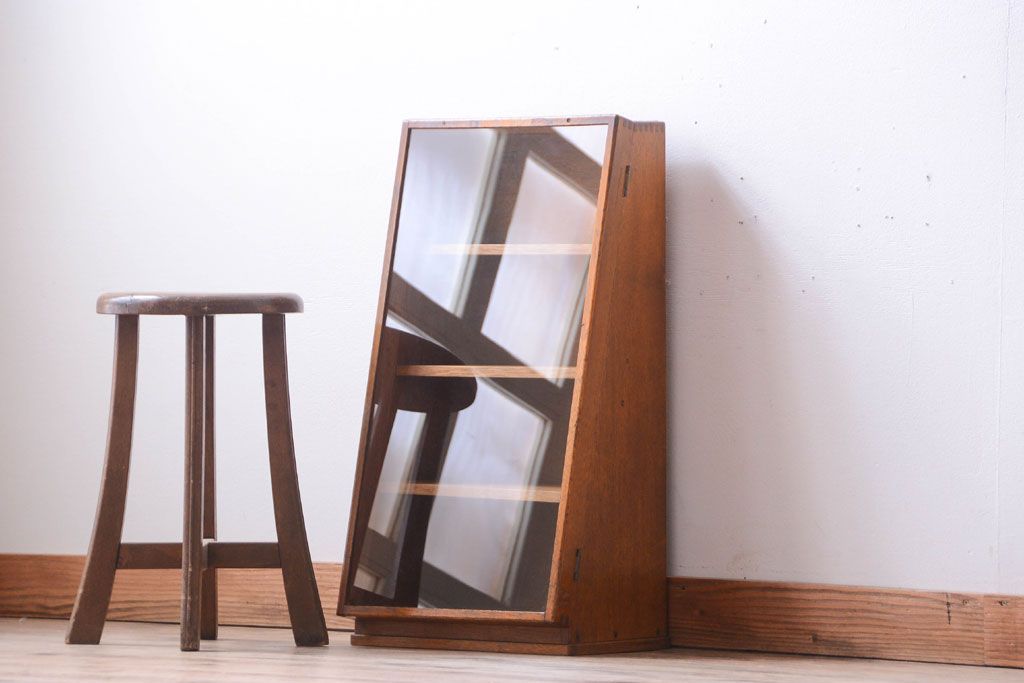 レトロ家具 和製アンティーク 古い木のレトロな台形型小振りガラスケース(2)