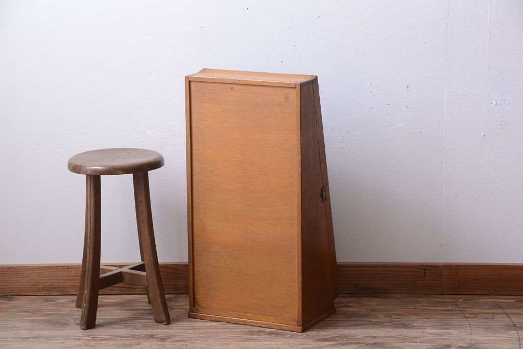 ラフジュ工房> 店舗什器 > レトロ家具 和製アンティーク 古い木のレトロな台形型小振りガラスケース(2)