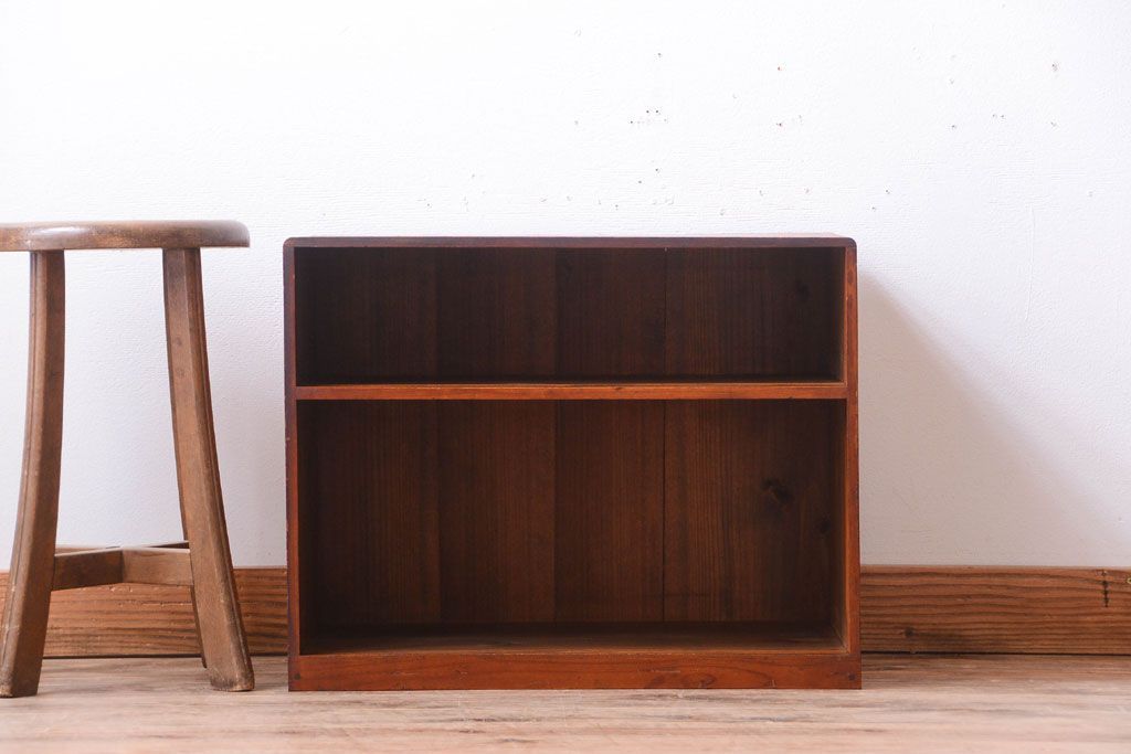 ラフジュ工房> オープンラック・シェルフ> ディスプレイラック > レトロ家具 昭和レトロ 古い木製の小さなオープンラックローボード(飾り棚)
