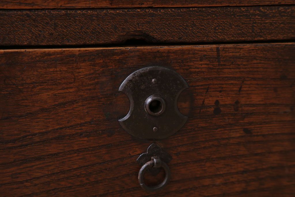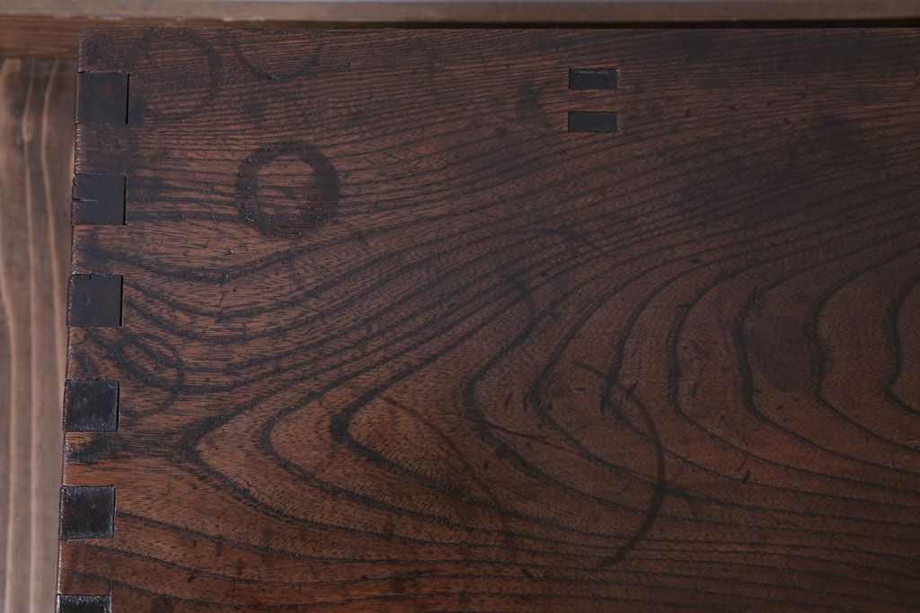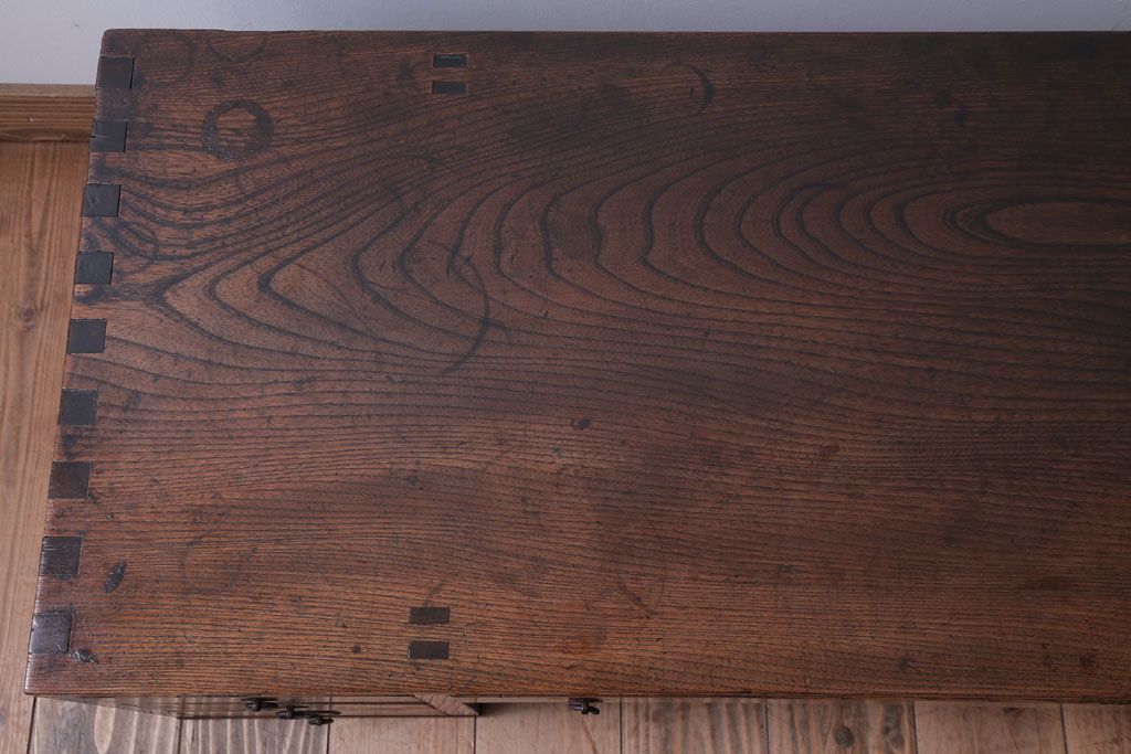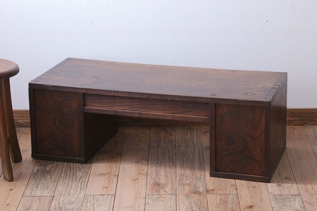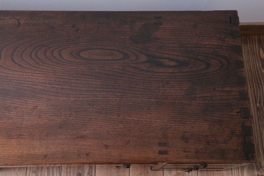 古民具・骨董 明治〜大正期!総欅材の高級アンティーク帳場机(両袖机・文机)です。