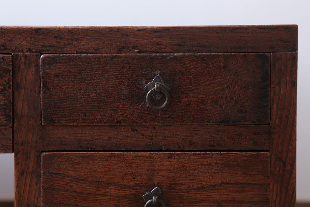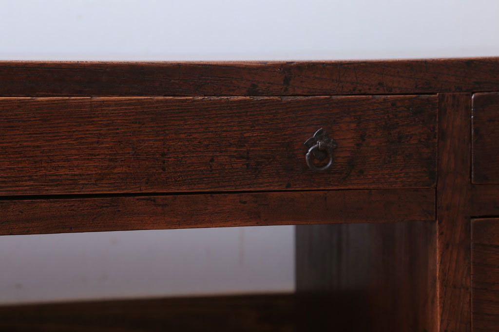 アンティーク家具 古民具・骨董 明治〜大正期!総欅材の高級アンティーク帳場机(両袖机・文机)