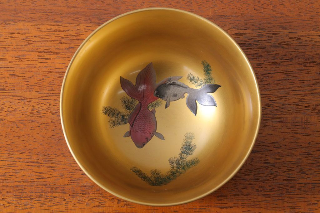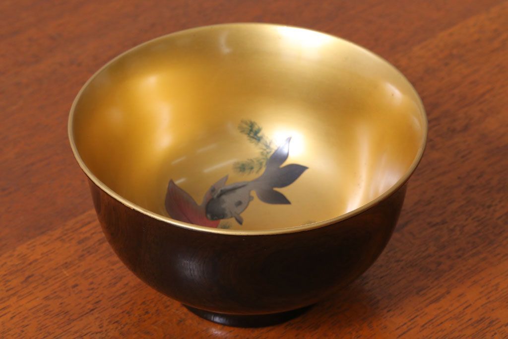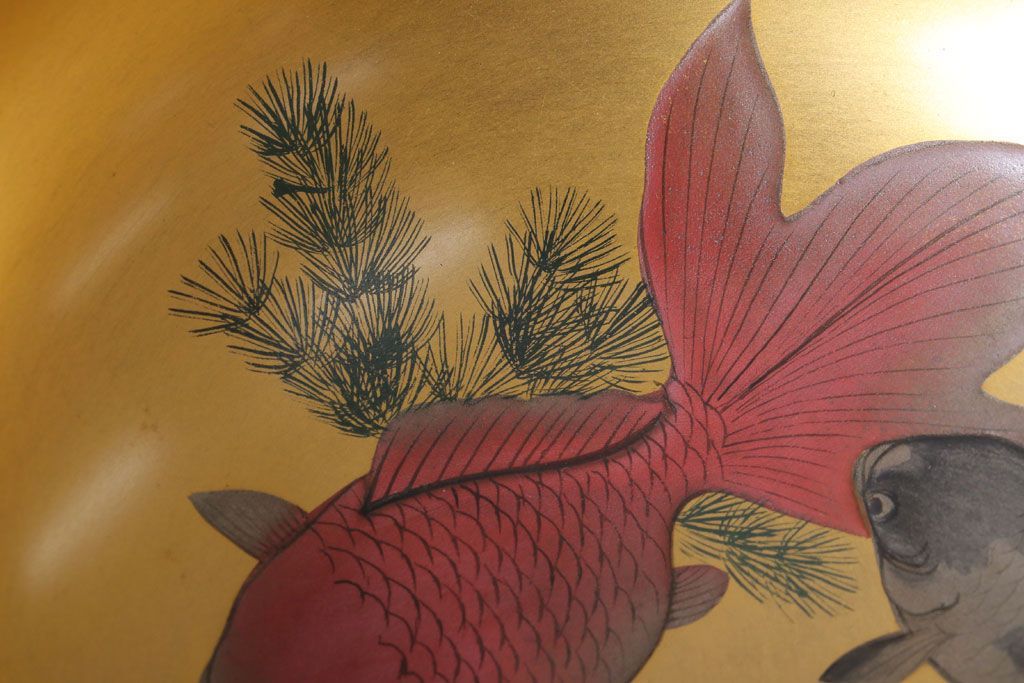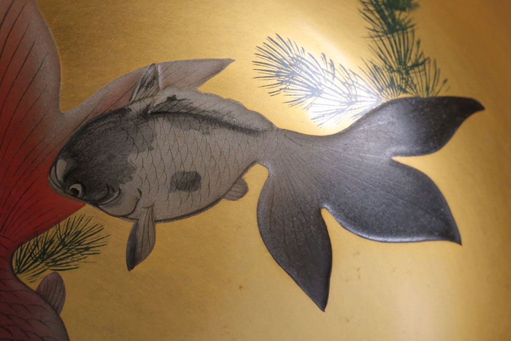 アンティーク雑貨 和製アンティーク 大正〜昭和初期 金魚の図 木製蒔絵盃洗(漆器)(2)