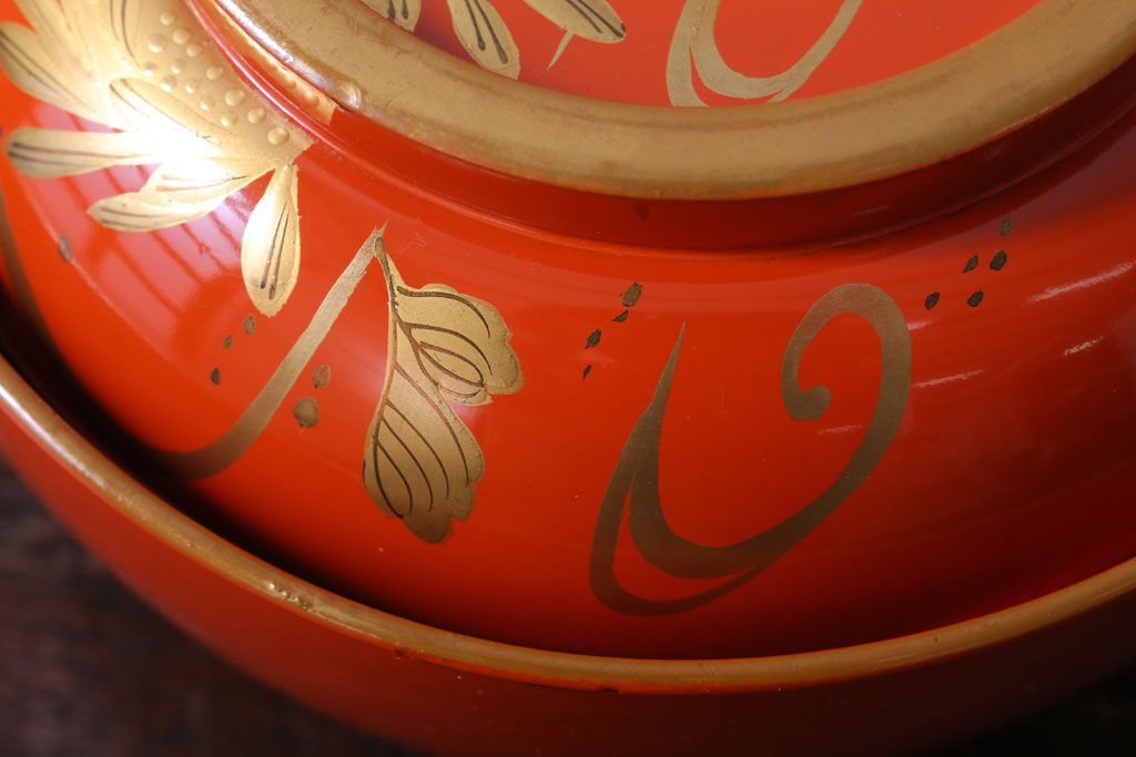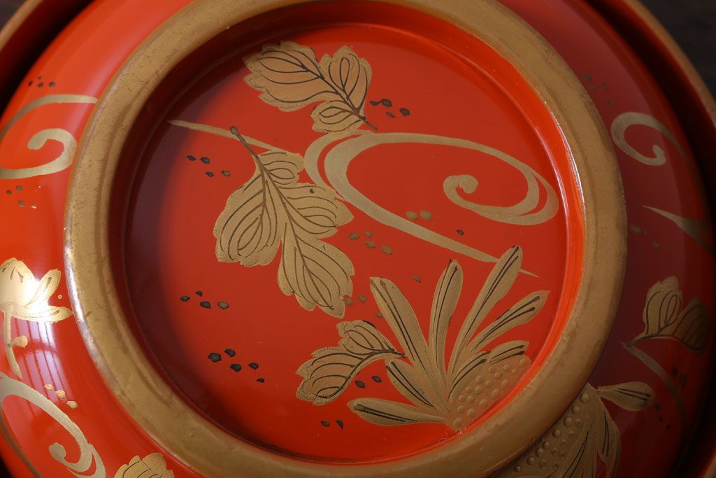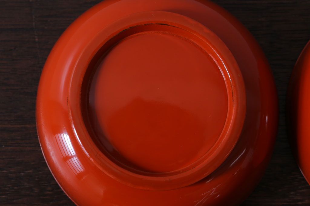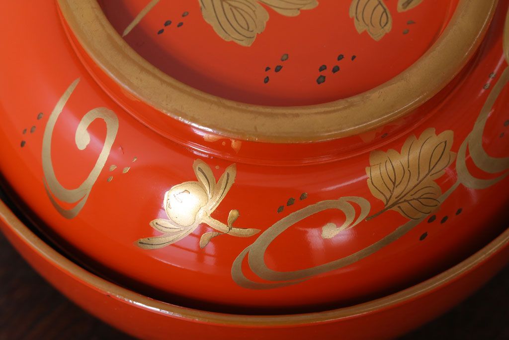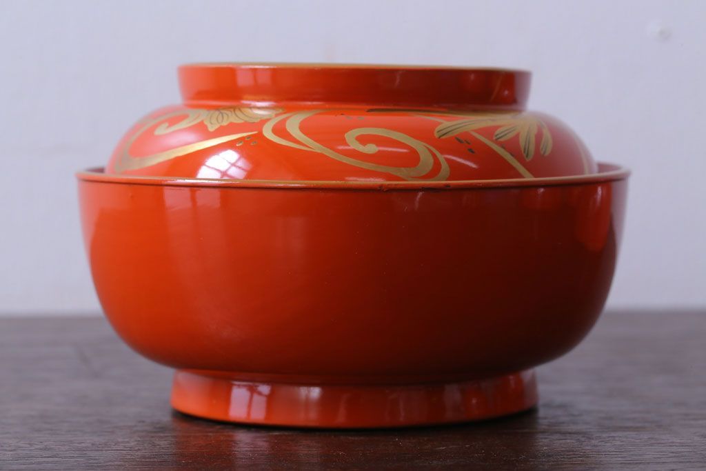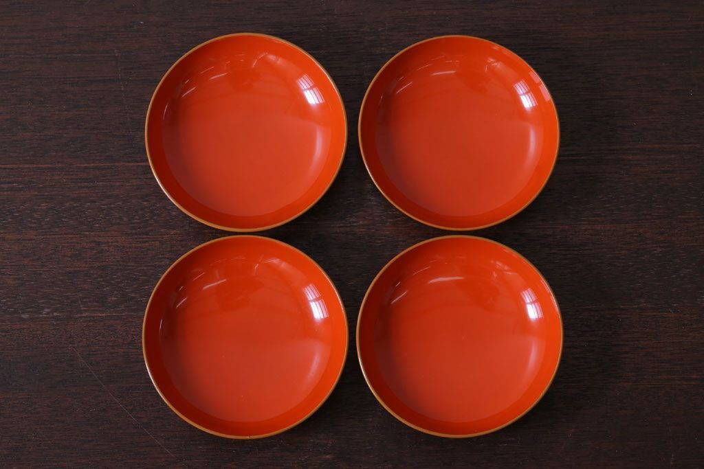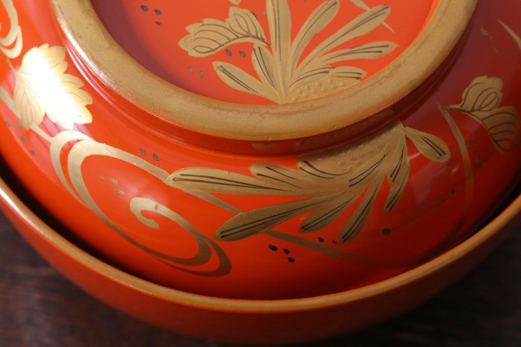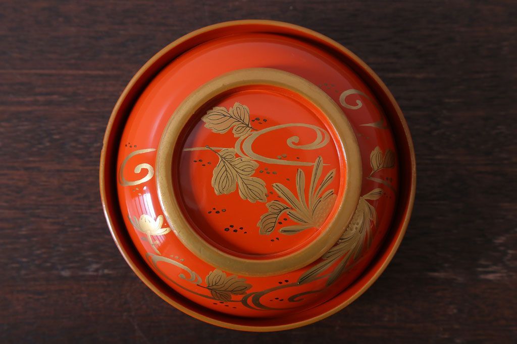 アンティーク雑貨 アンティーク 大正〜昭和初期 木製朱塗蒔絵椀4客セット(漆器)