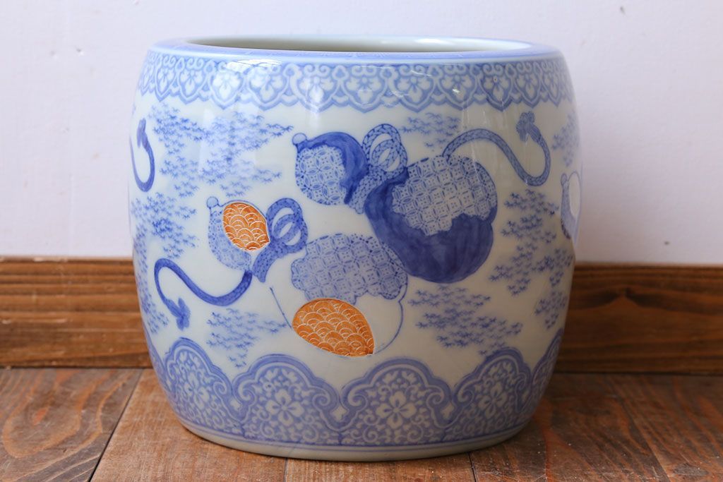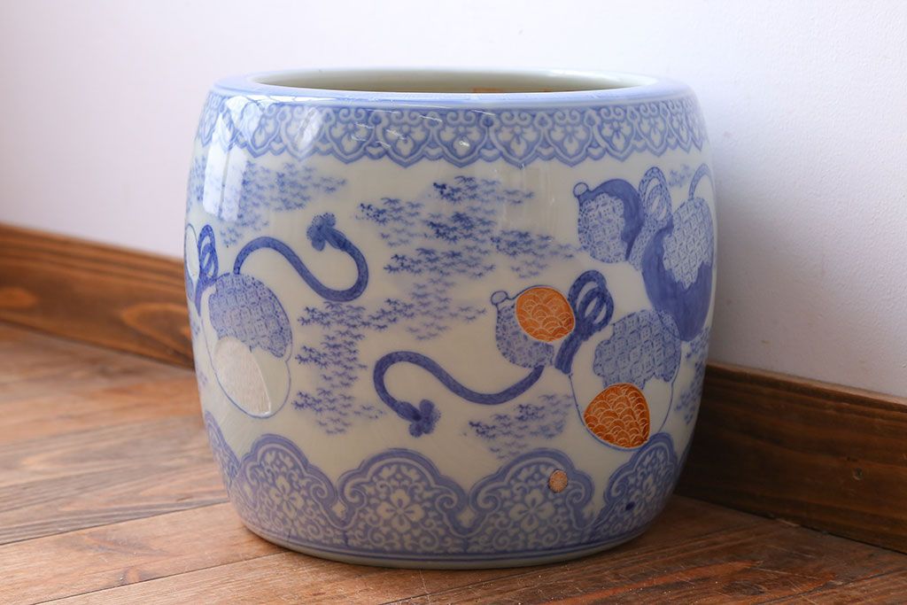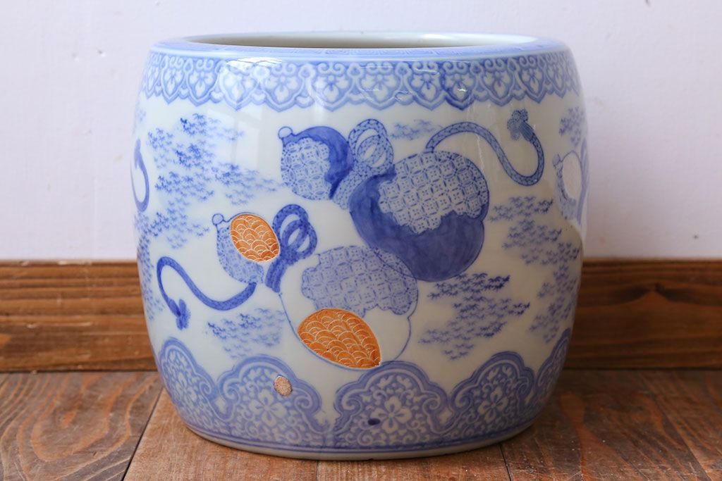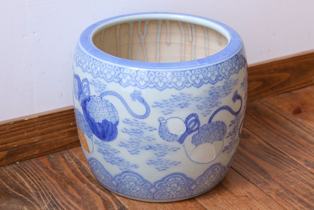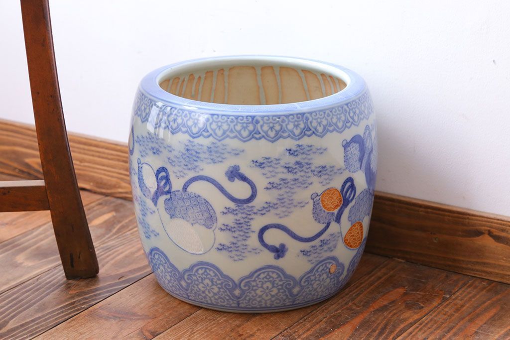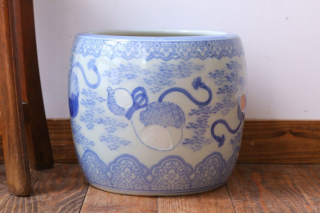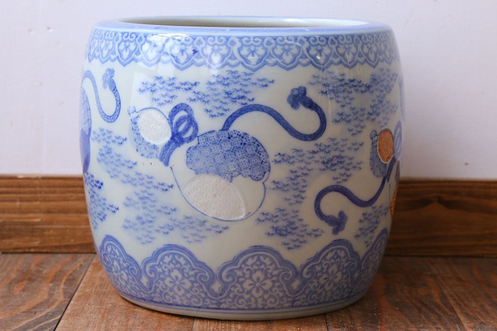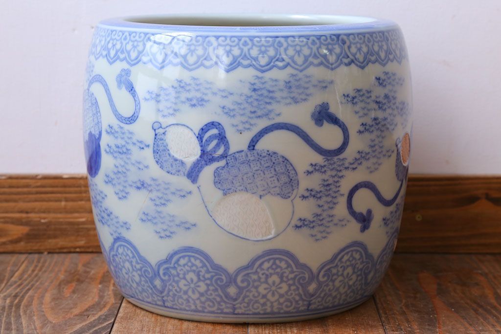 アンティーク雑貨 古民具・骨董 瓢箪の図 アンティーク染付瀬戸火鉢