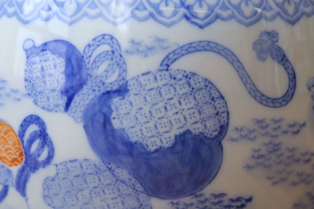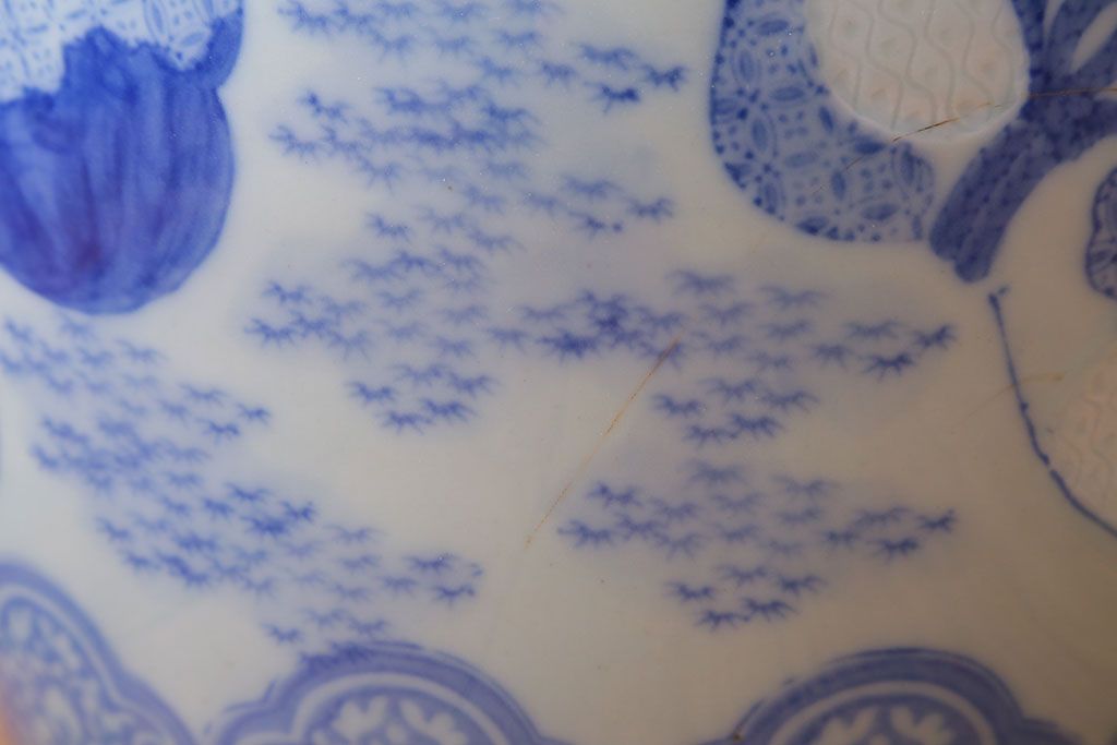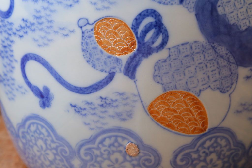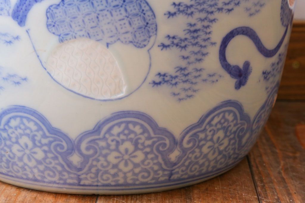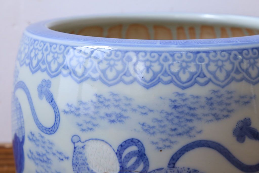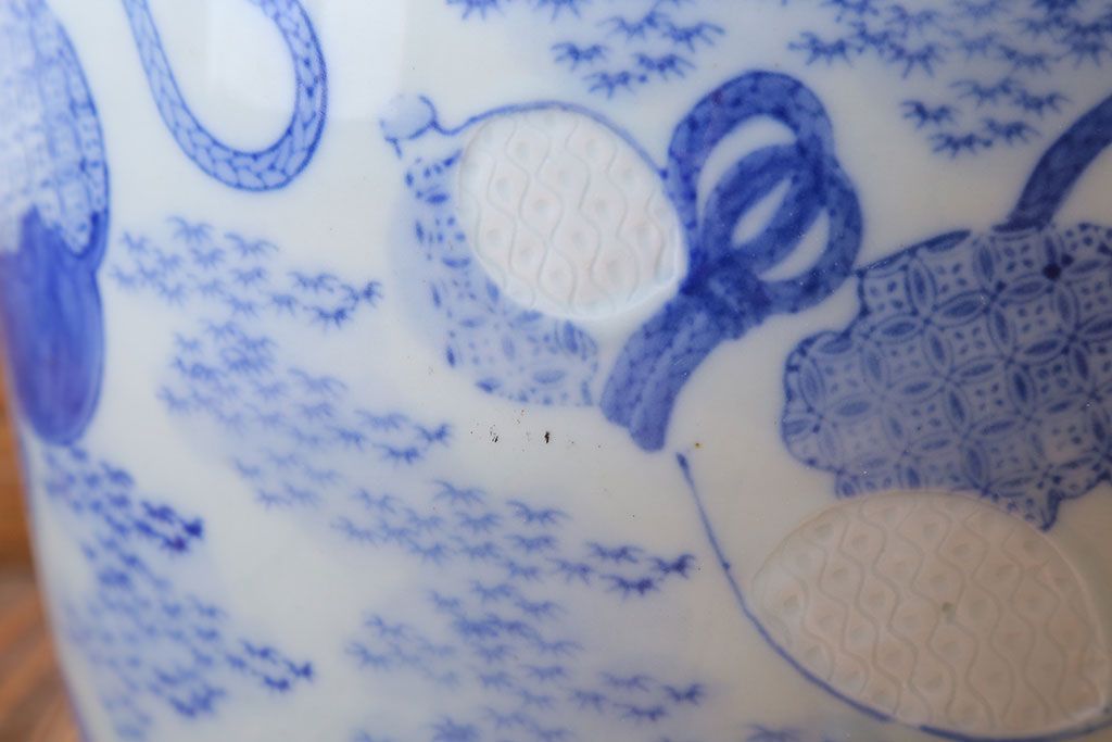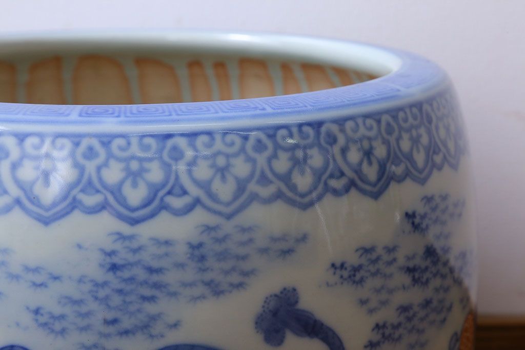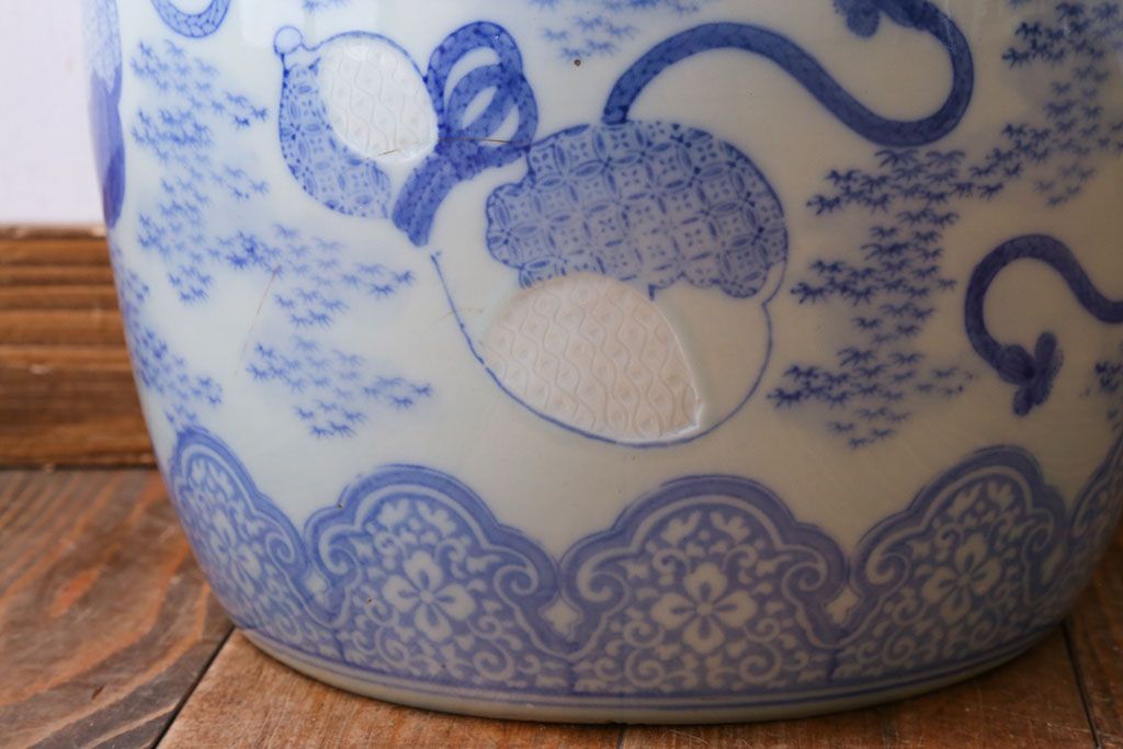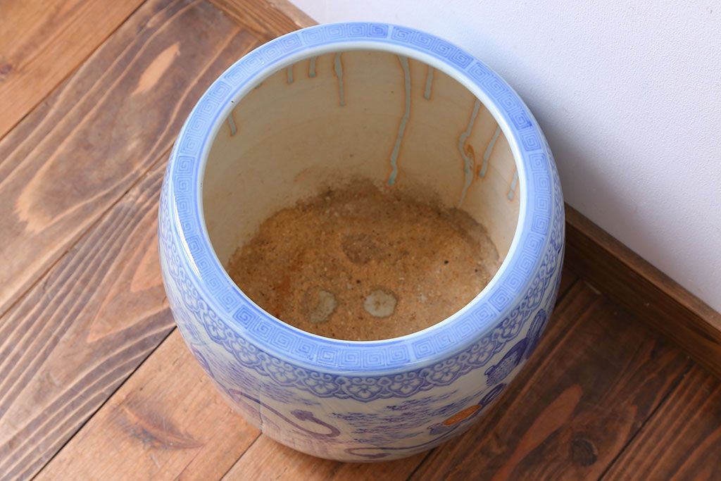 アンティーク雑貨 古民具・骨董 瓢箪の図 アンティーク染付瀬戸火鉢