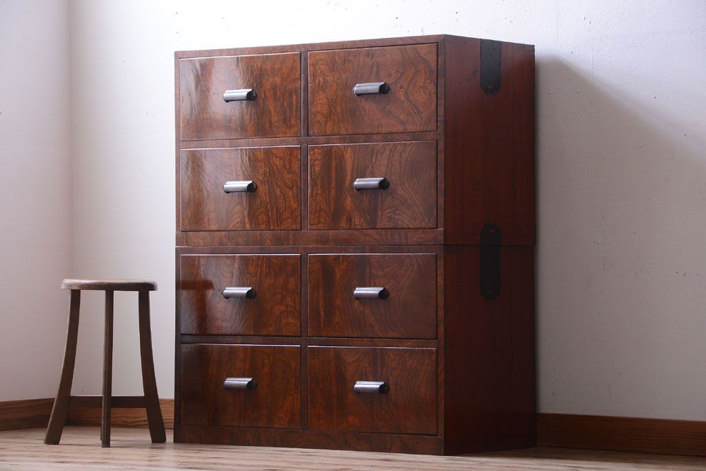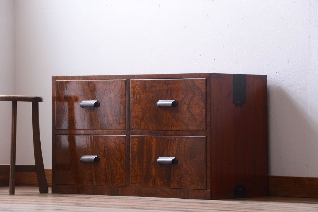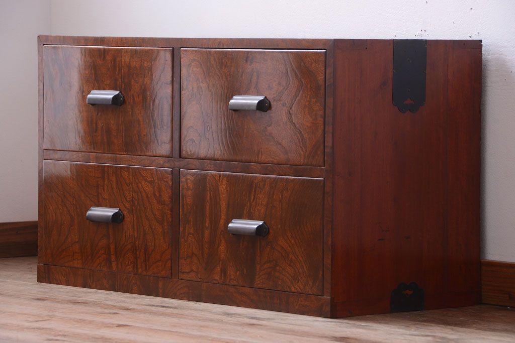 ラフジュ工房> 和箪笥 > アンティーク家具 和製アンティーク 前面欅玉杢材!半箪笥(衣装箪笥ローボード)(1)