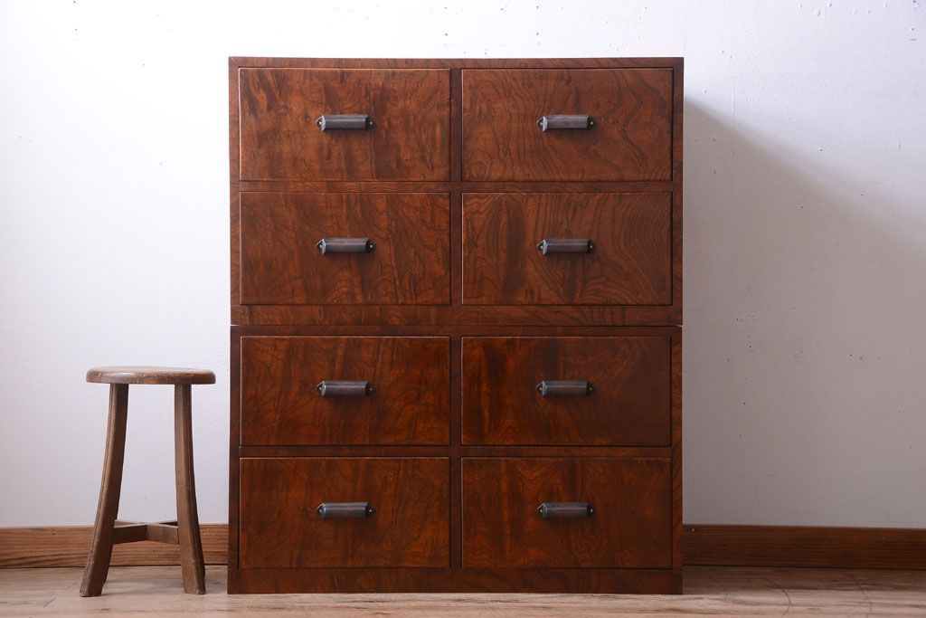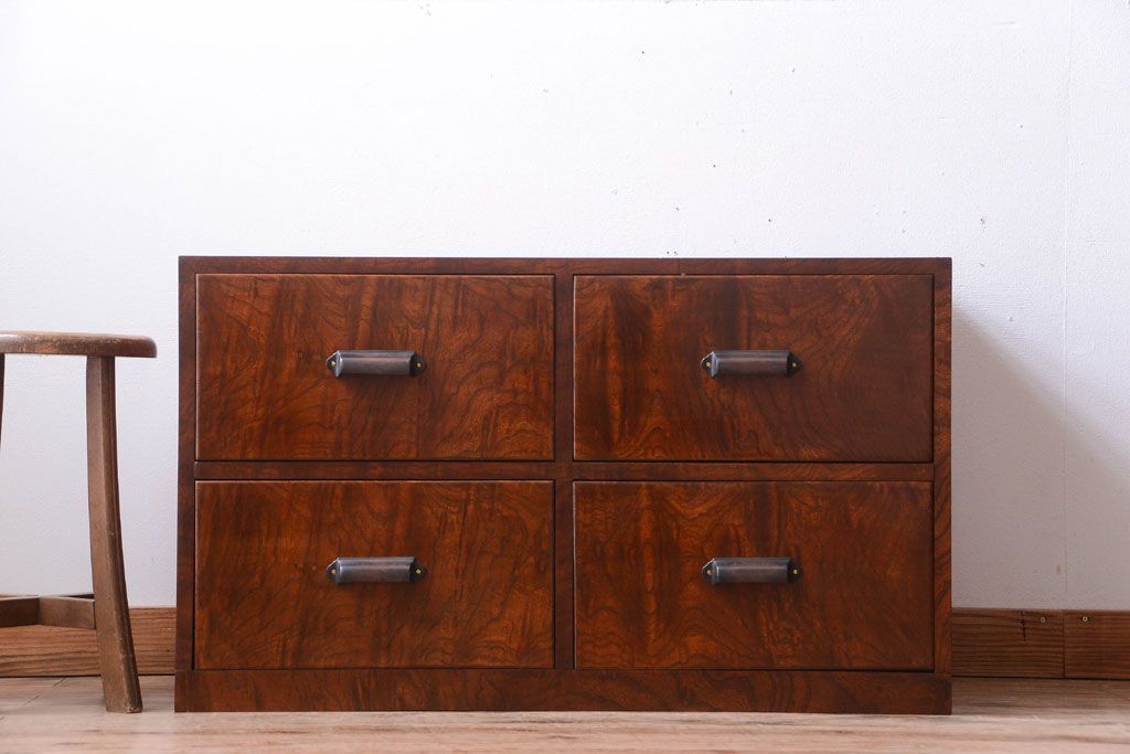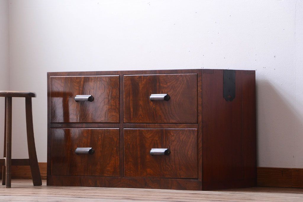 ラフジュ工房> 和箪笥 > アンティーク家具 和製アンティーク 前面欅玉杢材!半箪笥(衣装箪笥ローボード)(2)