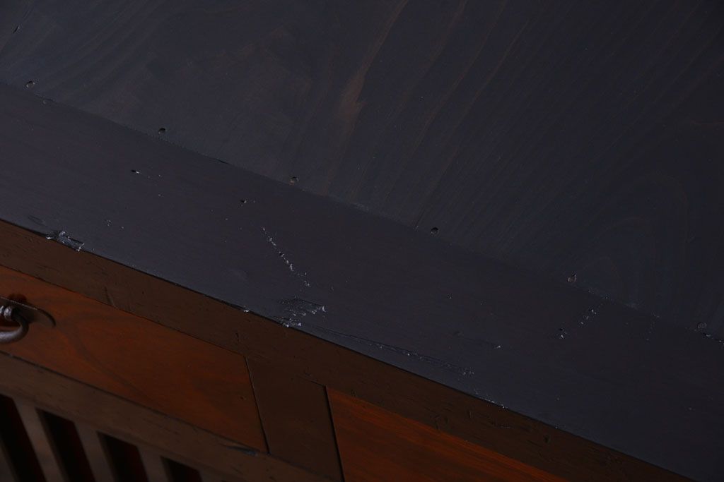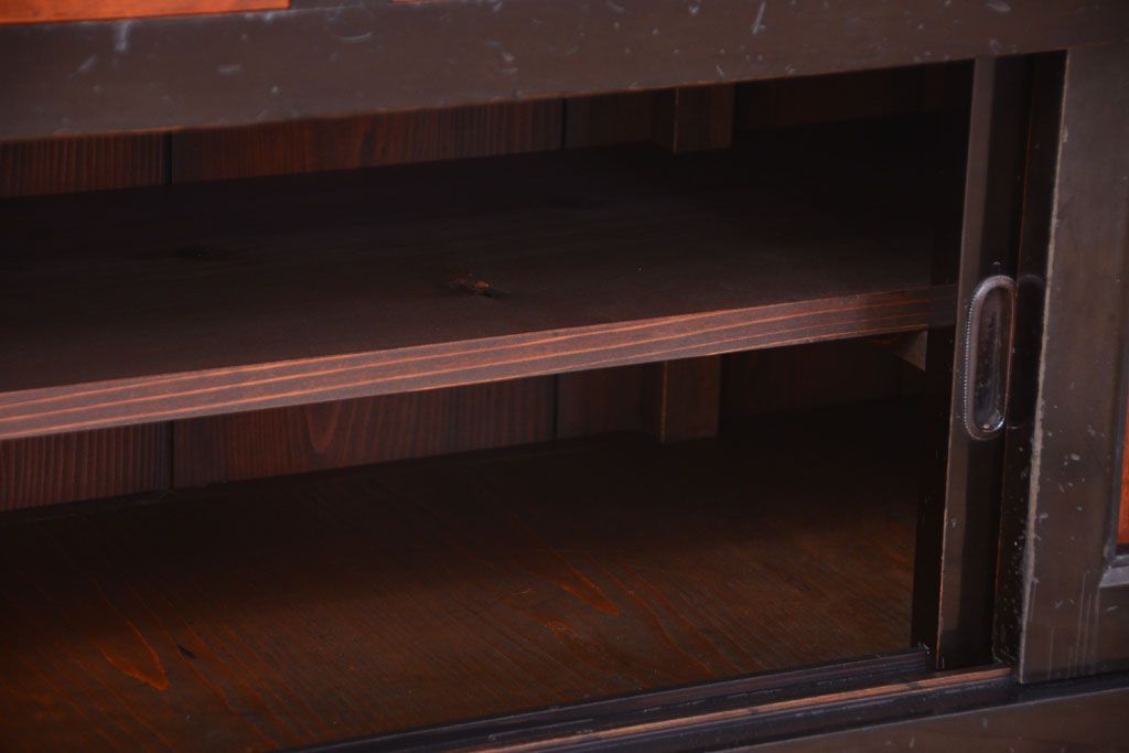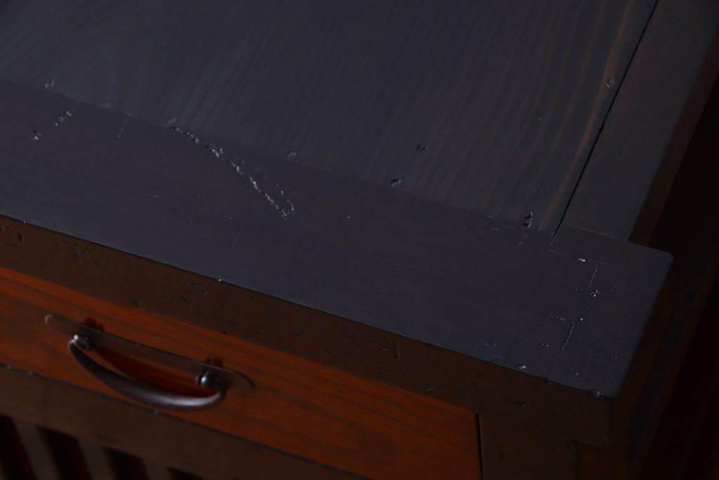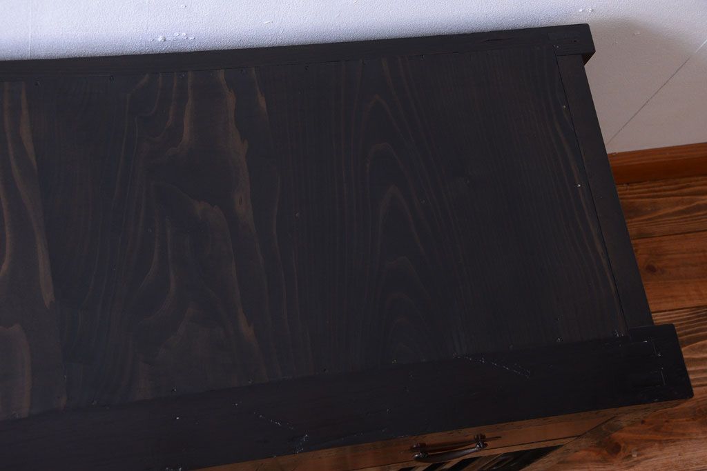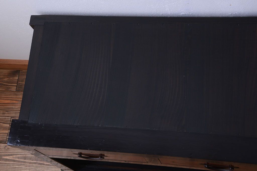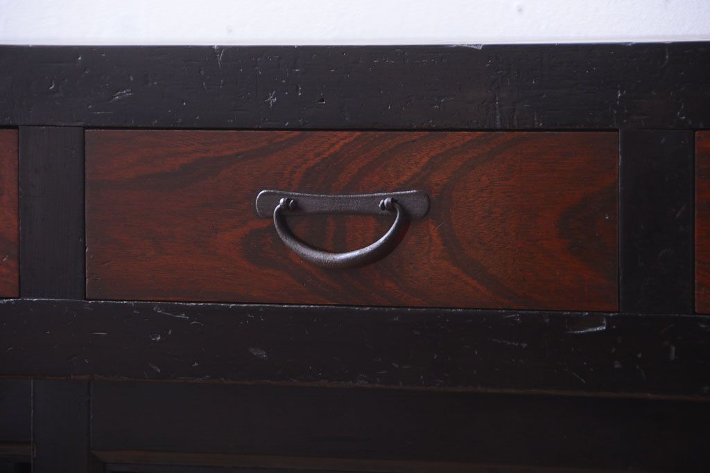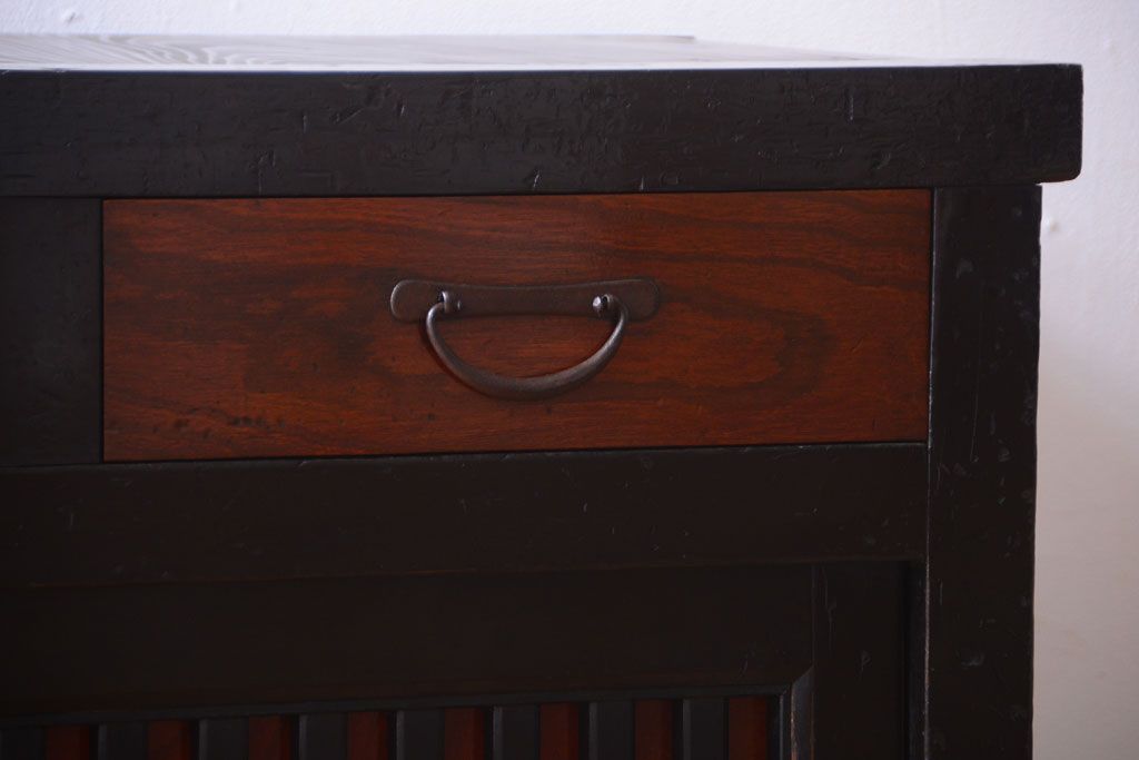 キャビネット・戸棚> テレビ台・ローボード > アンティーク家具 古民具・骨董 明治期 框が太く重厚なアンティーク引き出し付き時代箪笥ローボード(水屋箪笥、テレビ台、キャビネット、収納棚)