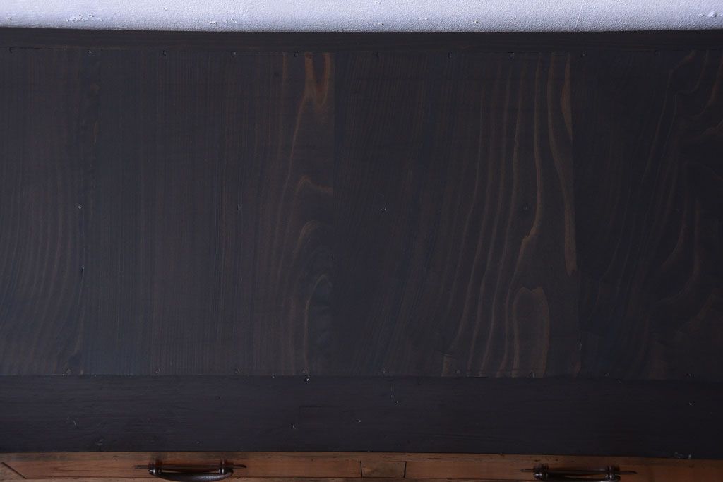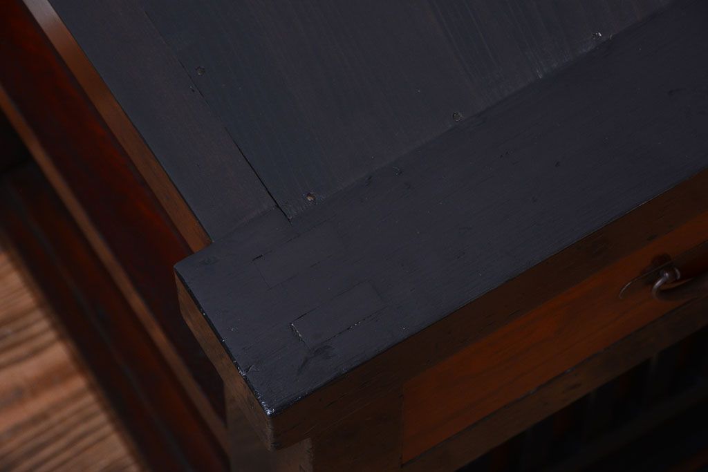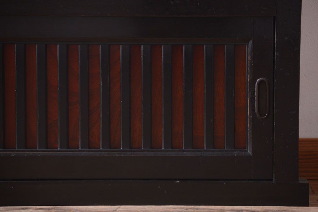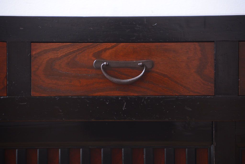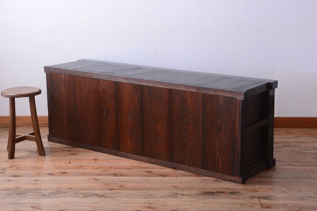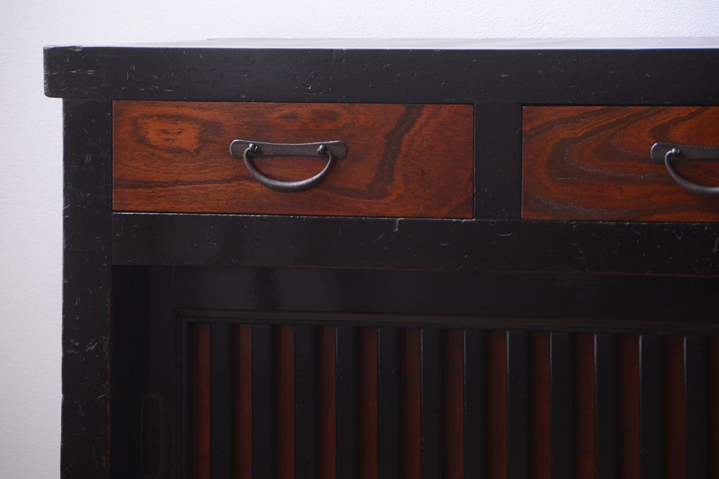 骨董・美術品 > アンティーク家具 古民具・骨董 明治期 框が太く重厚なアンティーク引き出し付き時代箪笥ローボード(水屋箪笥、テレビ台、キャビネット、収納棚)